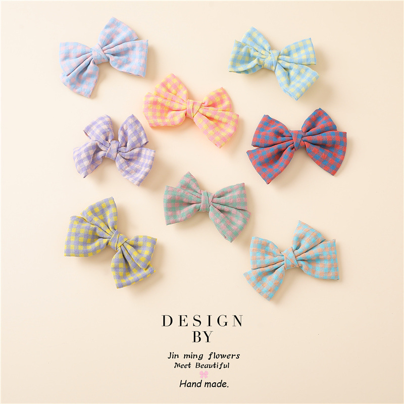 격자 무늬 활 diy 액세서리 봉제 인형 반제품 패브릭 액세서리 의류 액세서리 컬러 격자 더블 블록 매듭