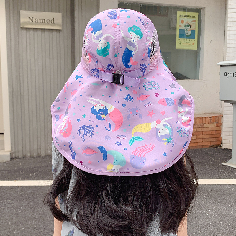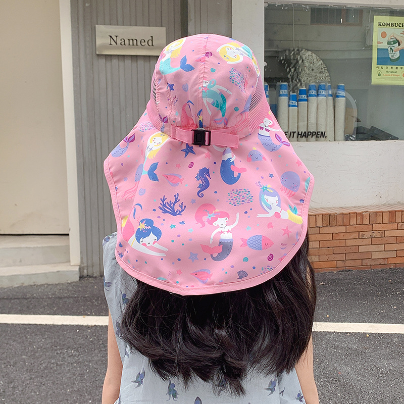 어린이 어부 모자 소년의 태양 모자 자외선 차단제 모자 소녀 UV 목도리 모자 아기 목 태양 모자