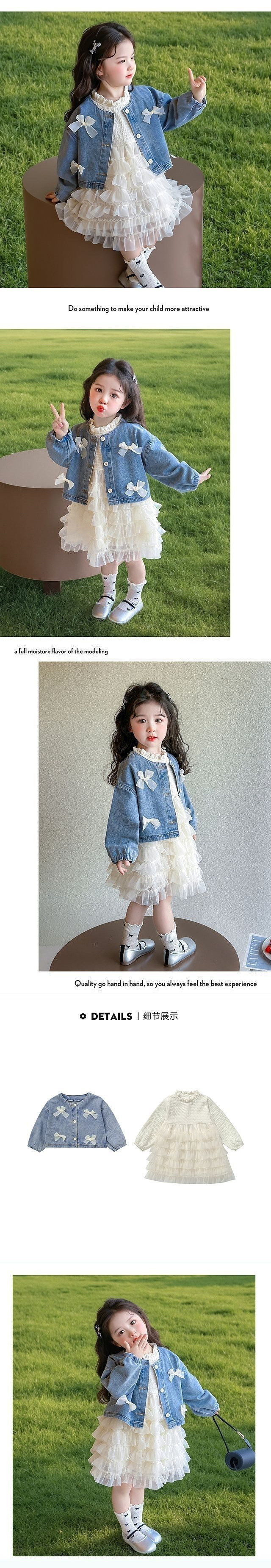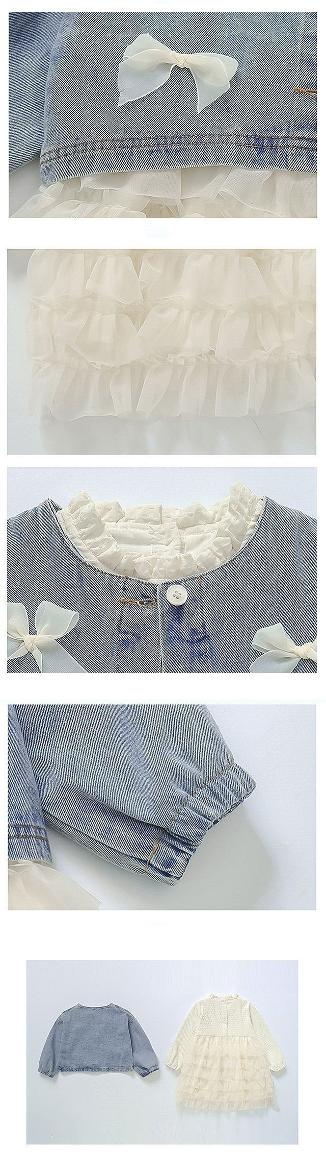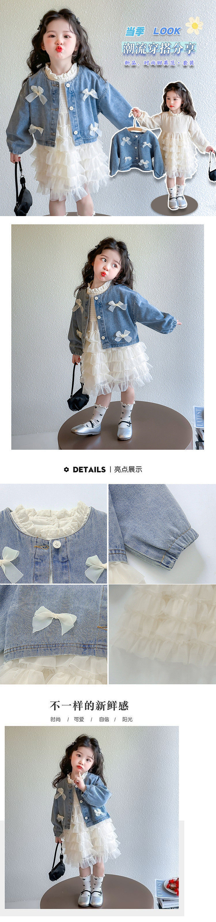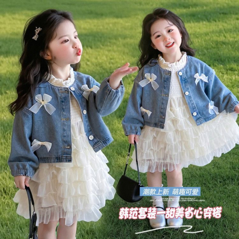 소녀 세트 원피스 봄과 가을 2025 봄 새로운 어린이 카디건 데님 코트 스타일 같은 아기 투피스 세트