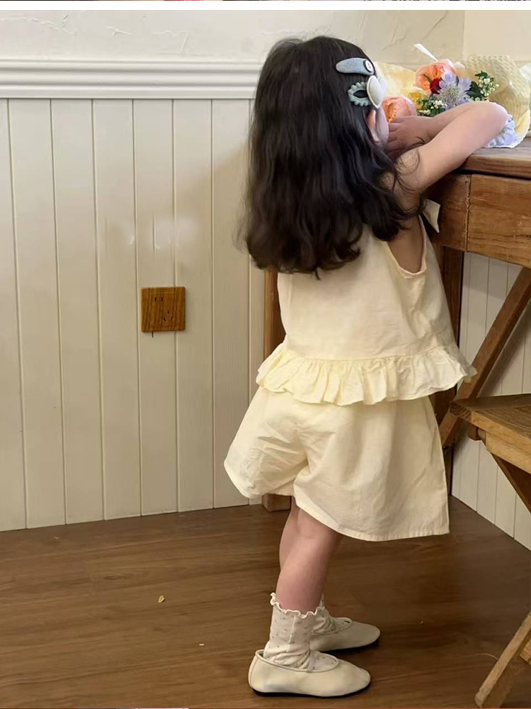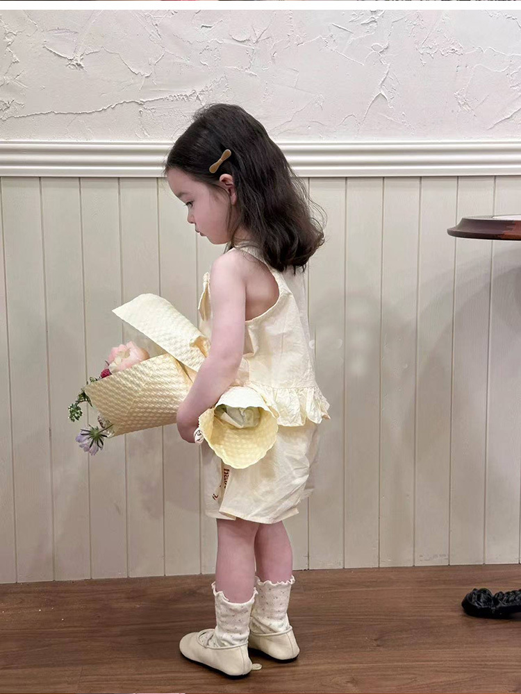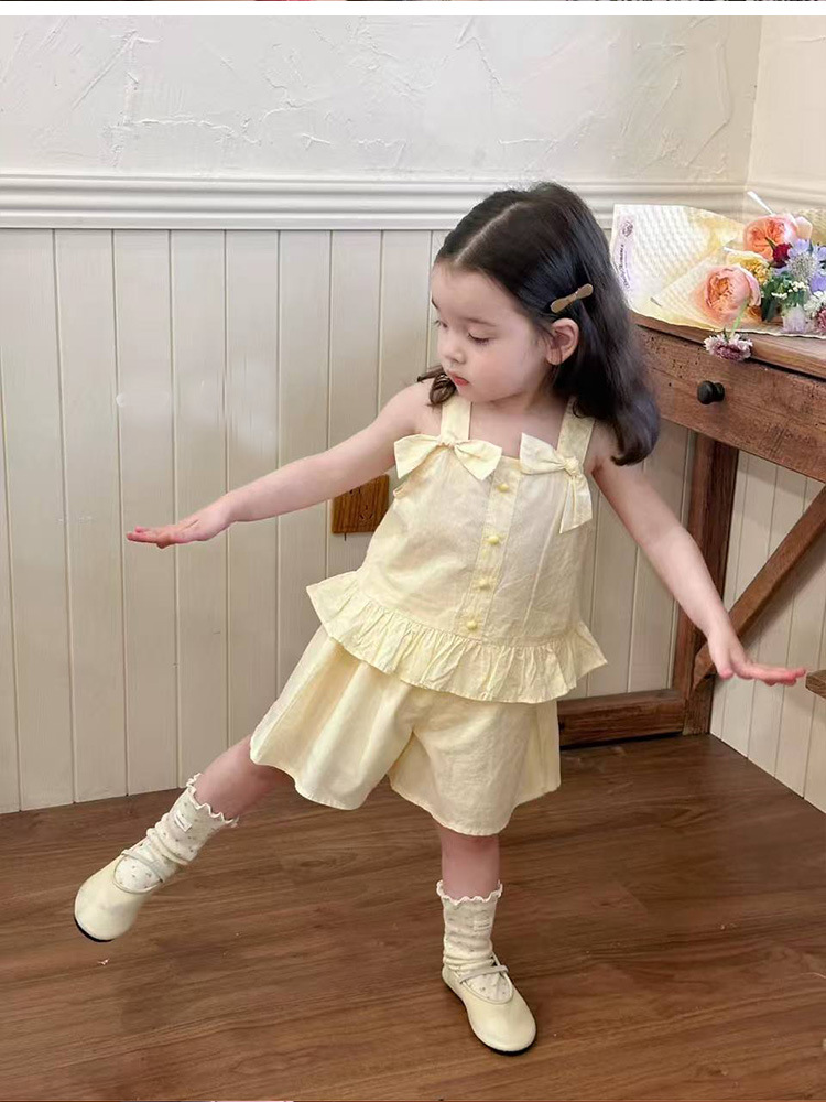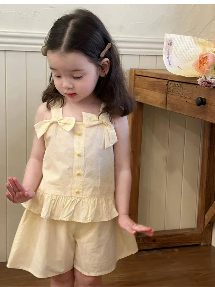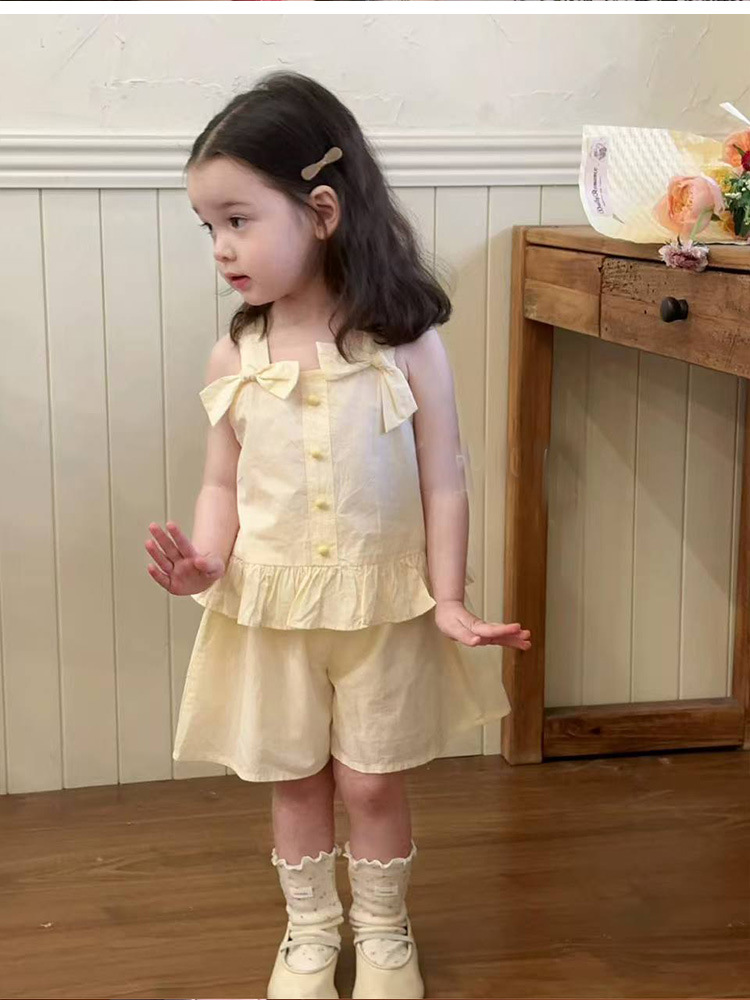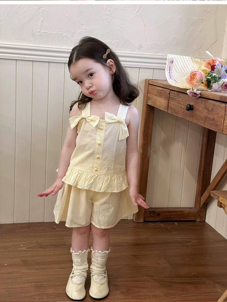 XT251367 여자 투피스 세트 2025 여름 새 한국 스타일 어린이 나비 카미솔