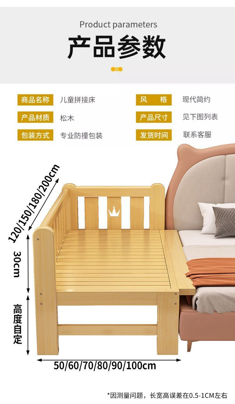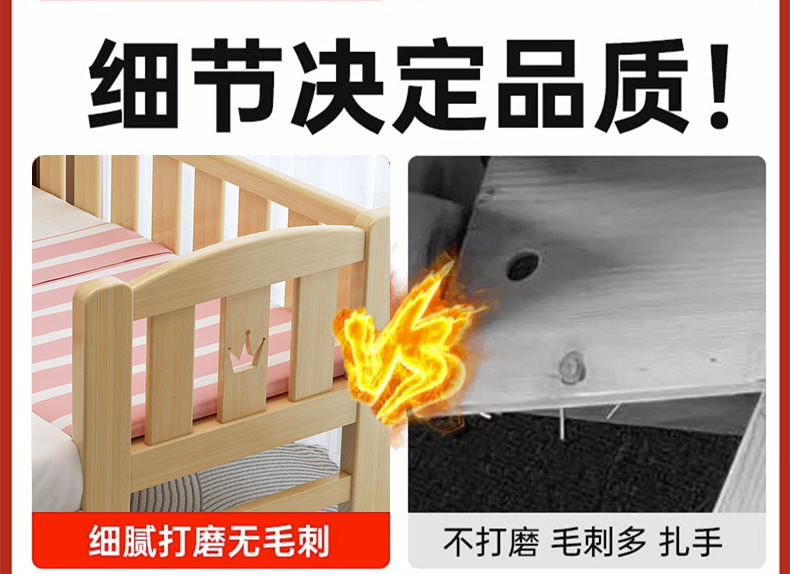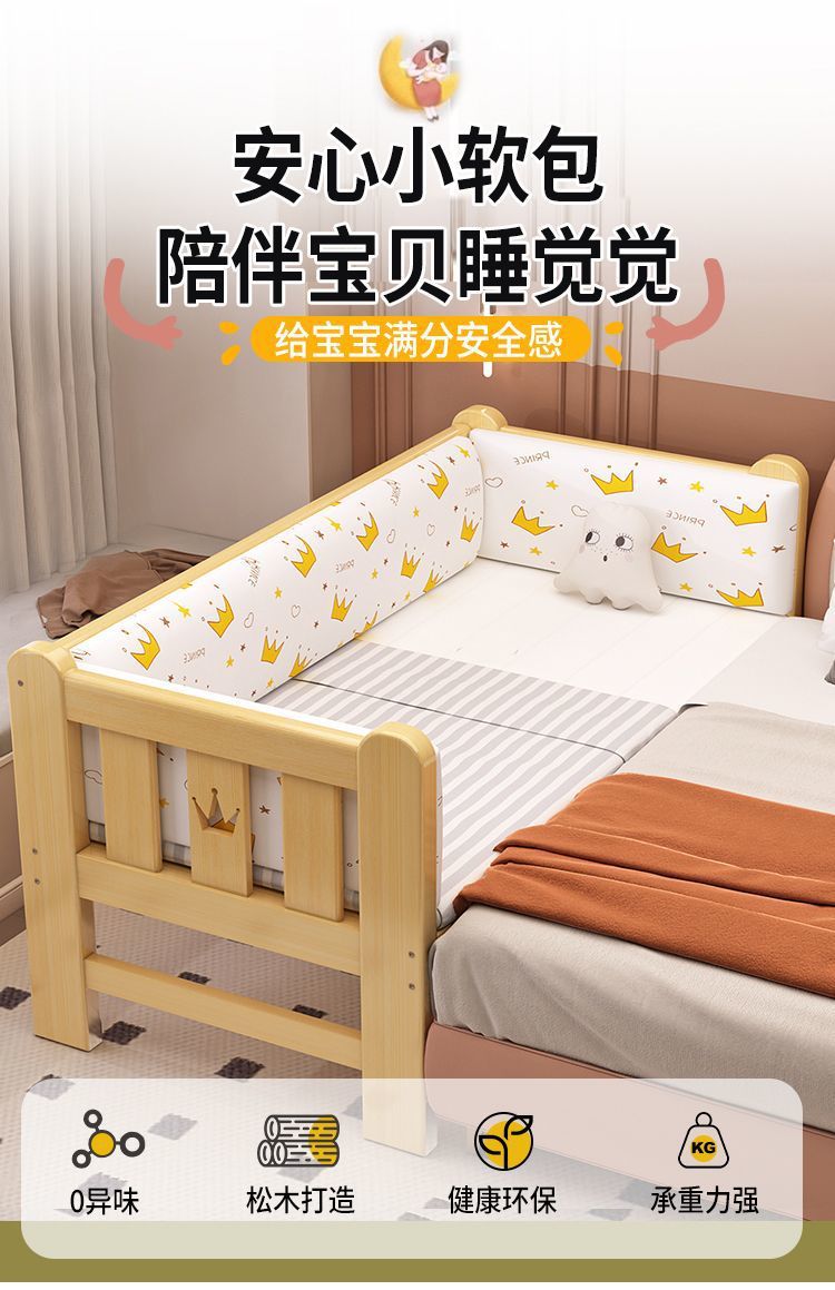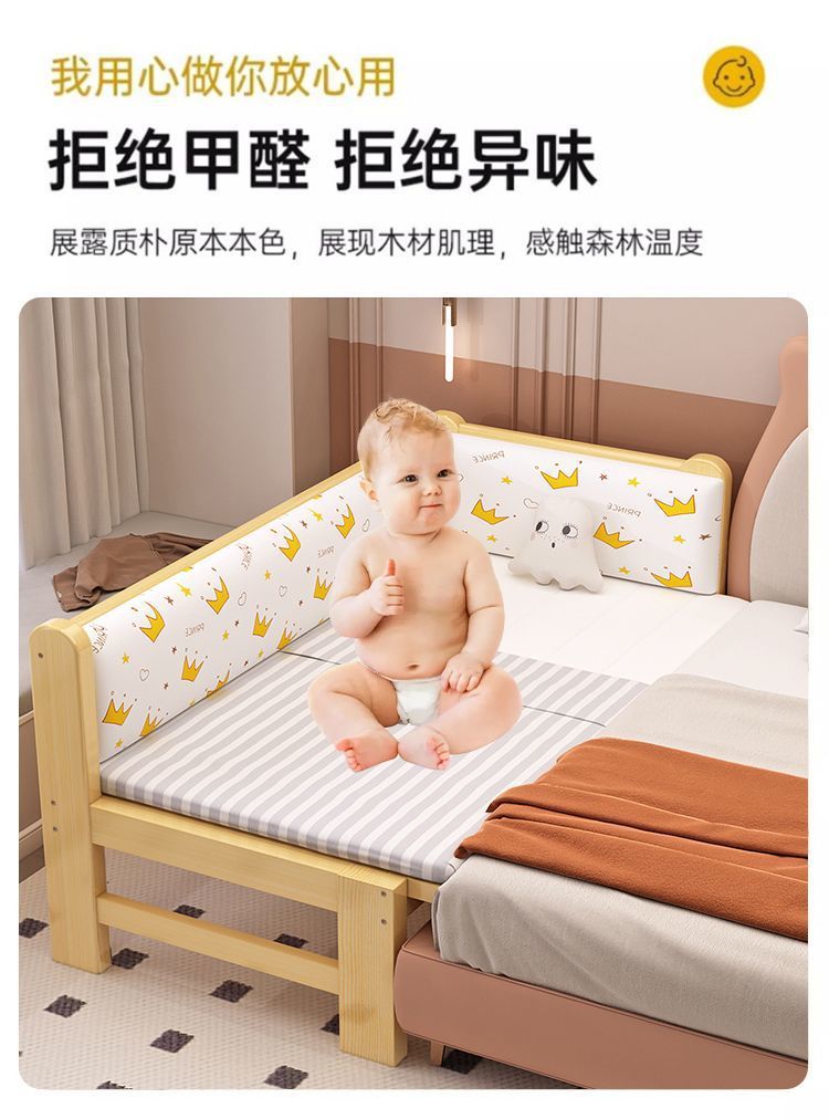 어린이 침대 접합 침대 단단한 아기 침대 가드 레일 접합 침대 두껍고 대담한 단단한 나무 침대 국경을 갖춘 넓어진 침대