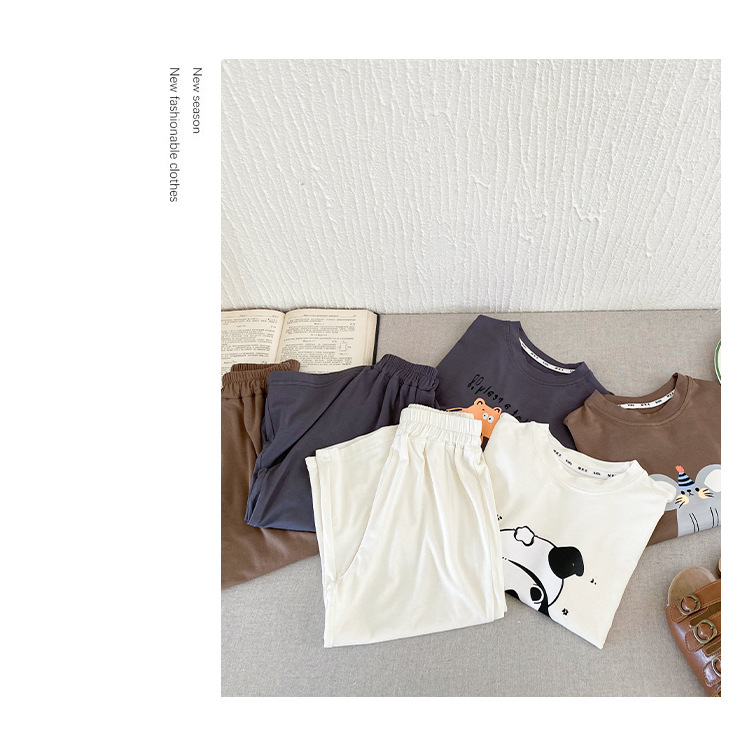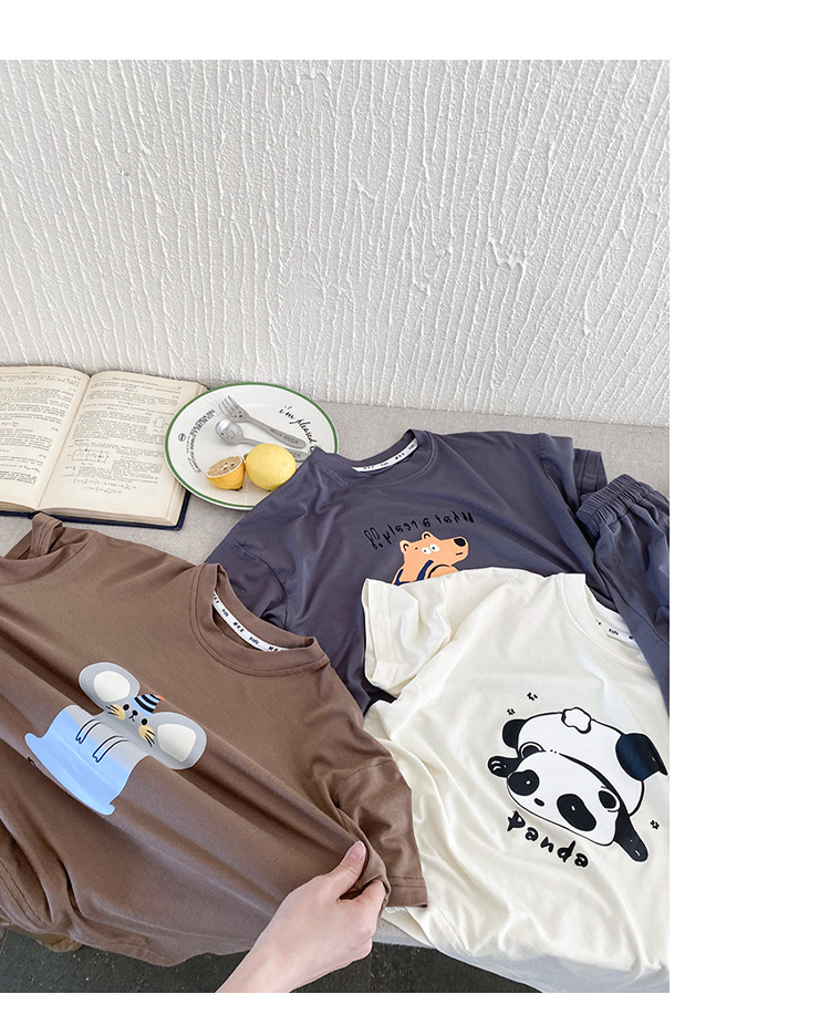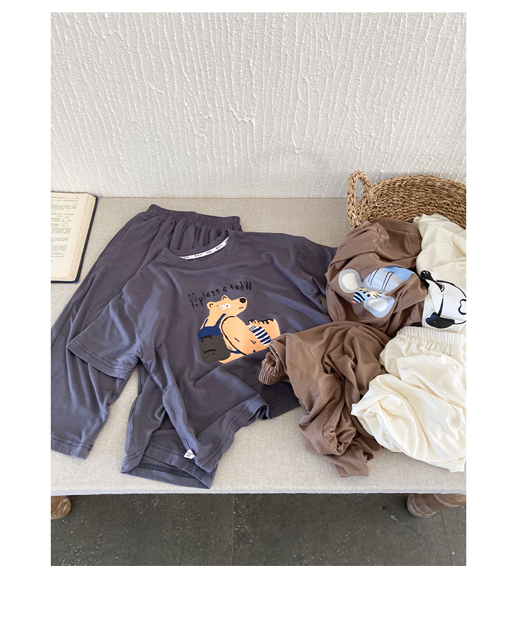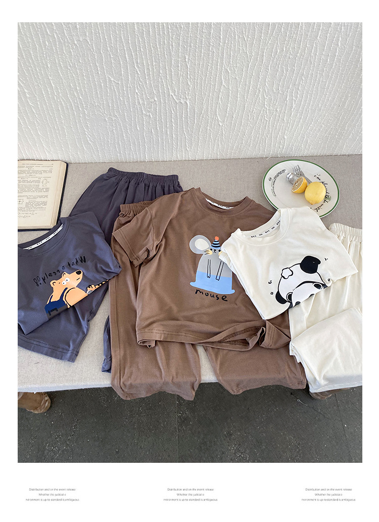 아동 여름 가정복, 남아 잠옷, 유아용 반팔 양복, 어린 소년 여름 2025 새로운 한국 아동복스토어 가기