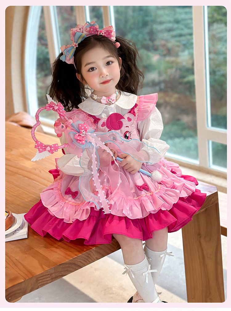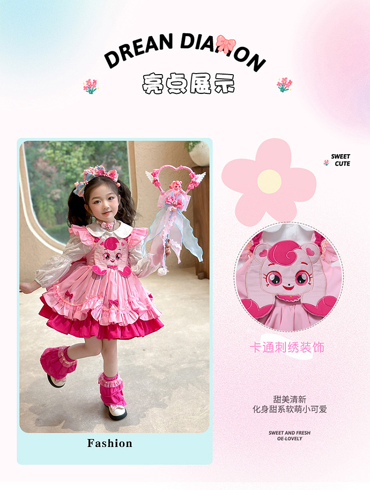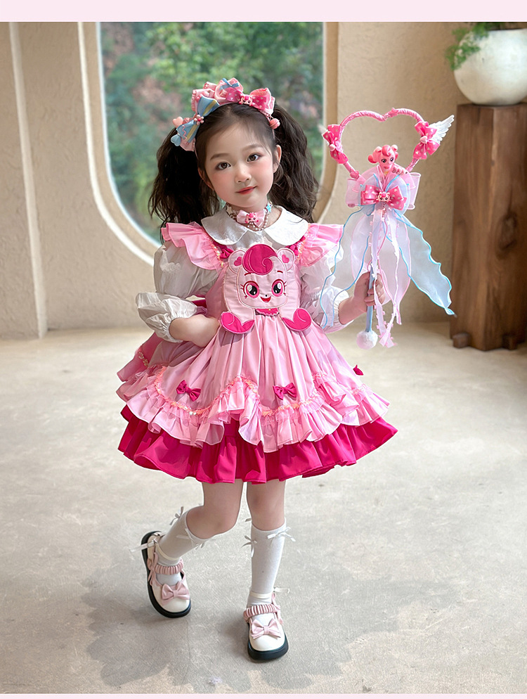 소녀 로리타 원피스 2025 봄과 가을 새로운 어린이 생일 원피스 만화 귀여운 외국 스타일 공주 원피스