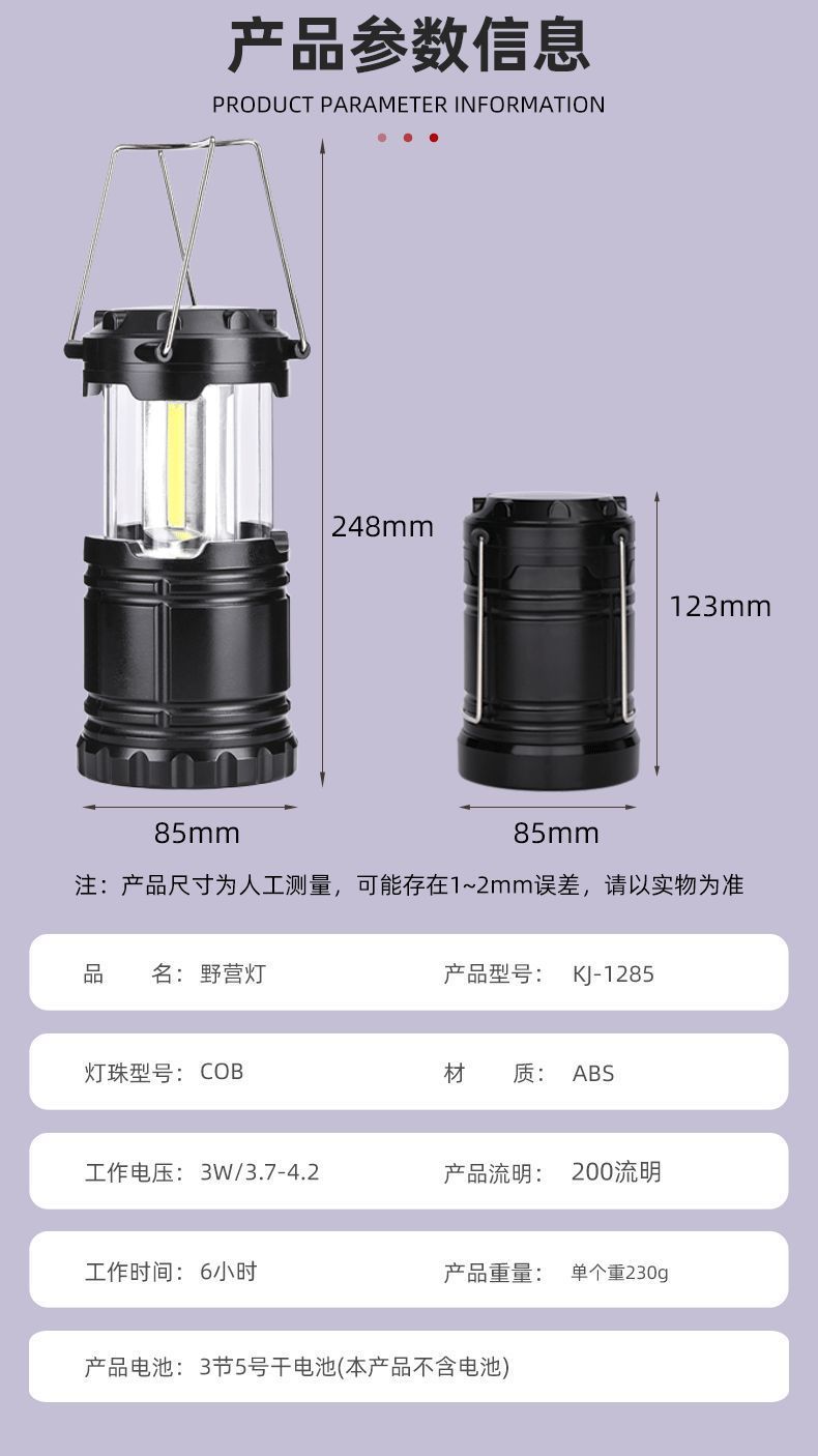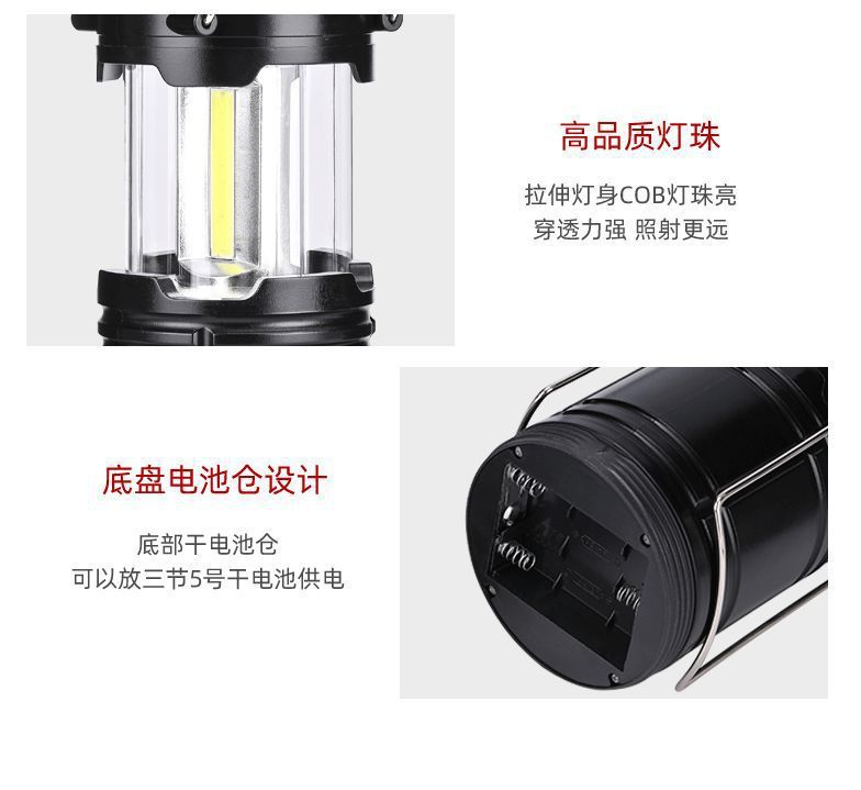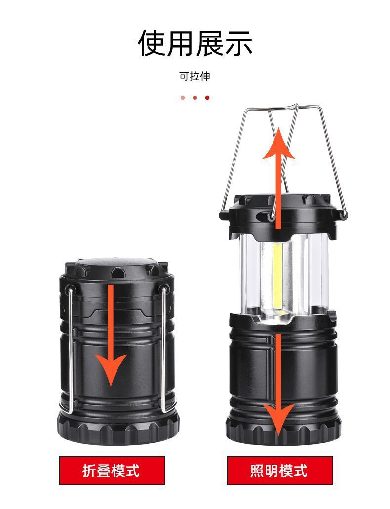 공장 후크 휴대용 랜턴 자석 cob led 야외 접이식 스위치 캠핑 텐트 비상 조명