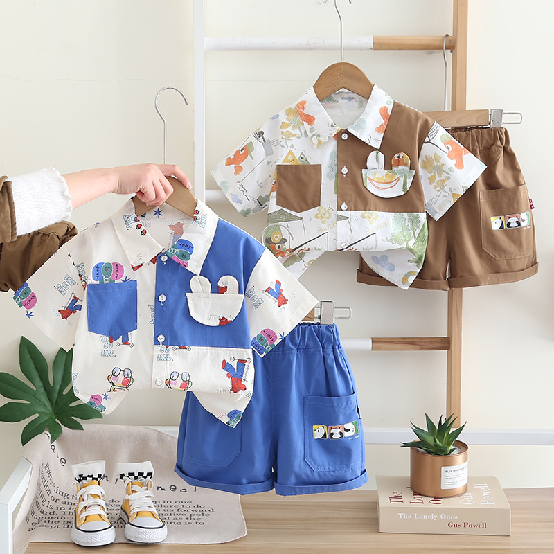 어린이 의류 여름 새로운 0-4 세 소년과 소녀 만화 반팔 셔츠 투피스 반팔 반바지 세트