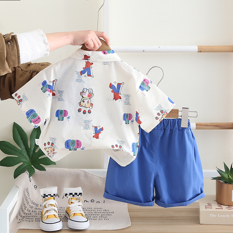 어린이 의류 여름 새로운 0-4 세 소년과 소녀 만화 반팔 셔츠 투피스 반팔 반바지 세트스토어 가기