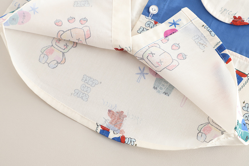 • MYT 전체 프린트 카툰 패치워크 셔츠 슈트 블루
