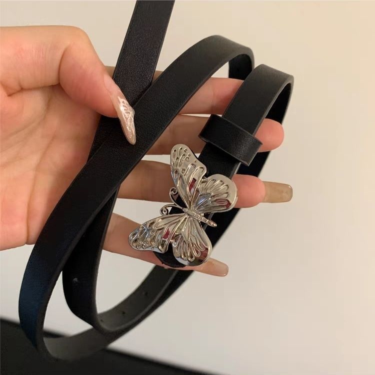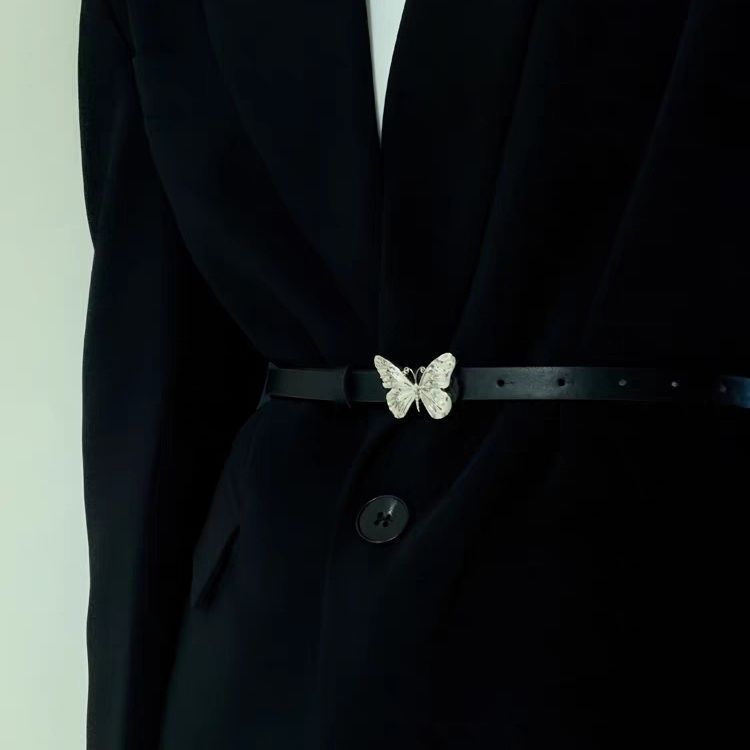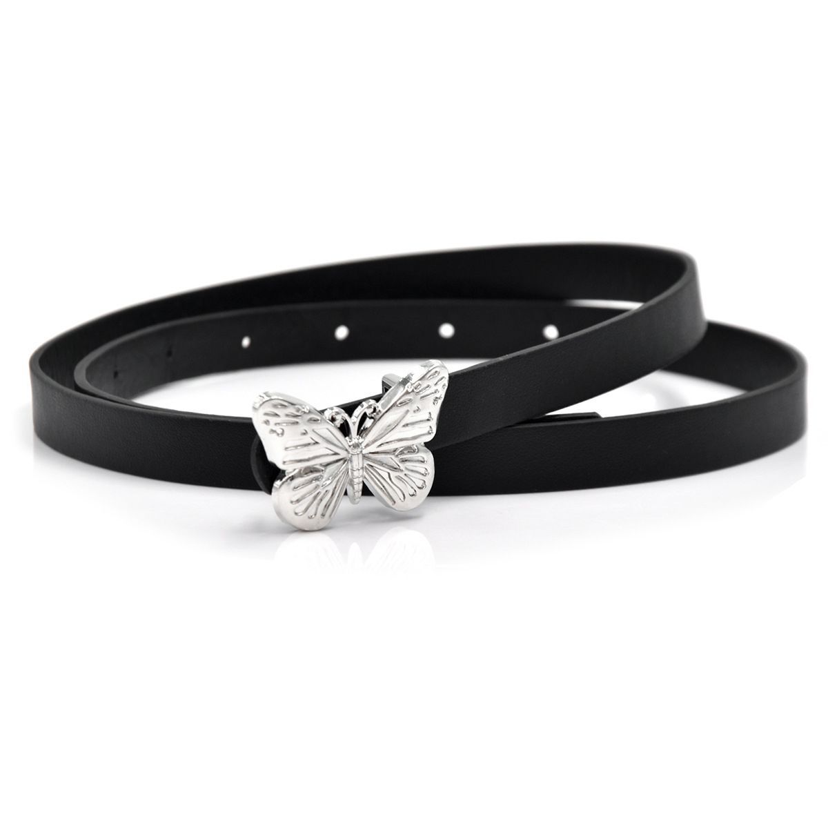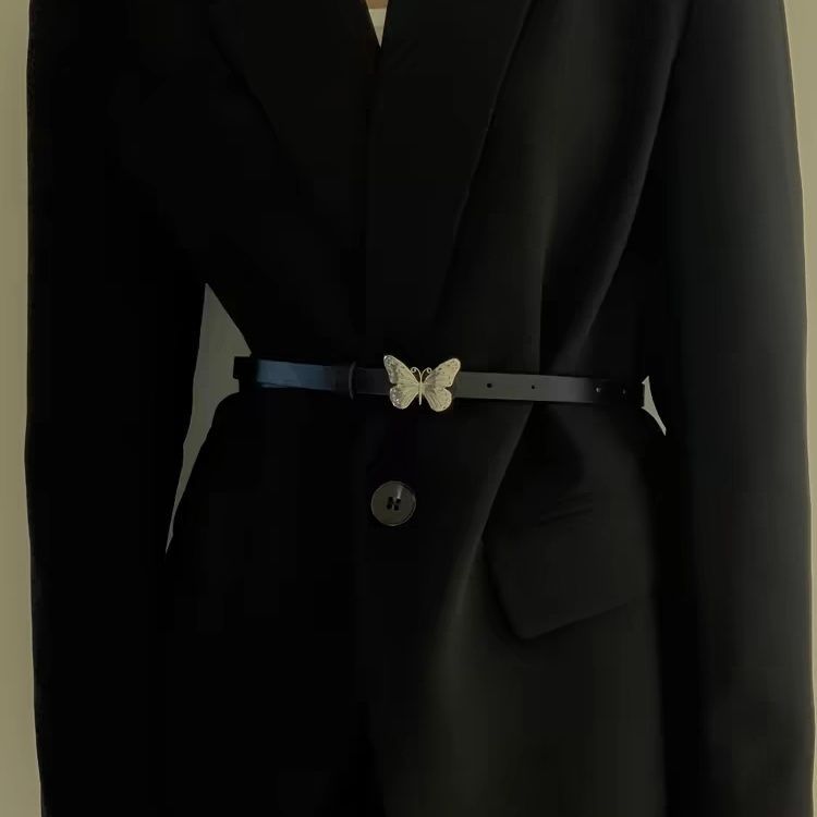 독특한 디자인의 나비 버클 가죽 벨트, 블랙 벨트, 정장 바지용 신상 허리띠, 트렌디한 장식 벨트