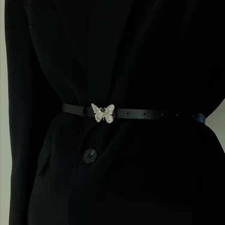 독특한 디자인의 나비 버클 가죽 벨트, 블랙 벨트, 정장 바지용 신상 허리띠, 트렌디한 장식 벨트스토어 가기