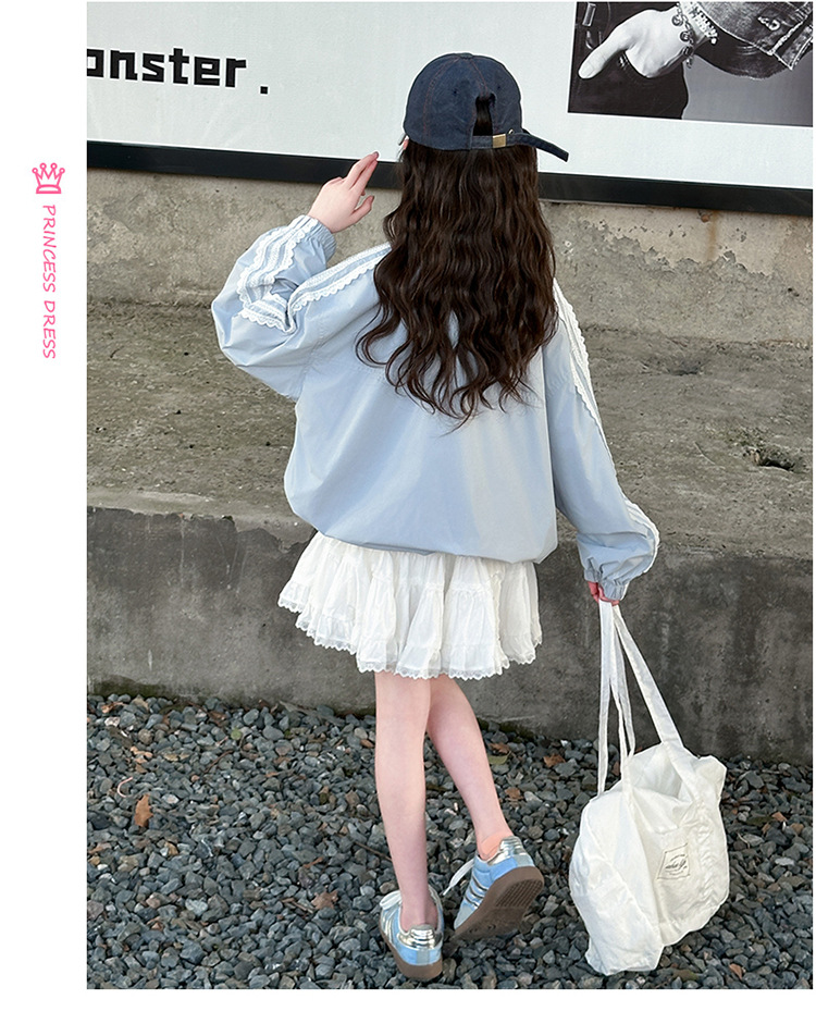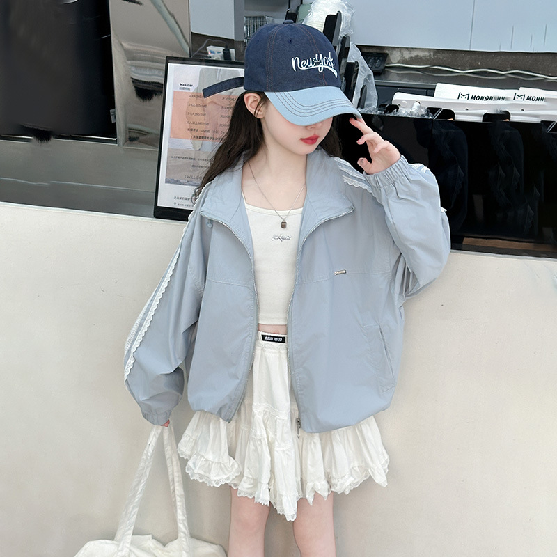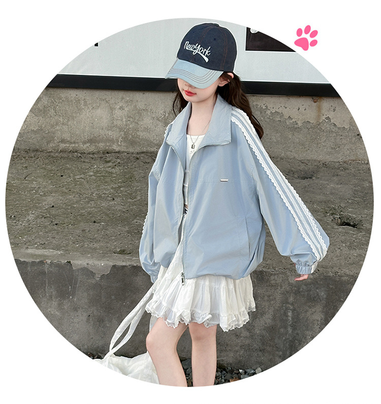 소녀 유행 레이스 선스크린 코트 2025 봄과 여름 새로운 도착 서양식 소녀 느슨한 카디건 탑 재킷