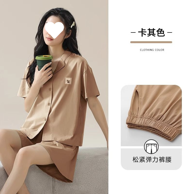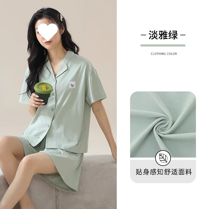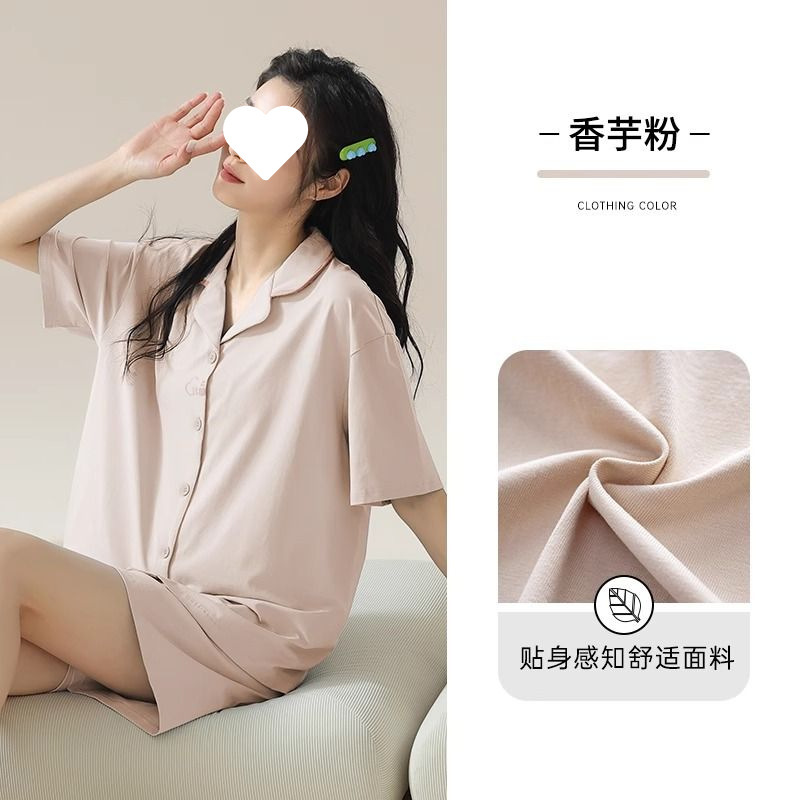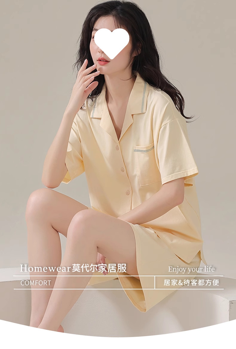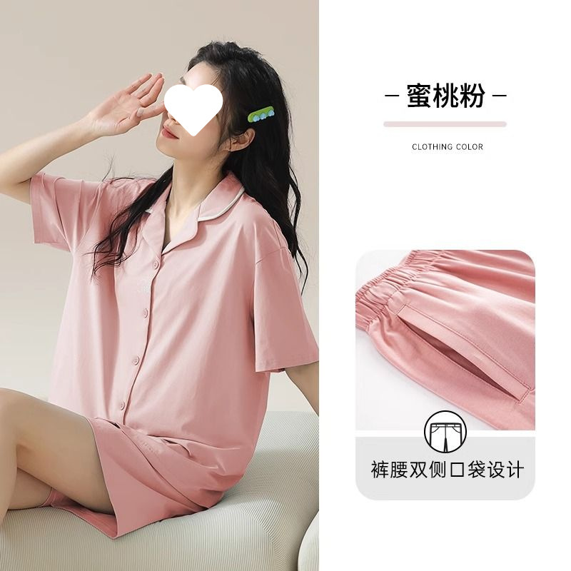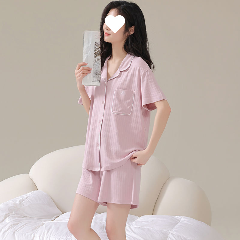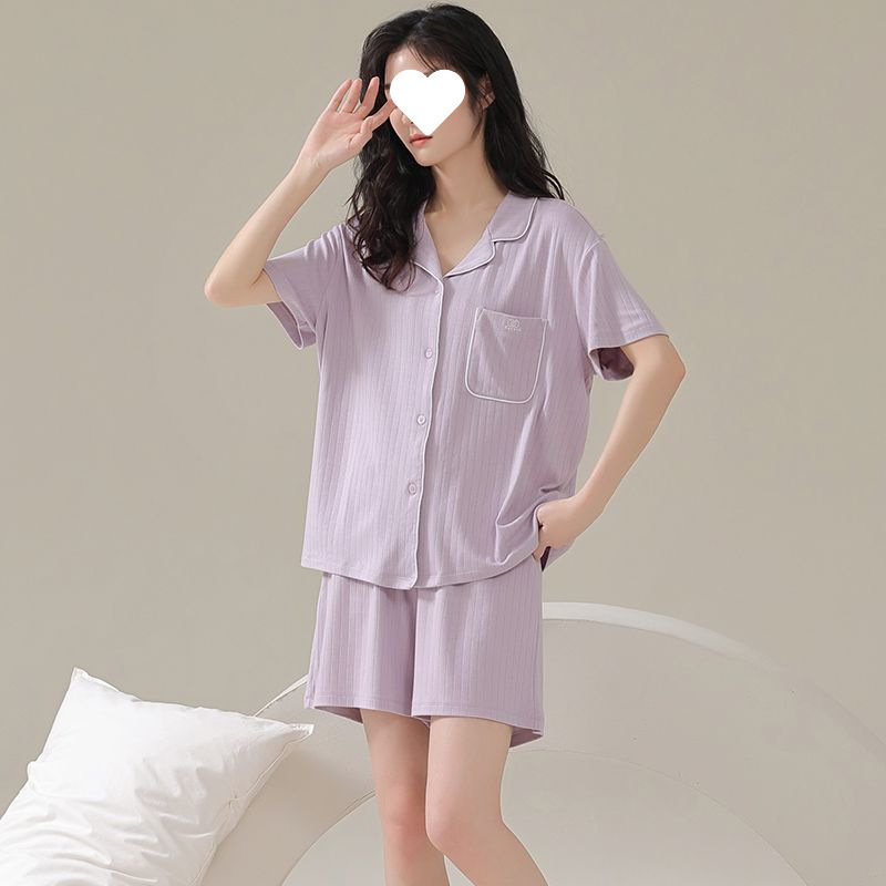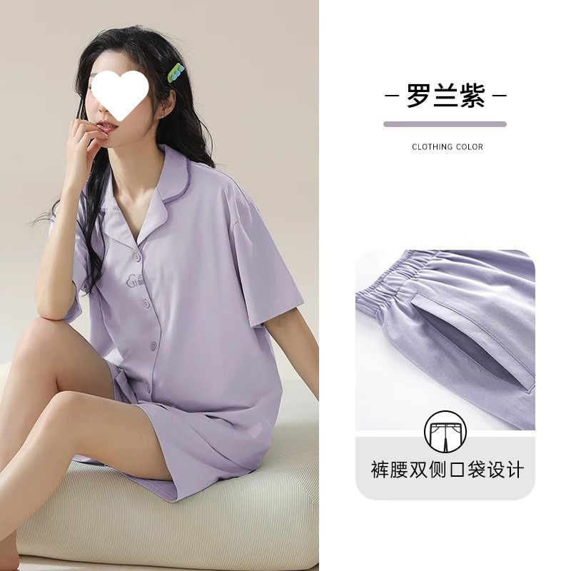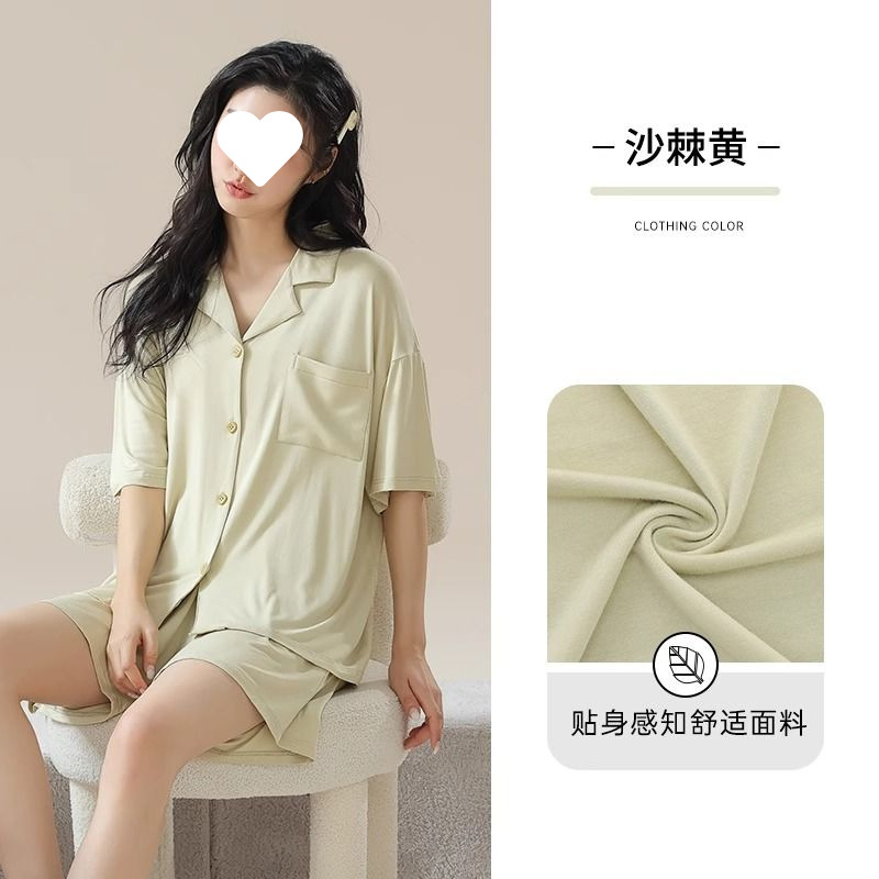 파자마 여성 솔리드 컬러 2025 새로운 아이스 실크 여름 모달 얇은 반팔 홈 의류 세트 외부 착용 심플스토어 가기