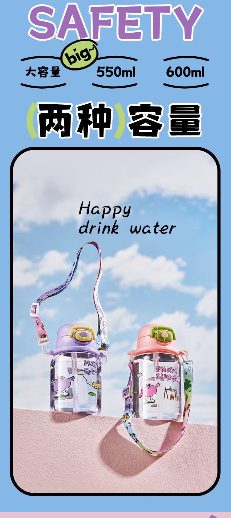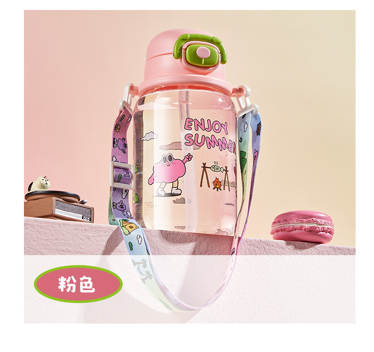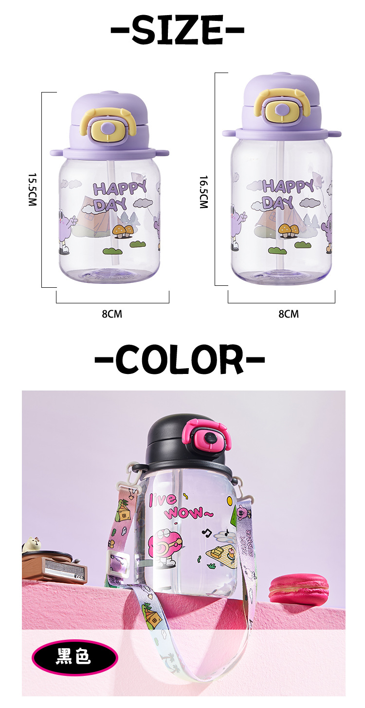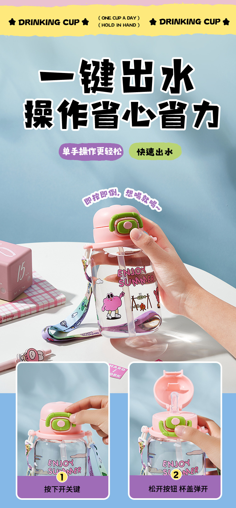 퓨싱 만화 어린이 워터 컵 학생 귀여운 흡입 컵 남자와 여자 여름 휴대용 플라스틱 컵 드롭 방지 수공예 컵