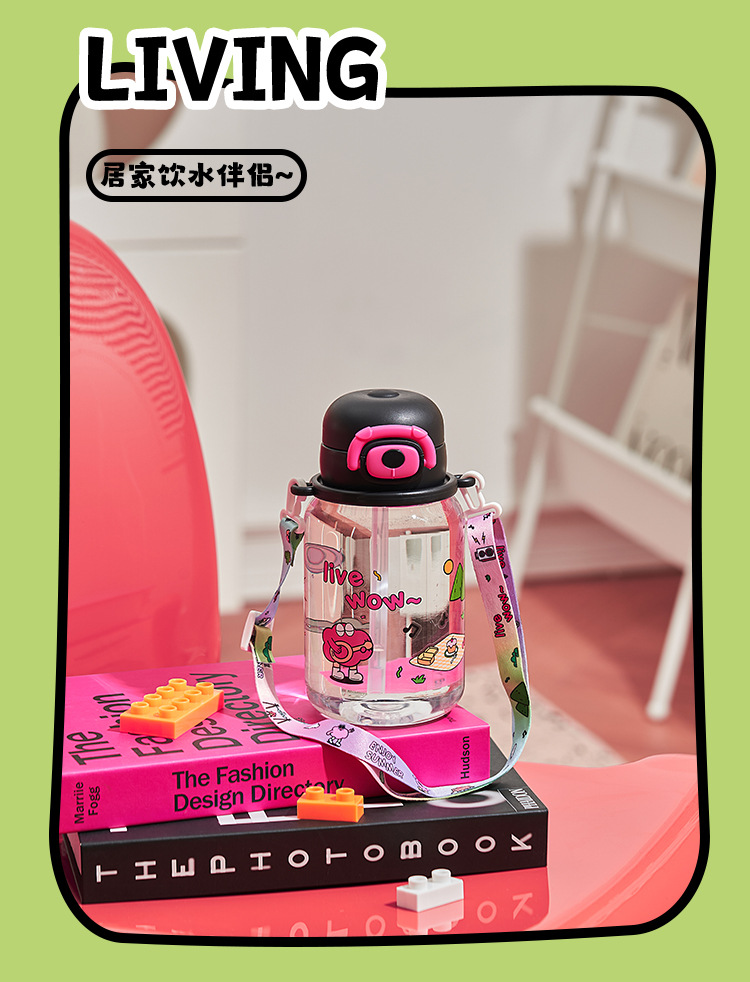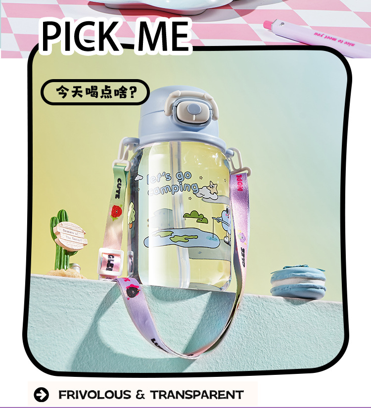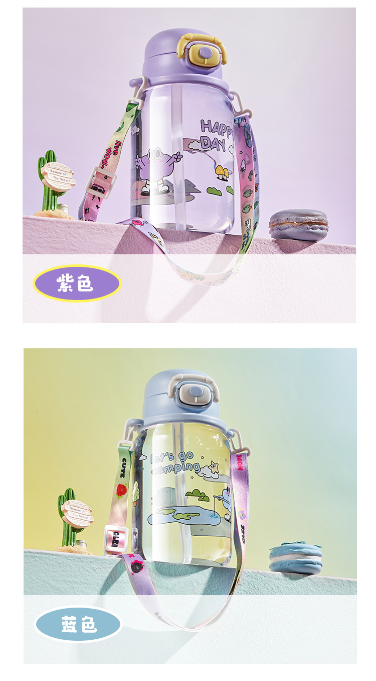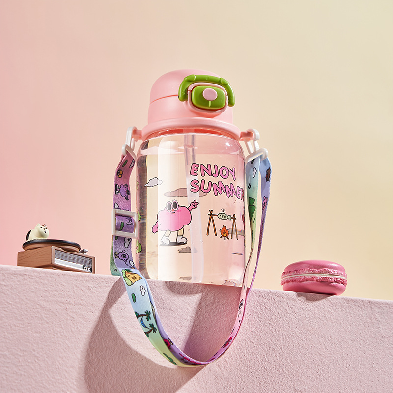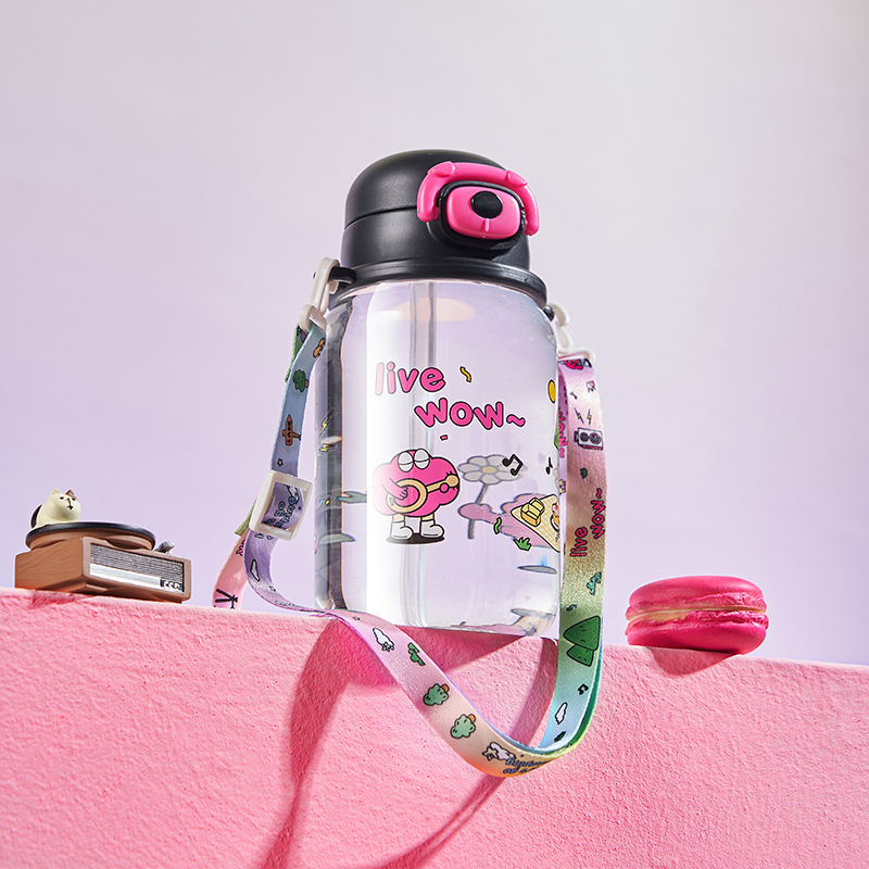 퓨싱 만화 어린이 워터 컵 학생 귀여운 흡입 컵 남자와 여자 여름 휴대용 플라스틱 컵 드롭 방지 수공예 컵