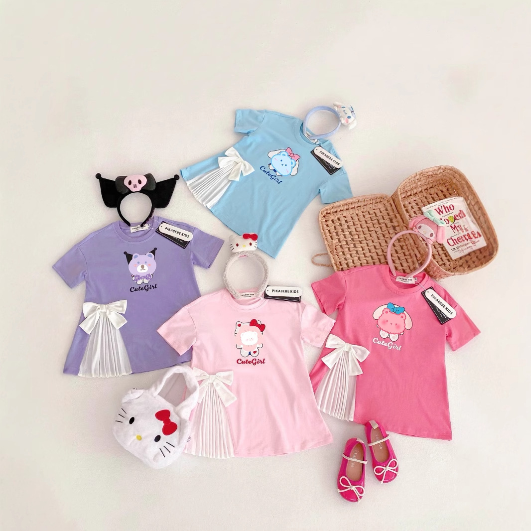 새로운 여름 소녀의 만화 귀여운 원피스 티셔츠 스커트 반팔 어린이 공주 활 스커트스토어 가기