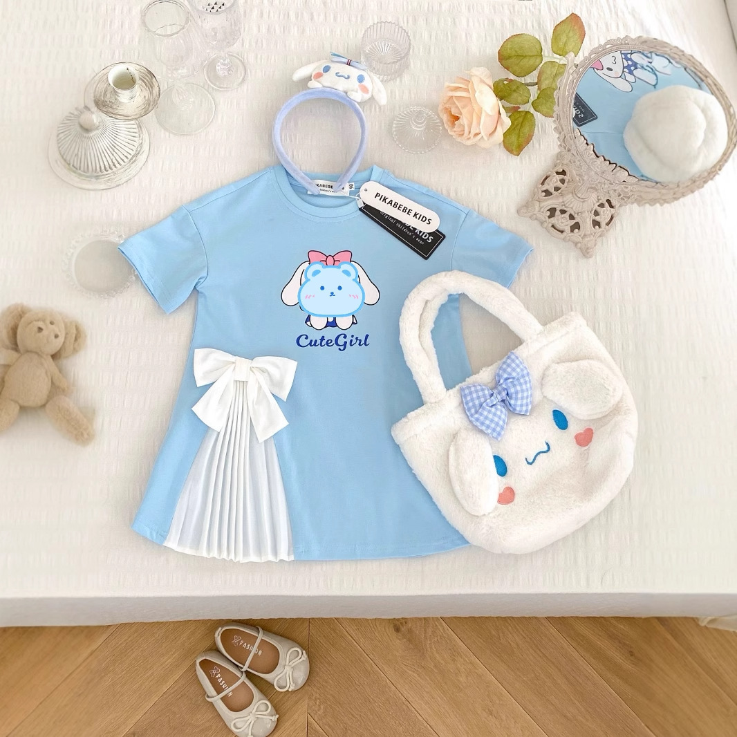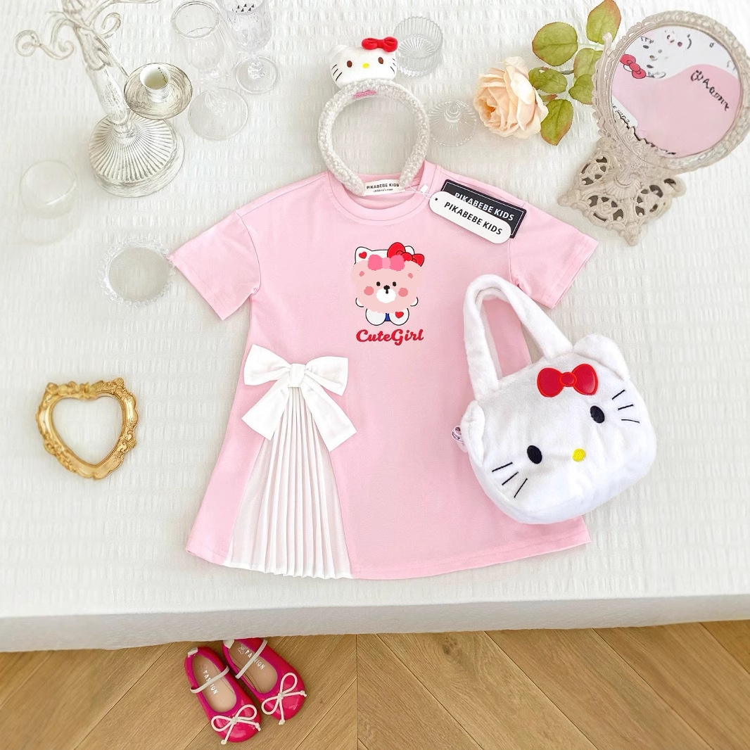 새로운 여름 소녀의 만화 귀여운 원피스 티셔츠 스커트 반팔 어린이 공주 활 스커트