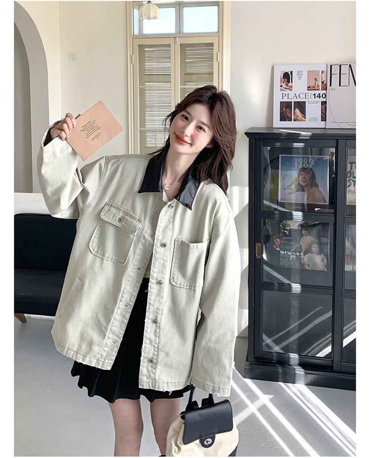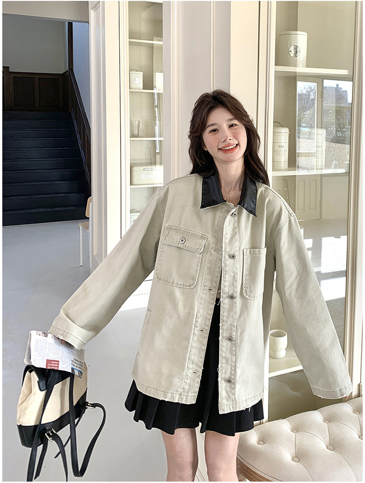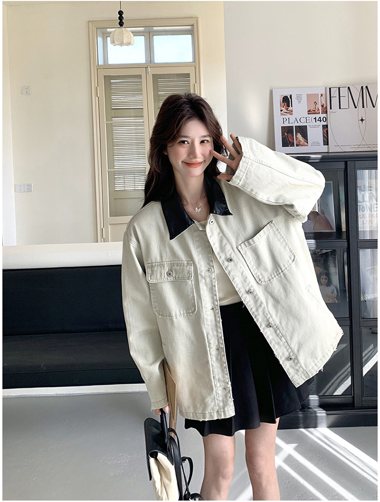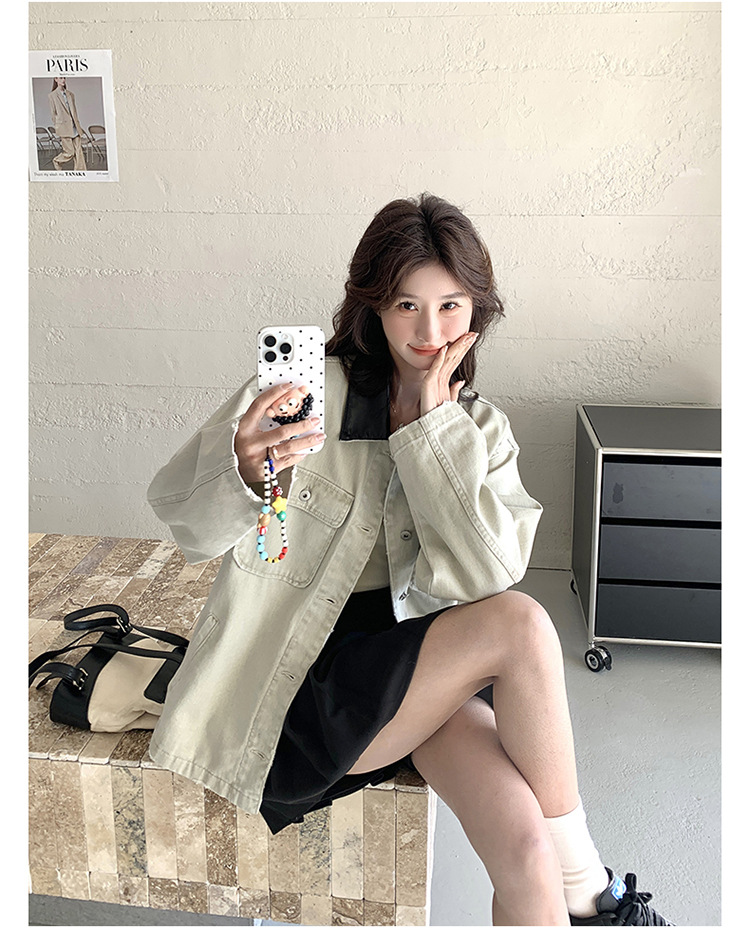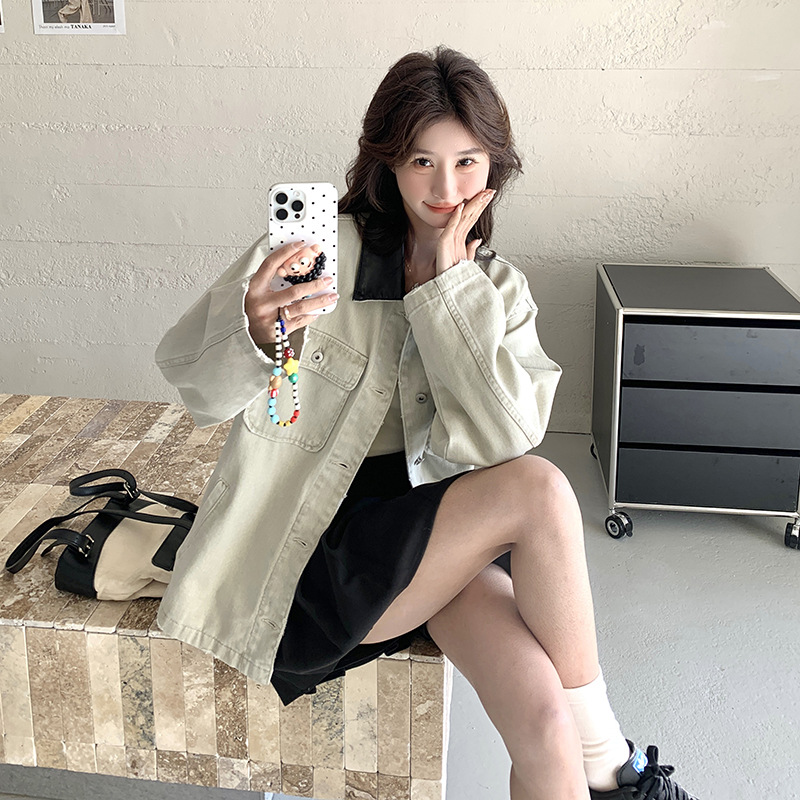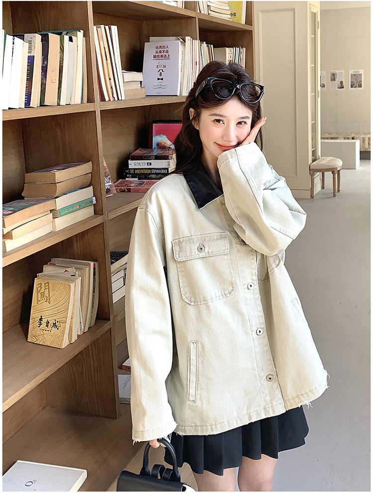 [멩메이] 25 봄페이 프랑스식-한국식 명암 데님 자켓 여성 루스Bf 게으름 스타일 캐주얼 자켓 타이드스토어 가기