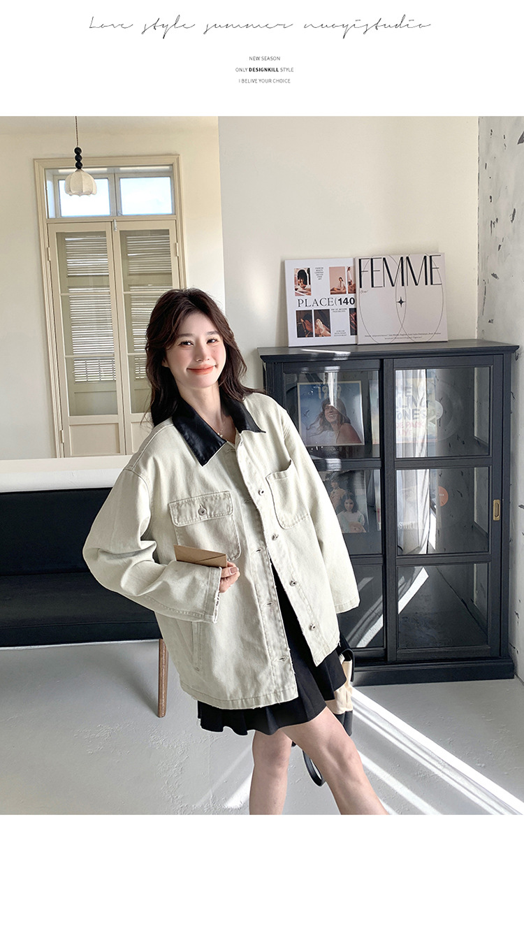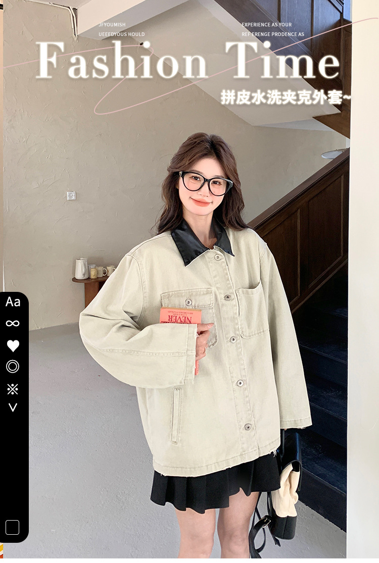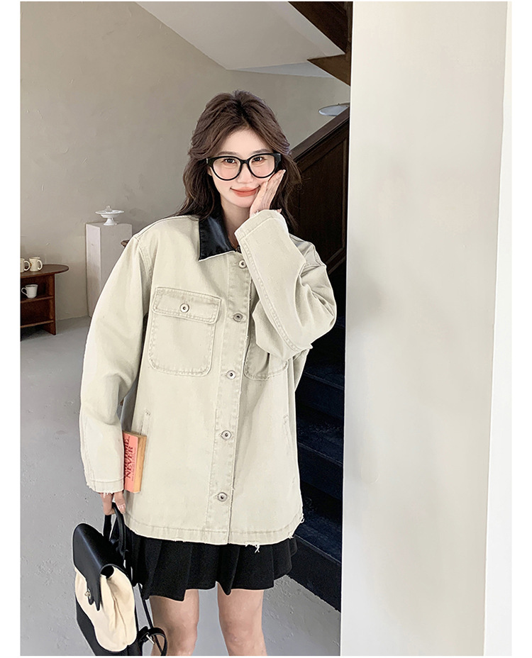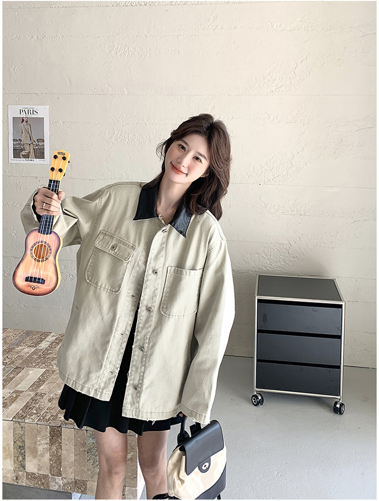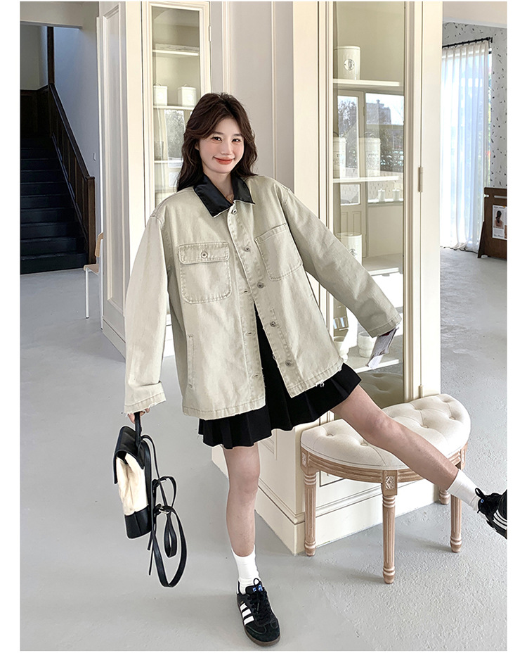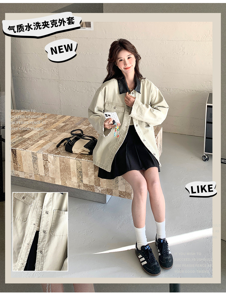 [멩메이] 25 봄페이 프랑스식-한국식 명암 데님 자켓 여성 루스Bf 게으름 스타일 캐주얼 자켓 타이드스토어 가기