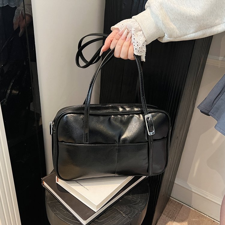 2025 봄 새로운 한국식 우아한 어깨 가방 모든 경기 대용량 서류 가방 여성 복고풍 통근 보스턴 언더암 가방