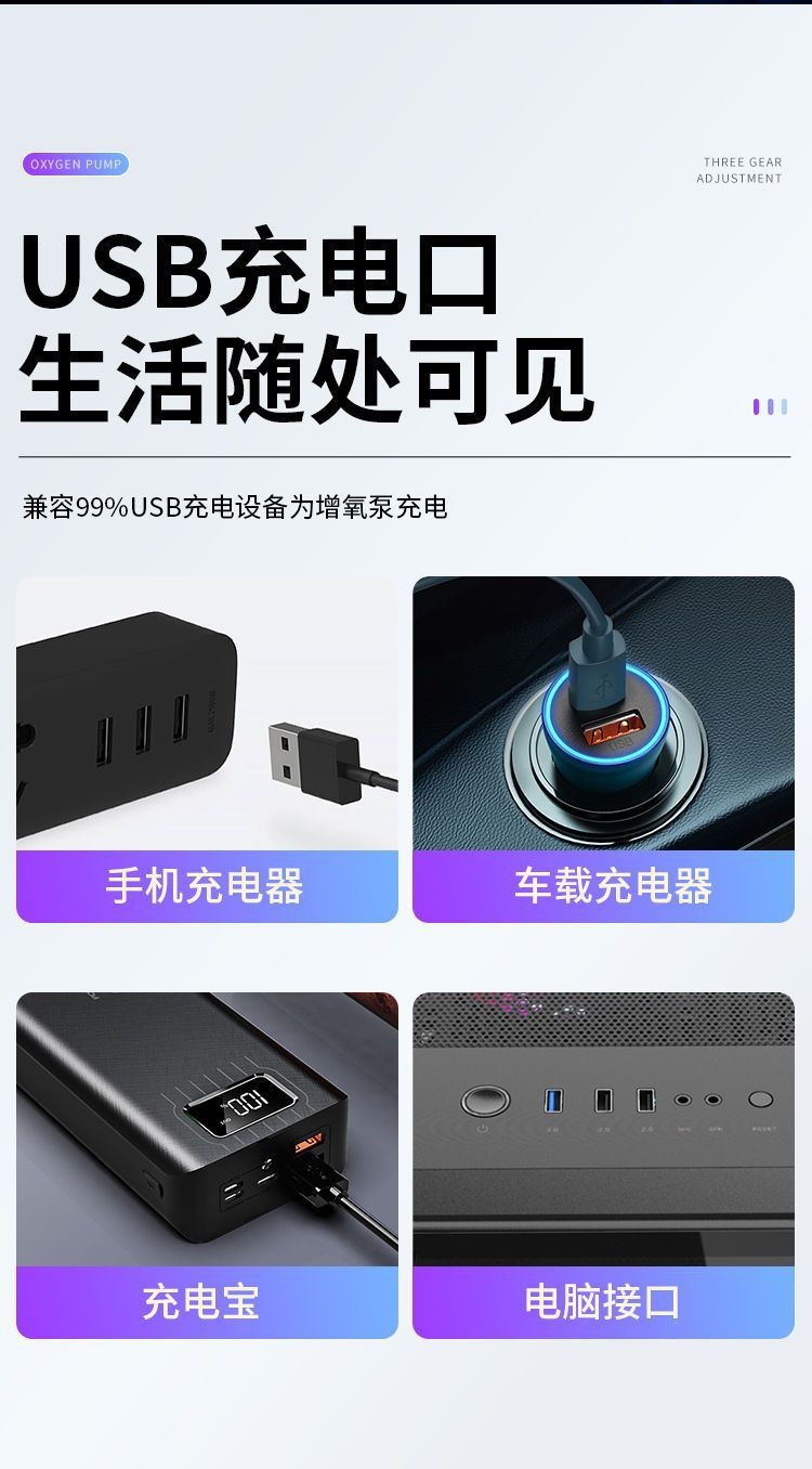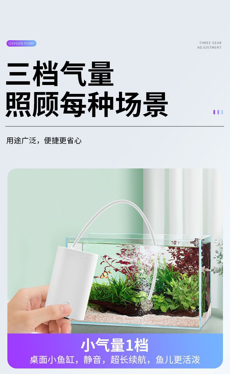 새로운 충전식 산소 펌프 3 기어 조정 가능한 대기 산소 펌프 긴 내구성 산소 펌프 기타