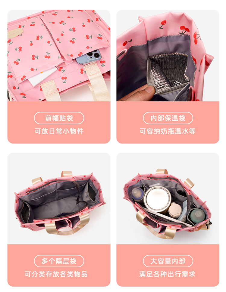 새로운 유럽과 미국의 체리 어깨 미라 가방 멀티 파티션 파티션 토트 어머니와 아기 여행 가방 경량 핸드백