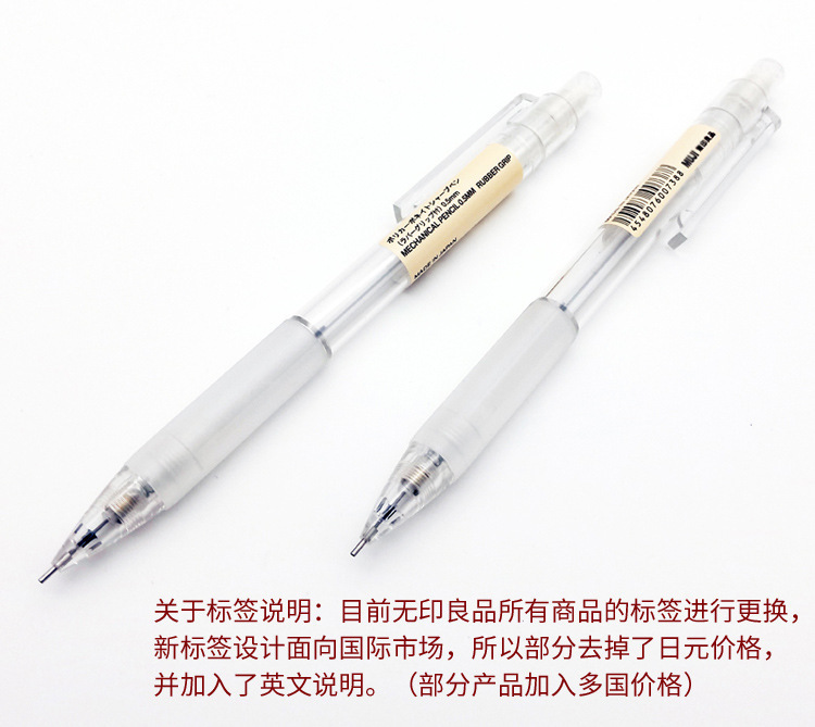 일본 MUJI MUJI 문구 기계 연필 0.5mm 투명한 막대 학생 시험 그림 연필스토어 가기