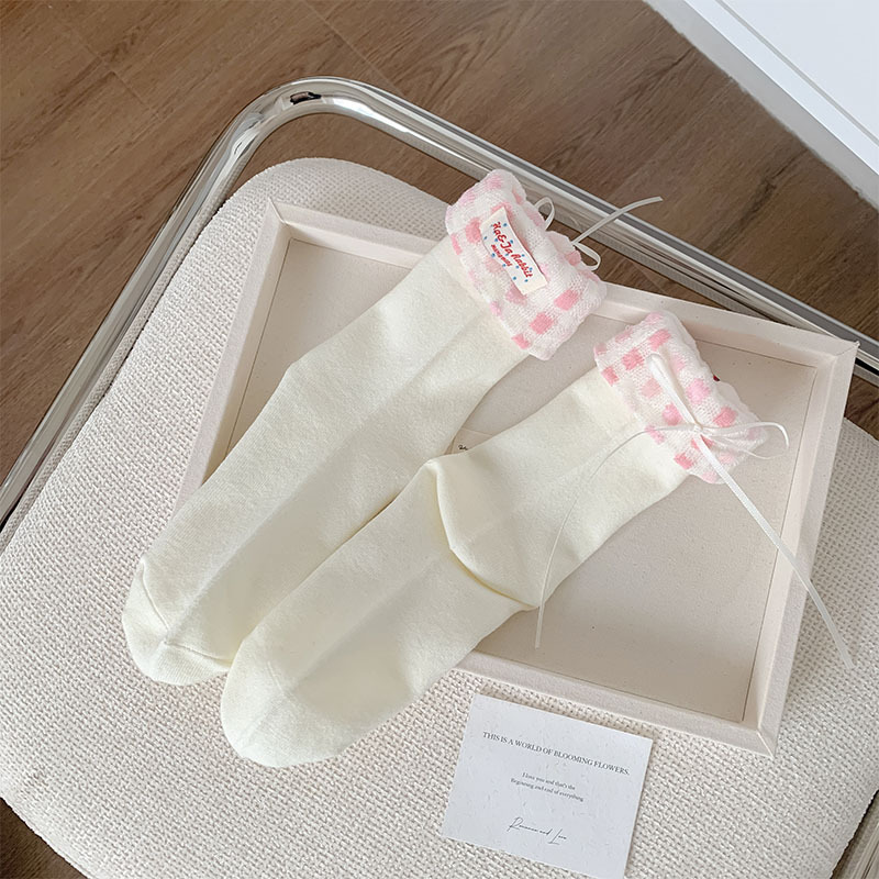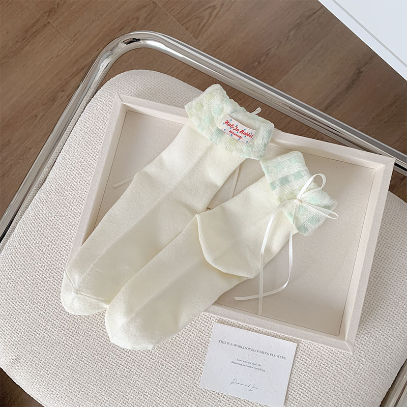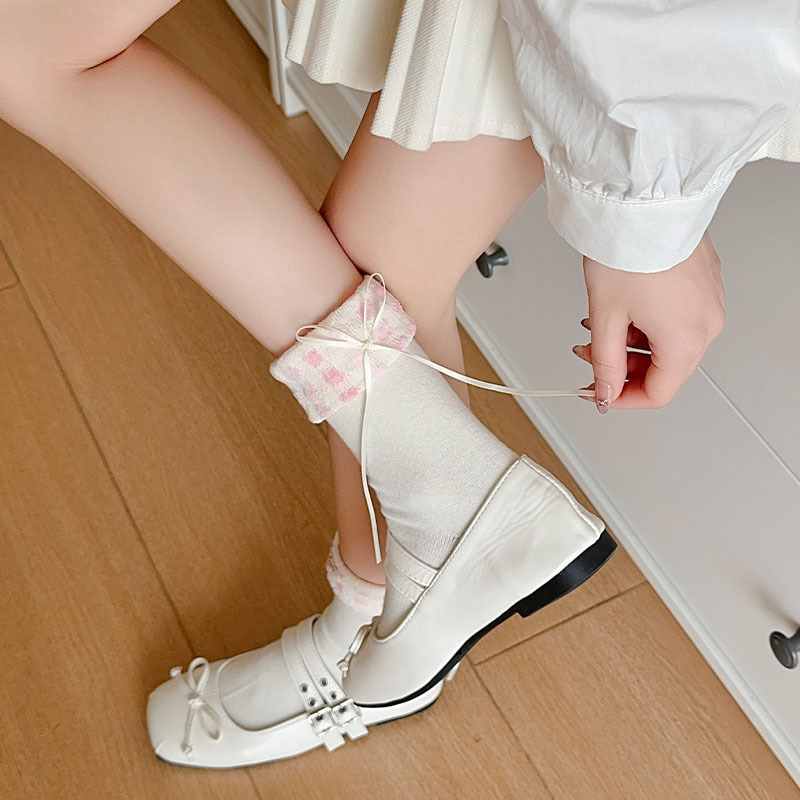 일본 스타일 달콤한 대학 스타일 Girly 스타일 양말 여성 봄 새로운 가열 리본 활 스타킹 작은 가죽 신발스토어 가기
