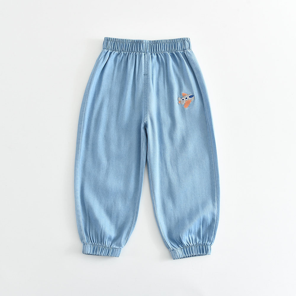 2025년 여름 신상품, 비행기 자수 남아용 얇은 텐셀 데님 모기 방지 바지(중대형 아동용) 0306-07
