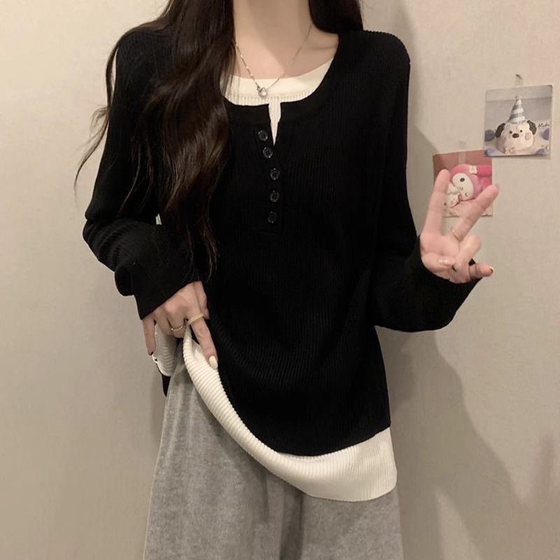 회색 가짜 투피스 긴팔 블라우스 여성의 가을과 겨울 새로운 느슨한 서양식 연령 감소 내베이스 셔츠 탑