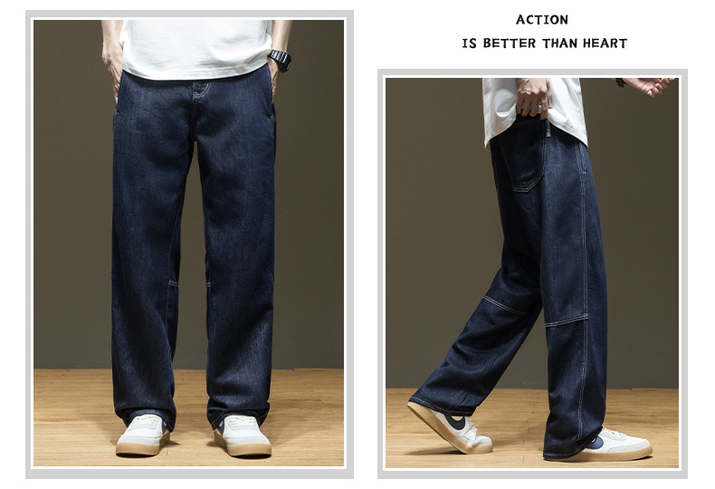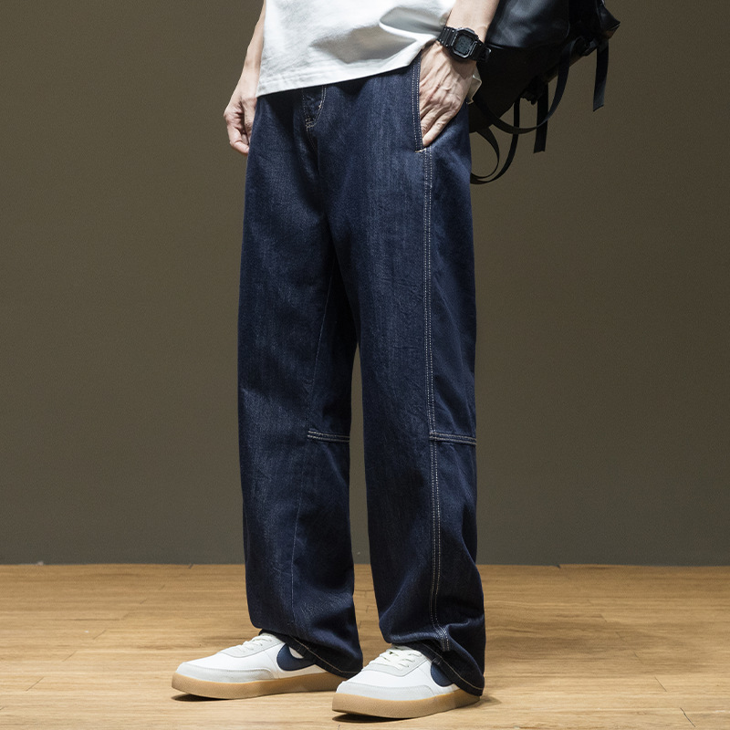 Lyocell의 풀리지 않는 원색 청바지 봄과 가을 남자 스트레이트 2025 봄 플러스 사이즈 미국 캐주얼 바지 남성스토어 가기