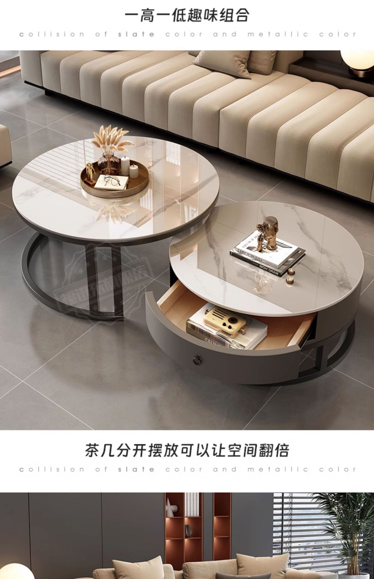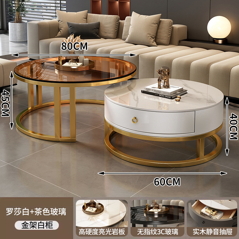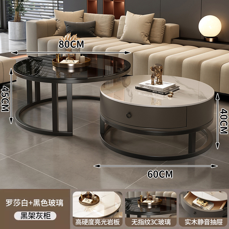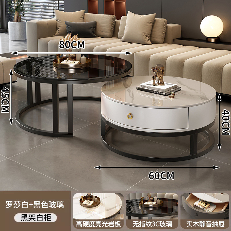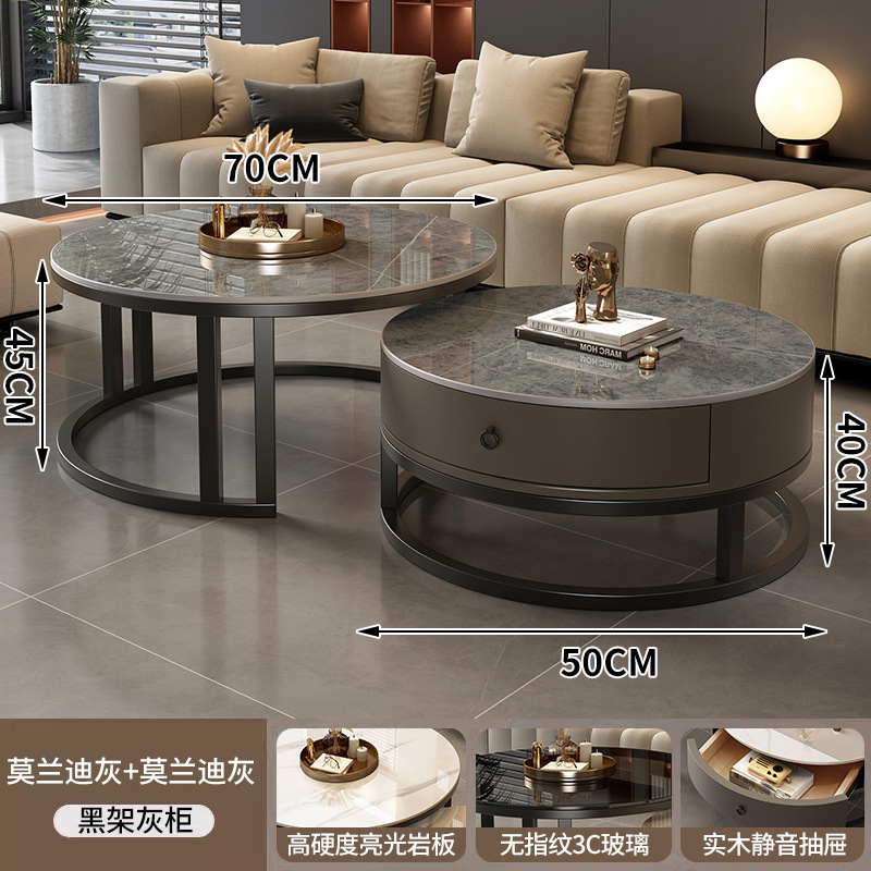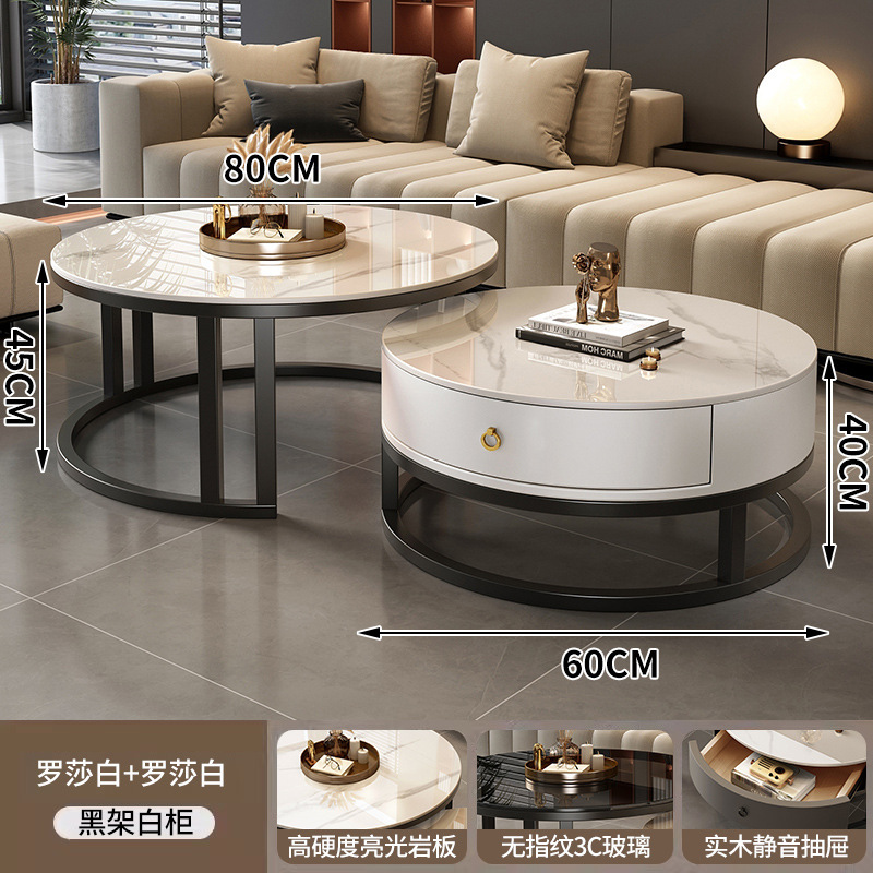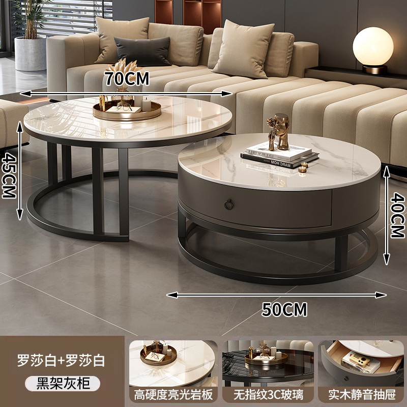 라운드 록 플레이트 커피 테이블 2025 새로운 입장 럭셔리 작은 아파트 거실 TV 캐비닛 간단한 홈 조합