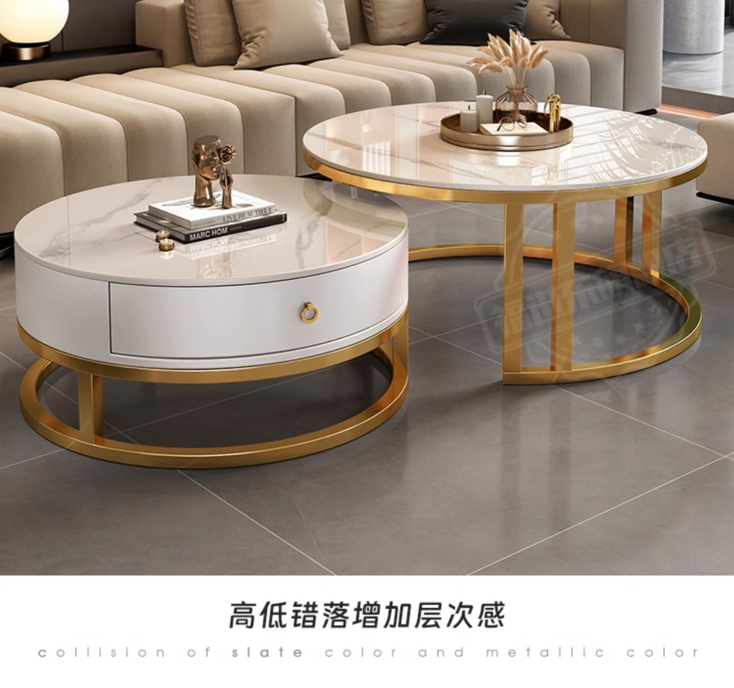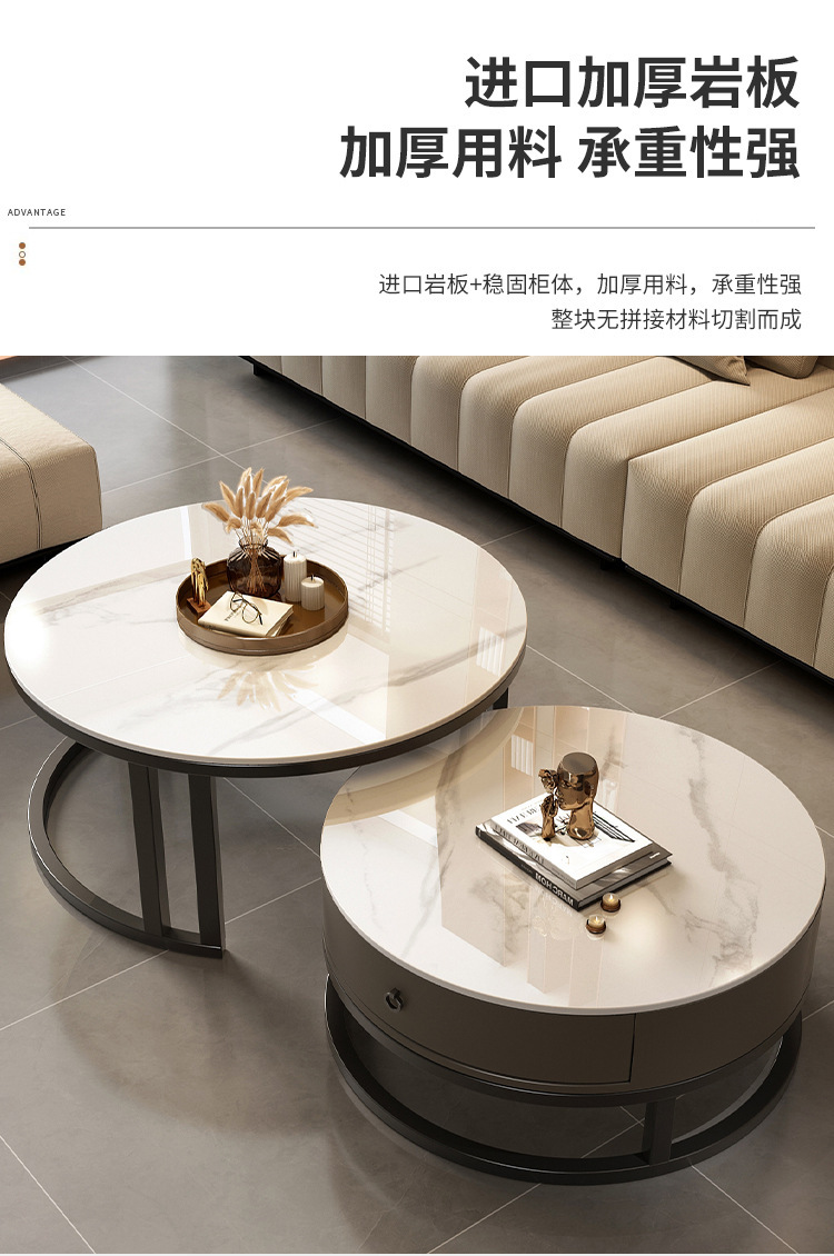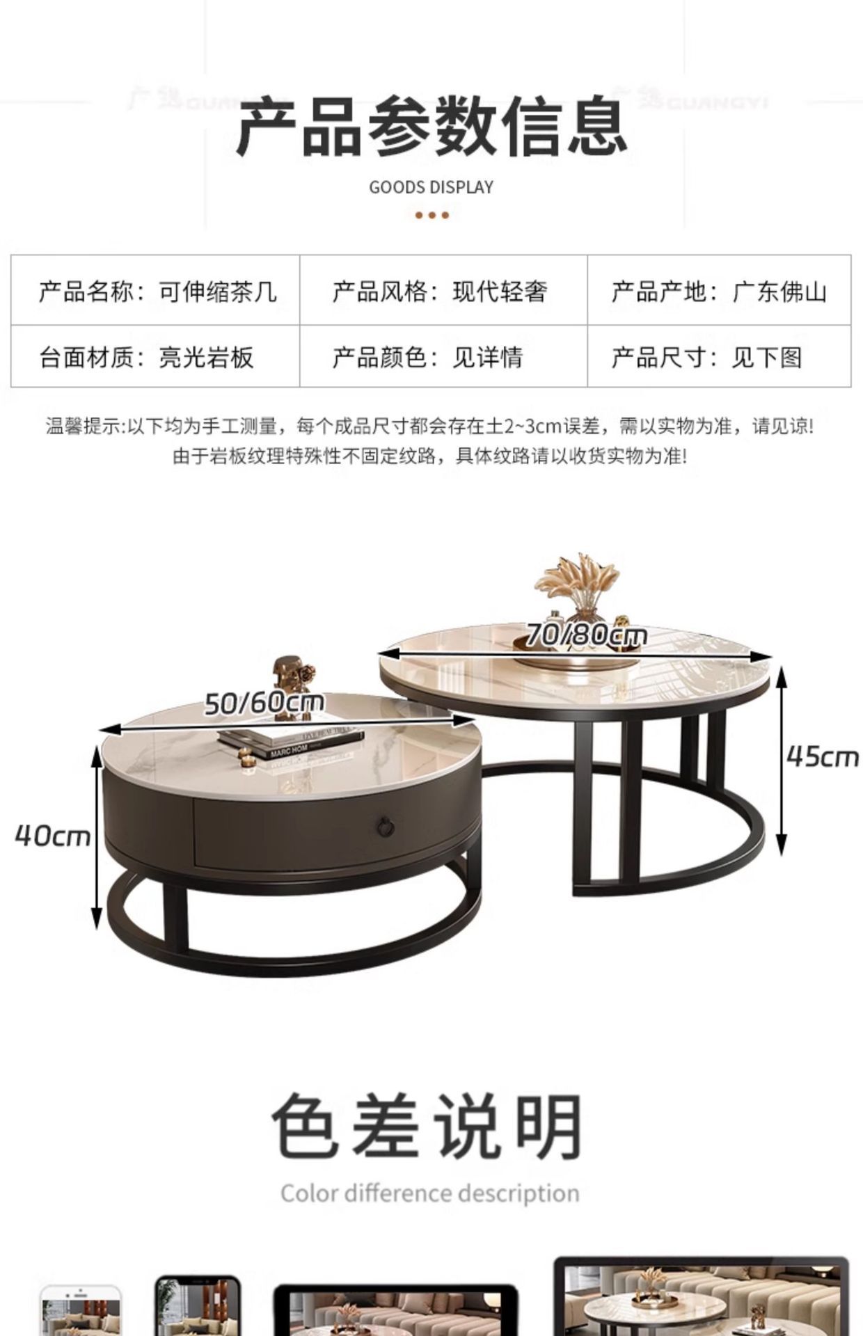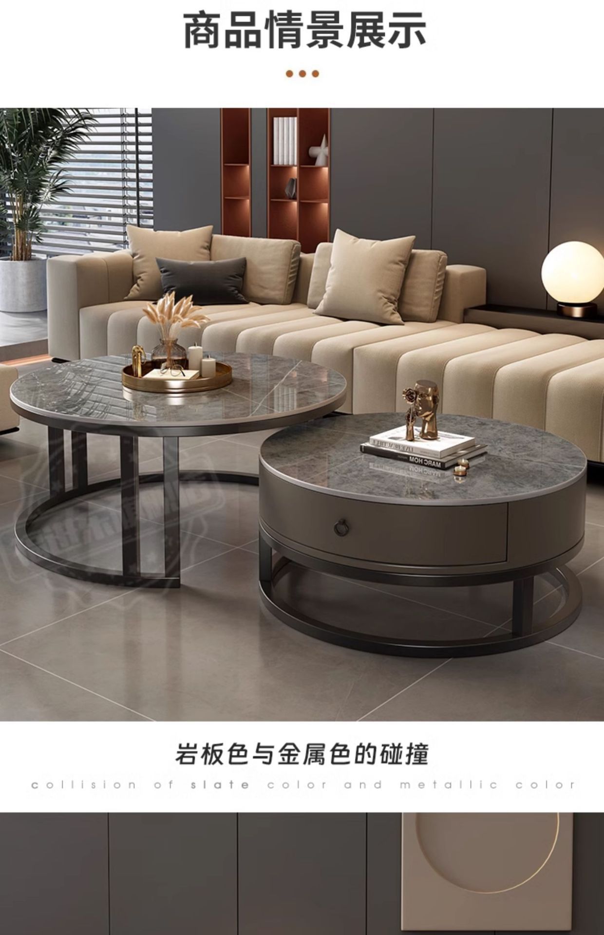 라운드 록 플레이트 커피 테이블 2025 새로운 입장 럭셔리 작은 아파트 거실 TV 캐비닛 간단한 홈 조합