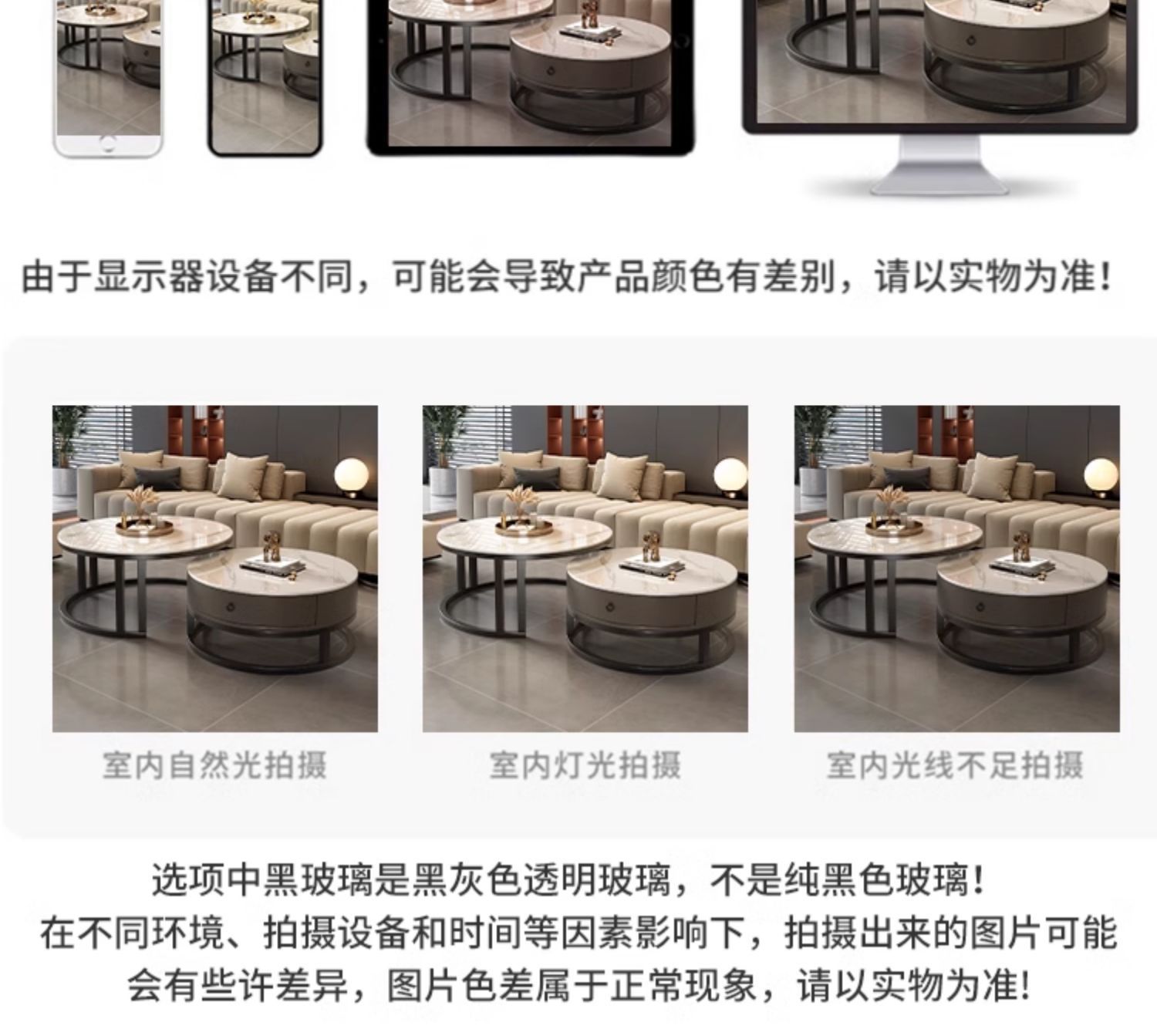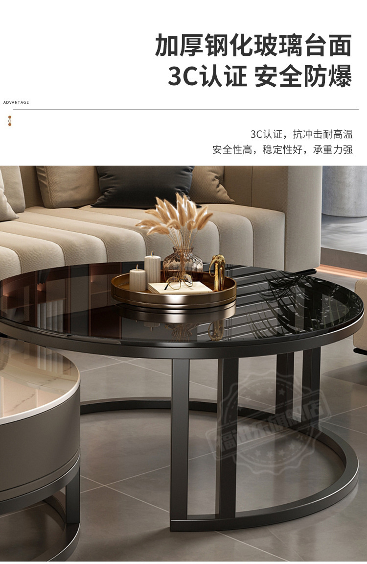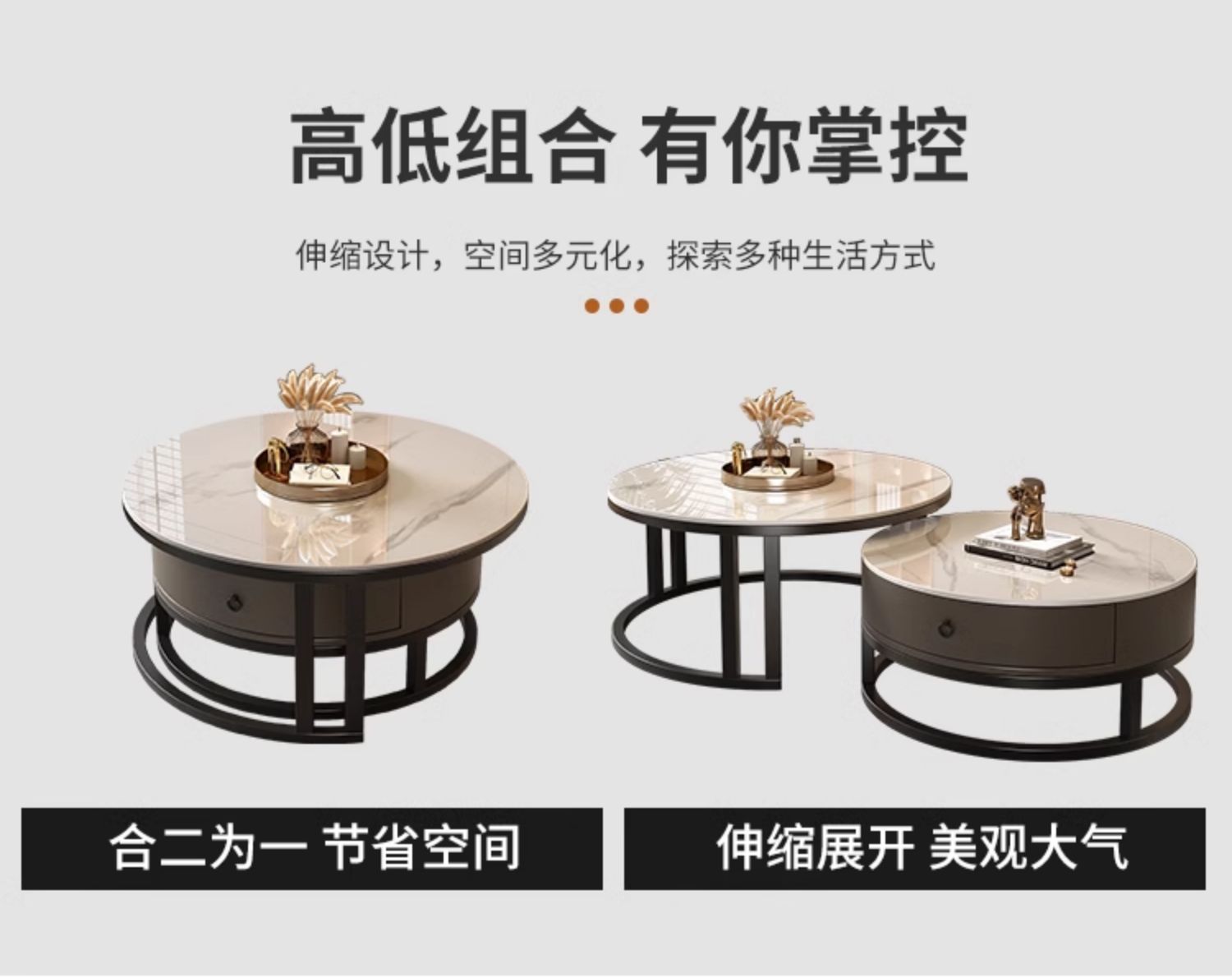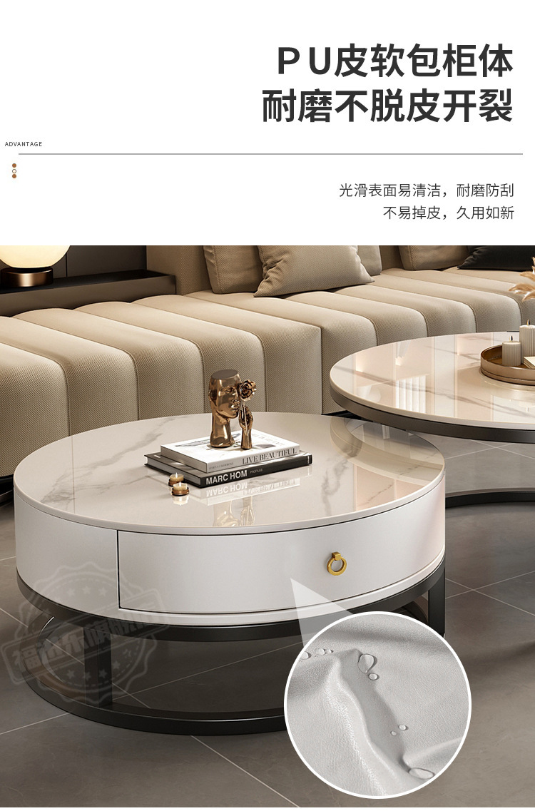 라운드 록 플레이트 커피 테이블 2025 새로운 입장 럭셔리 작은 아파트 거실 TV 캐비닛 간단한 홈 조합