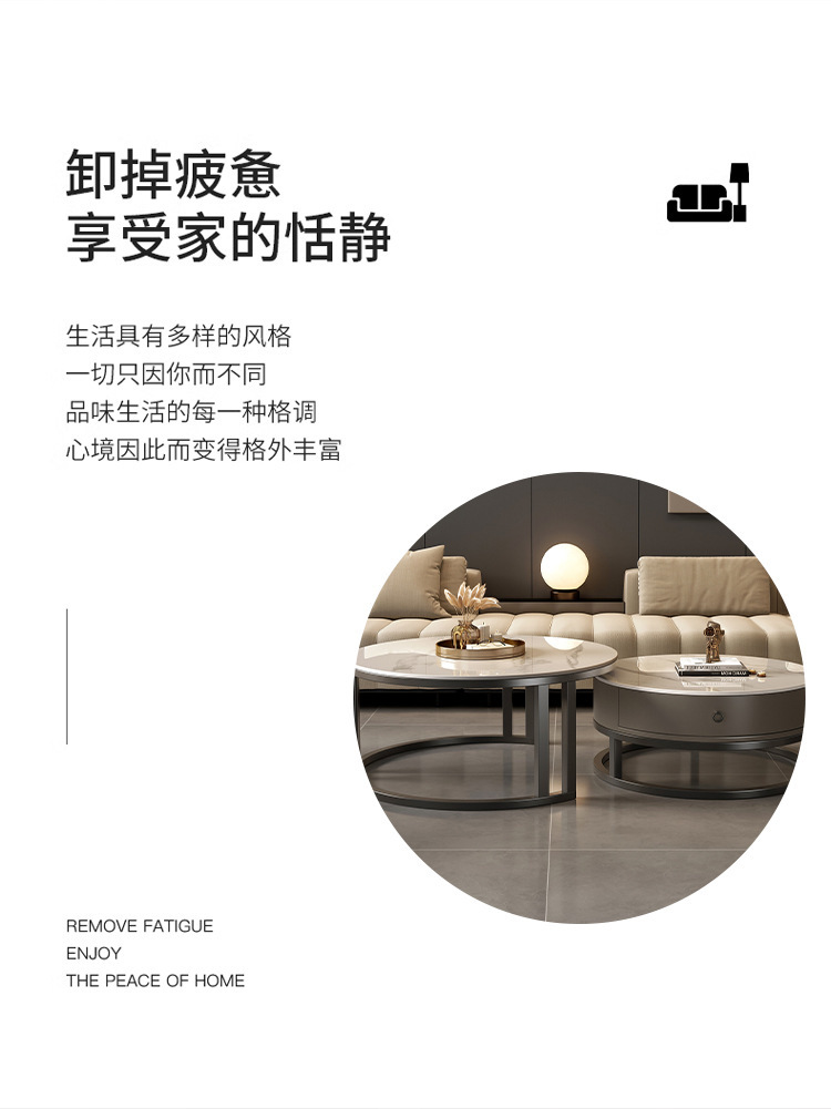 라운드 록 플레이트 커피 테이블 2025 새로운 입장 럭셔리 작은 아파트 거실 TV 캐비닛 간단한 홈 조합스토어 가기