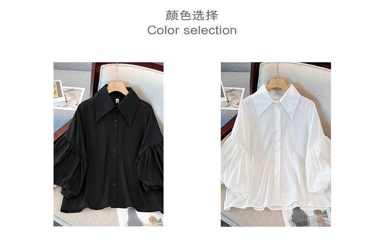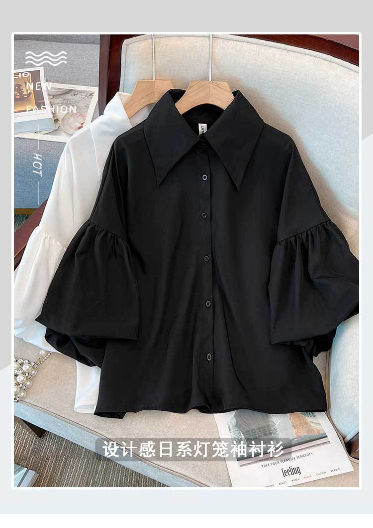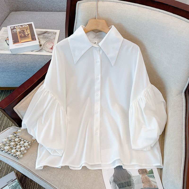 쉬폰 인형 셔츠 플러스 사이즈 여성의 봄과 여름 통통녀 가벼운 고급 고급 고급 프랑스 세련된 독특한 셔츠 탑