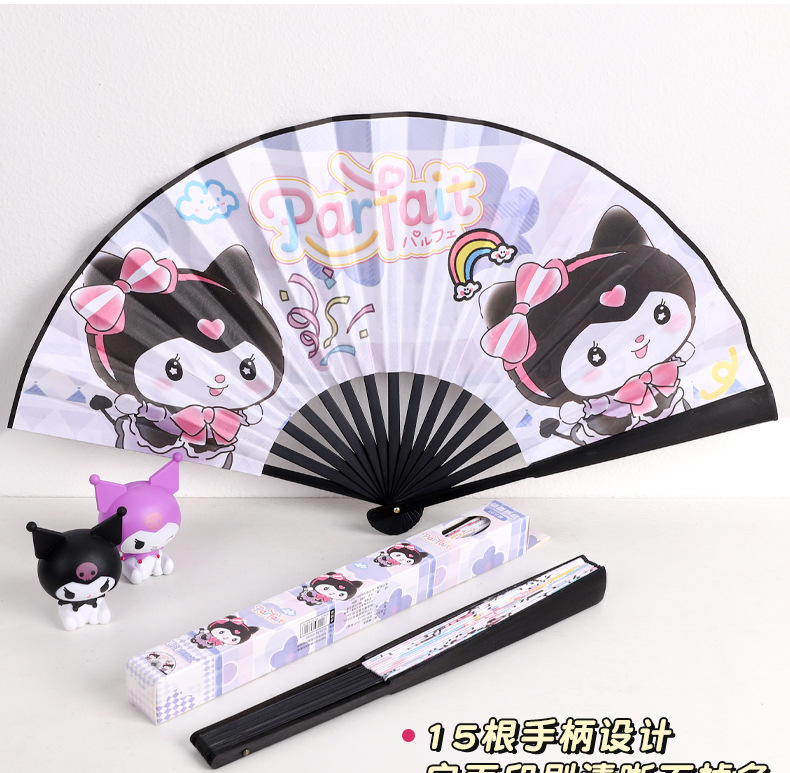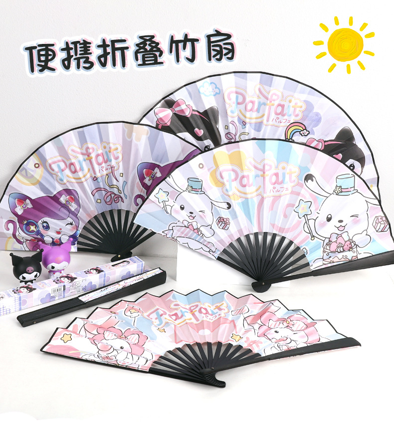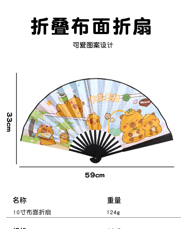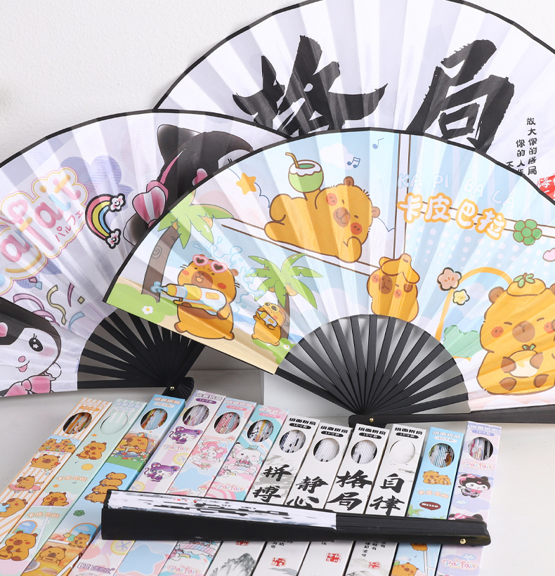 Guofeng 10 인치 패브릭 접이식 팬 대형 만화 여름 시원한 손 팬 여행 휴대용 접이식 팬 도매