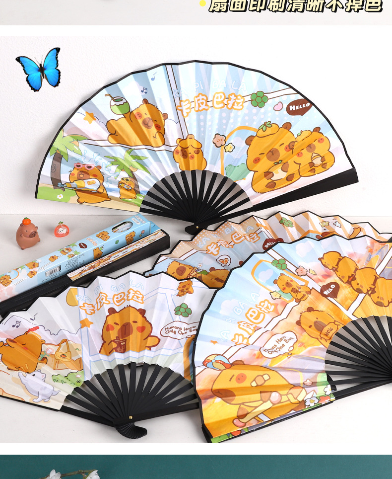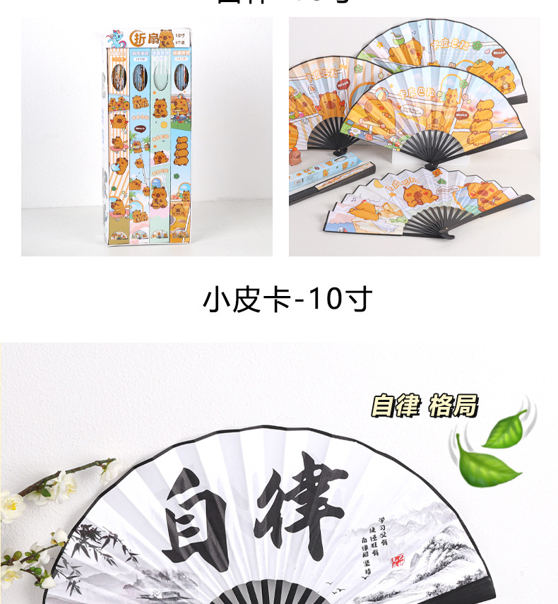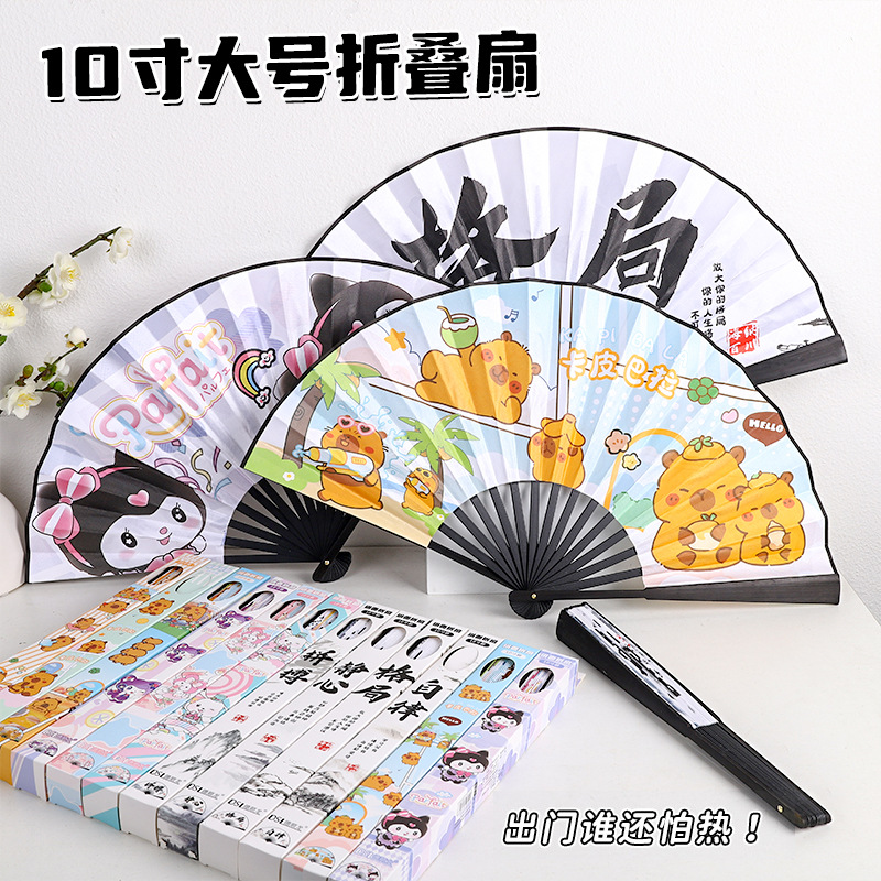 Guofeng 10 인치 패브릭 접이식 팬 대형 만화 여름 시원한 손 팬 여행 휴대용 접이식 팬 도매스토어 가기