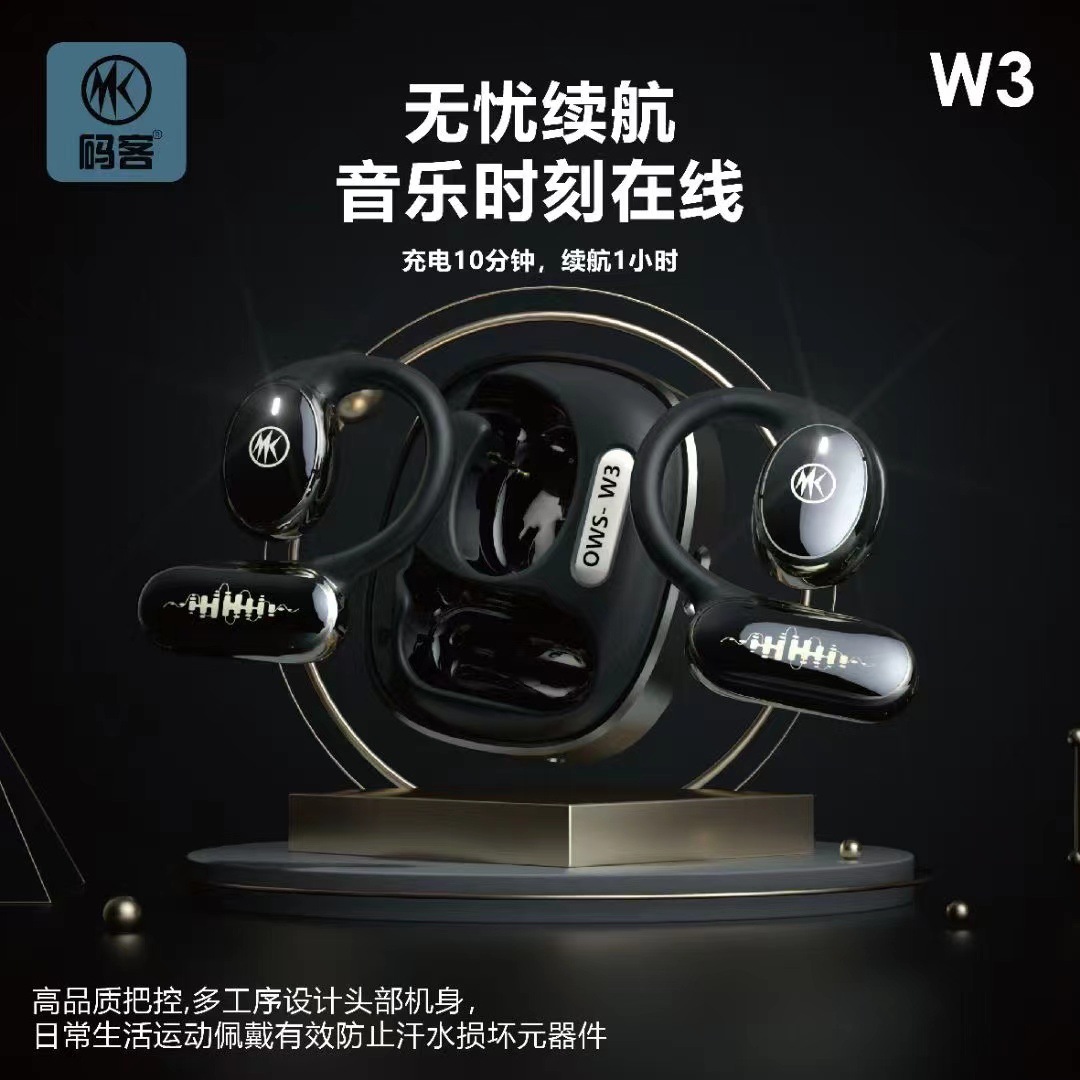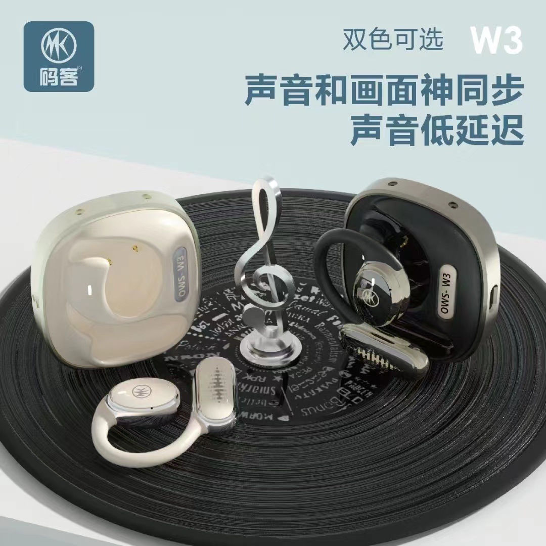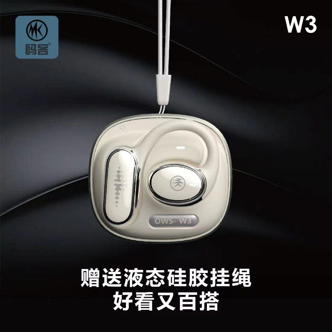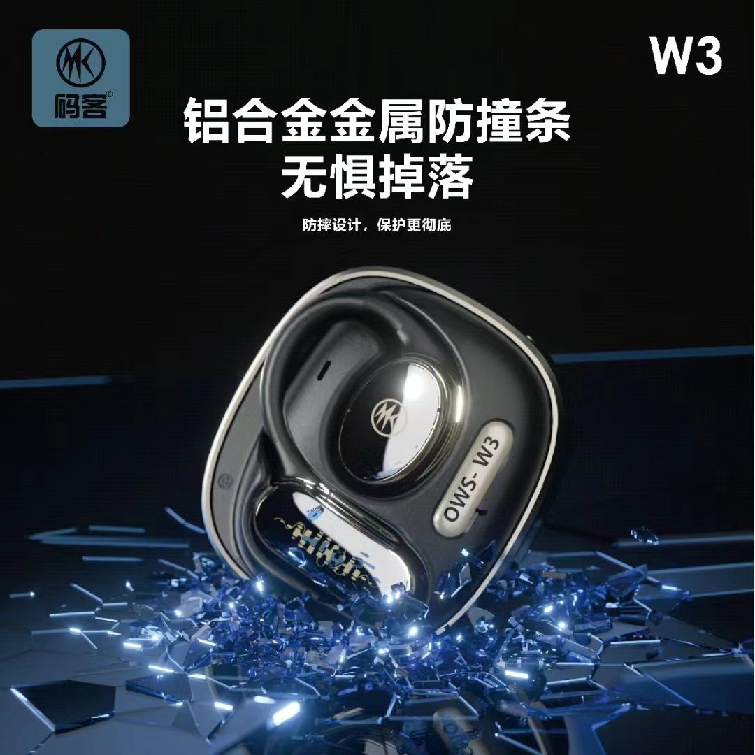 MK码客W3开放式耳挂运动蓝牙耳机,金属边框尽显质感!蓝牙5.4版本,连接更稳定。赠送液态硅胶挂绳,携带更方便。