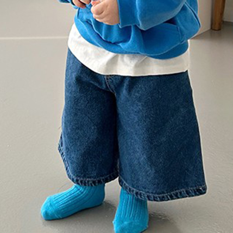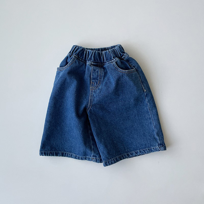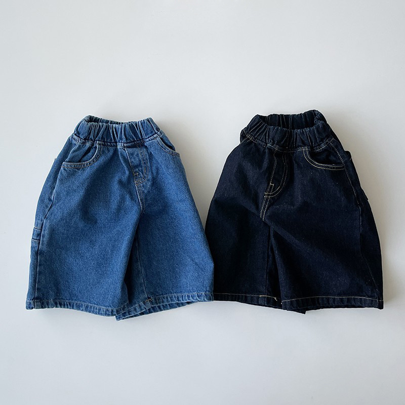 소년과 소녀 ins 데님 반바지 여름 새로운 한국 스타일 한국 스타일 패션 어린이 와이드 레그 팬츠 신축성있는 허리 크롭 팬츠