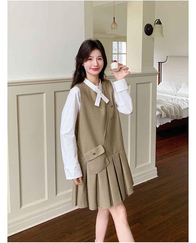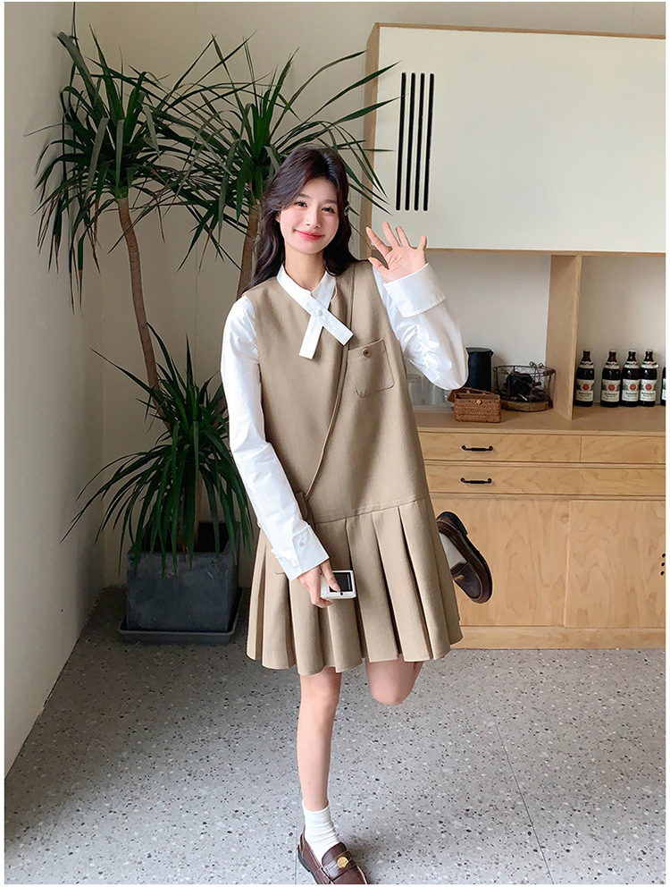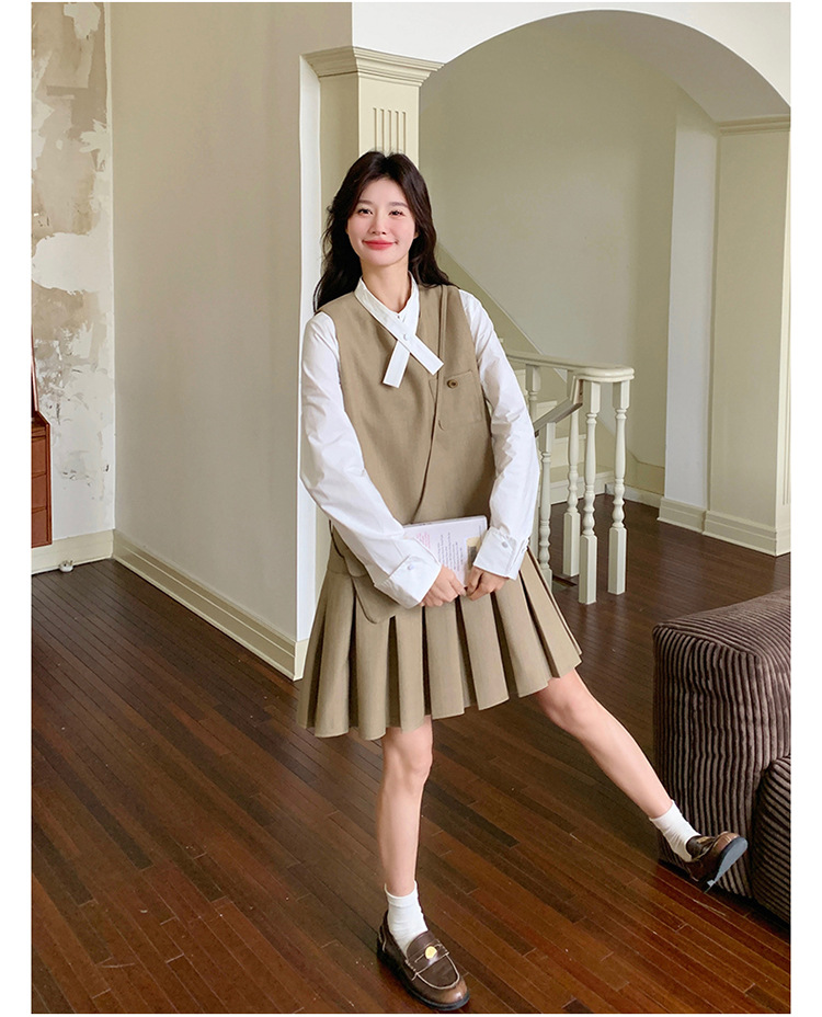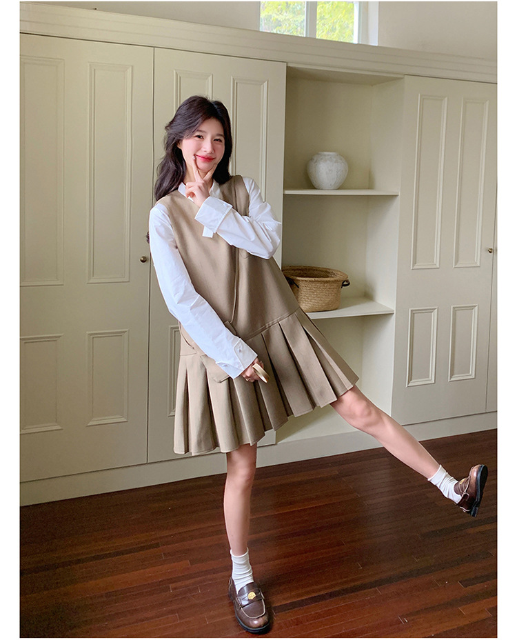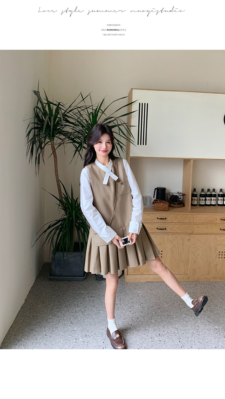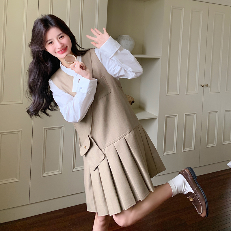 프랑스 스타일 기질 대학 스타일 꽃병 치마 세트 여성의 봄과 가을 기질 복고풍 시대 감소 가리 스타일 주름 치마스토어 가기
