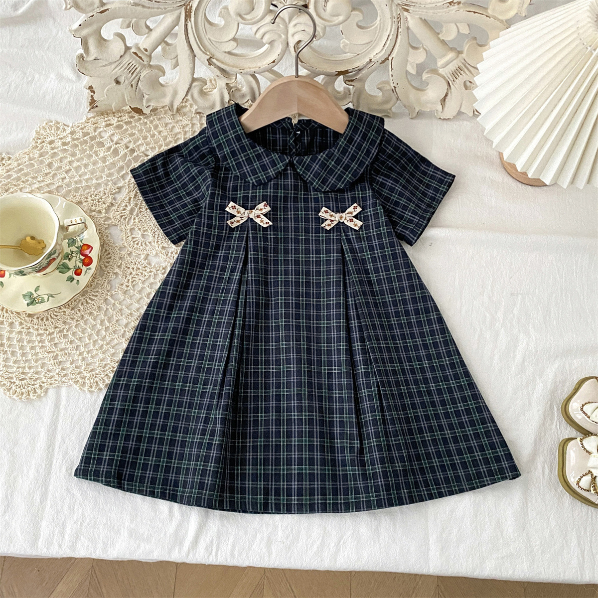 2025 년 여름 소녀 격자 무늬 한국 인형 칼라 원피스 아기 서양식 공주 격자 무늬 스커트 77382