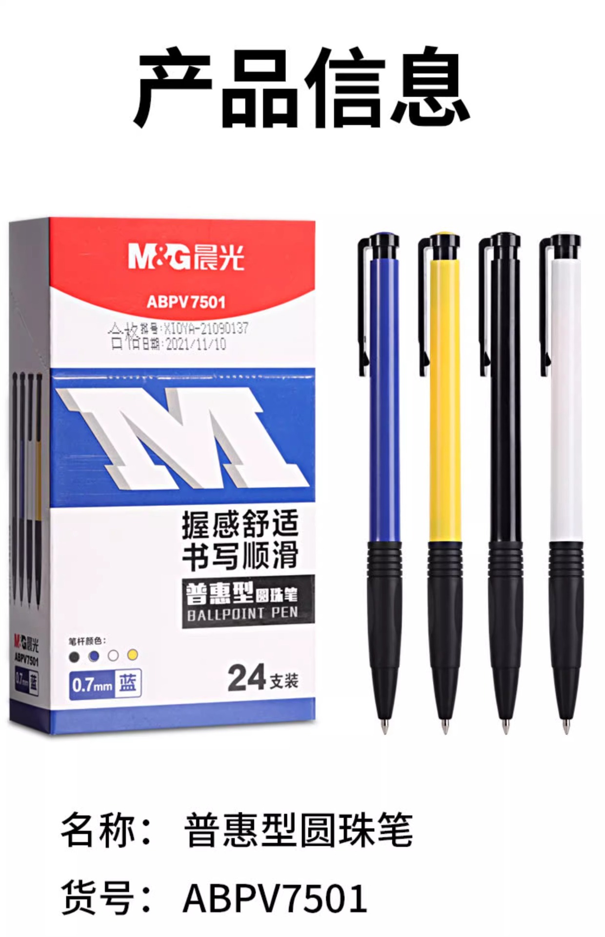 Chenguang ABPV7501 Pratt & Whitney 볼펜 오일 펜 0.7 총알 소프트 그립 펜 사무실 사용스토어 가기