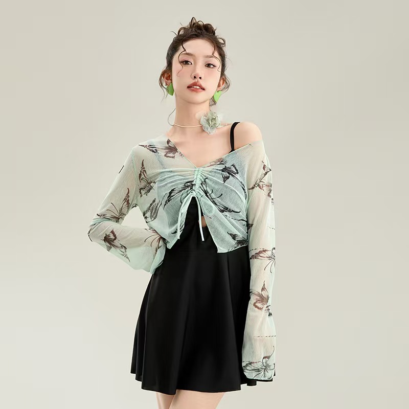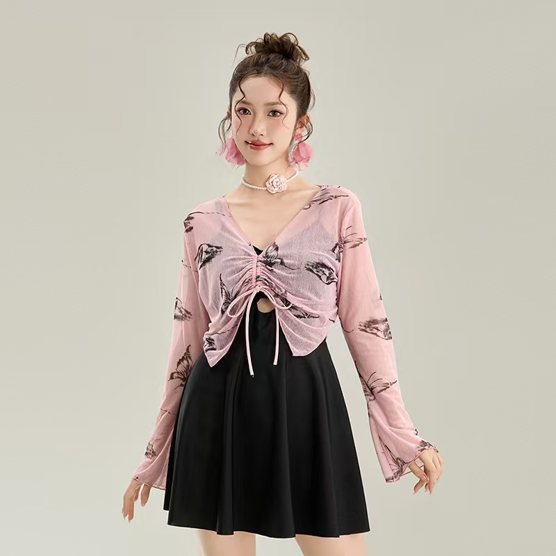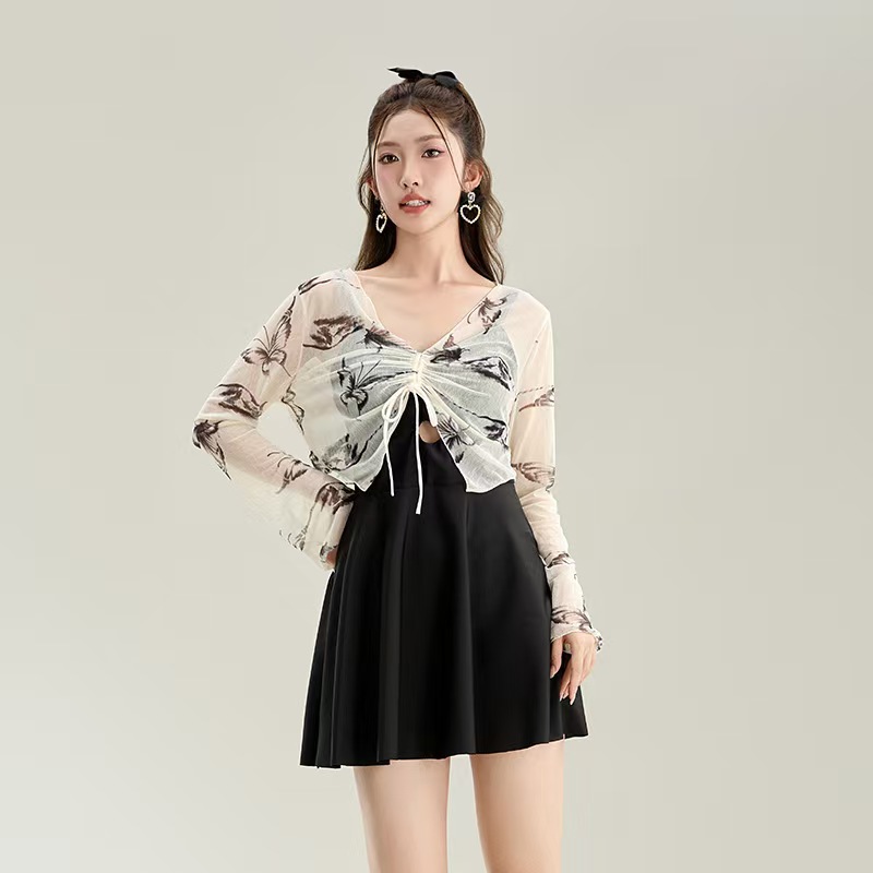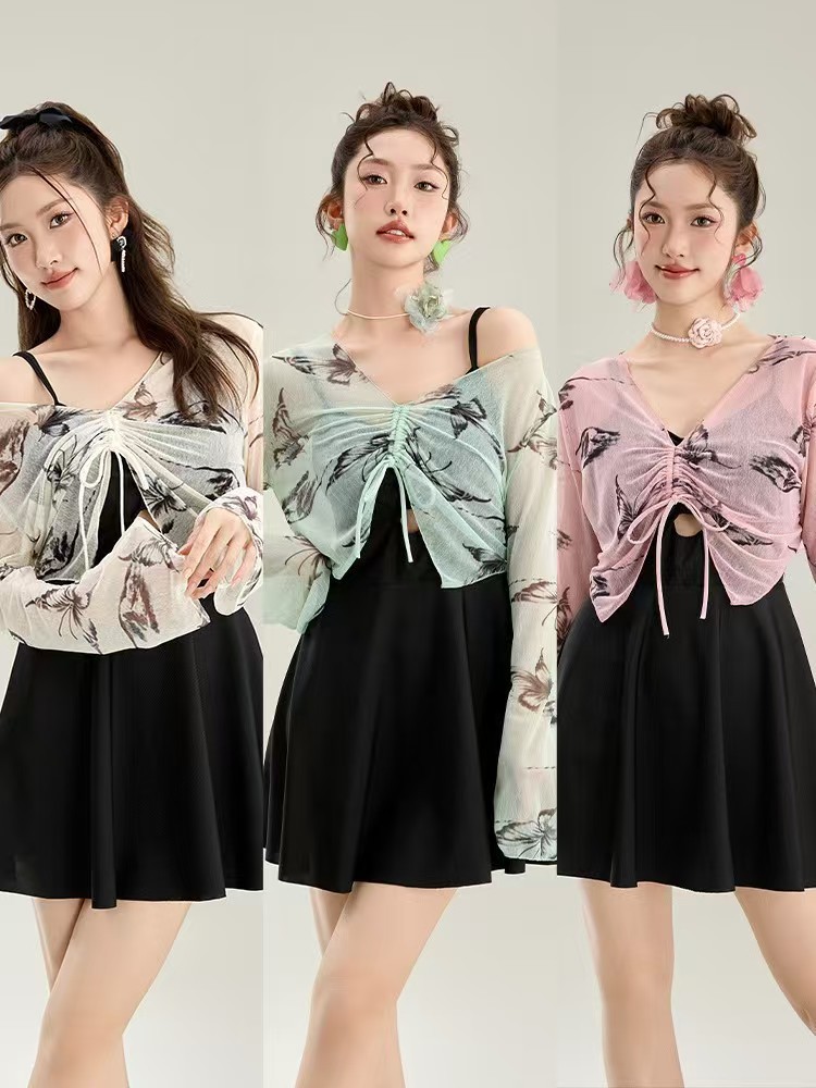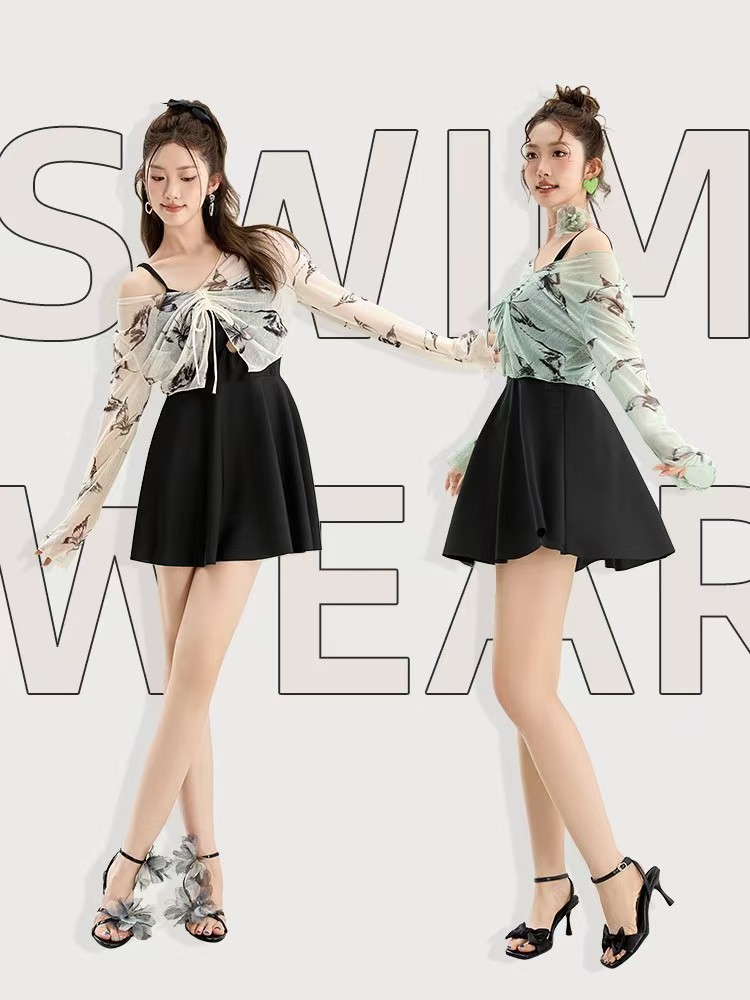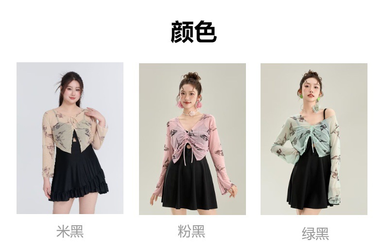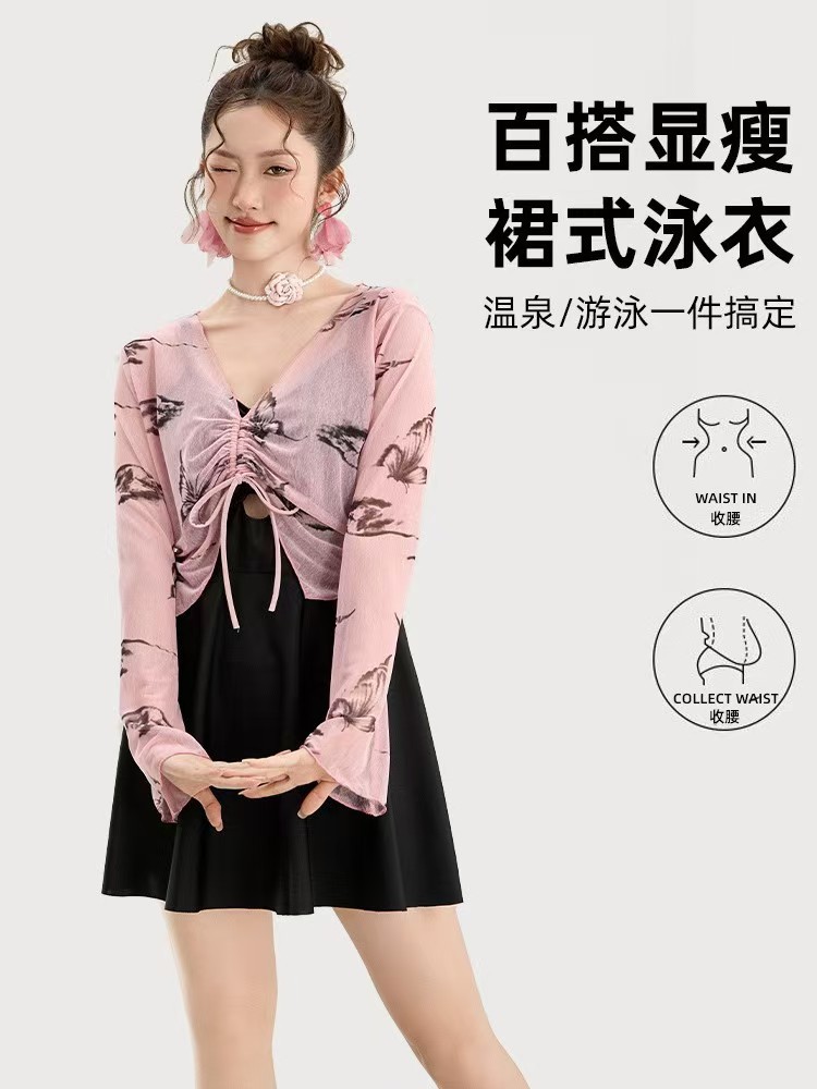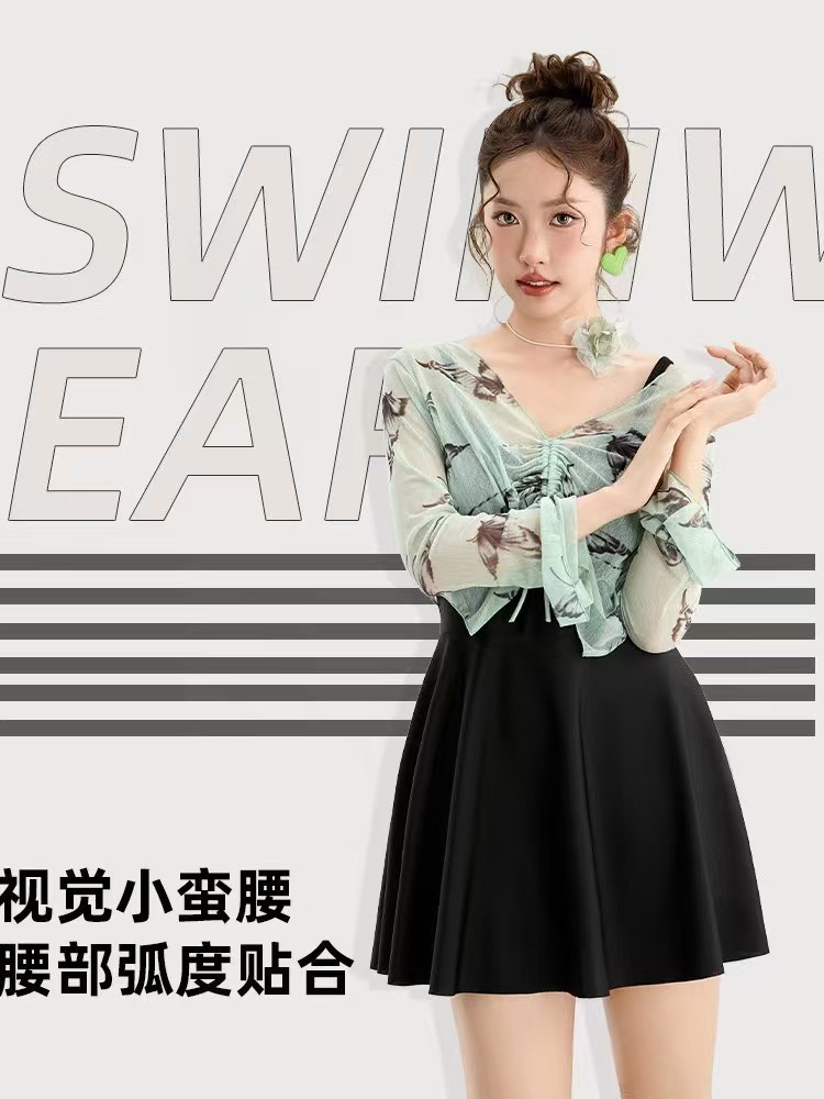 2025년 대형 사이즈 여성용 온천 수영복, 스커트형 분리형, 살을 가려주는, 단정하고 슬리밍 효과 있는 100kg 수영복, 해외배송스토어 가기
