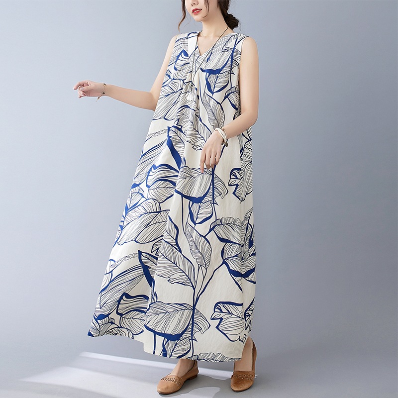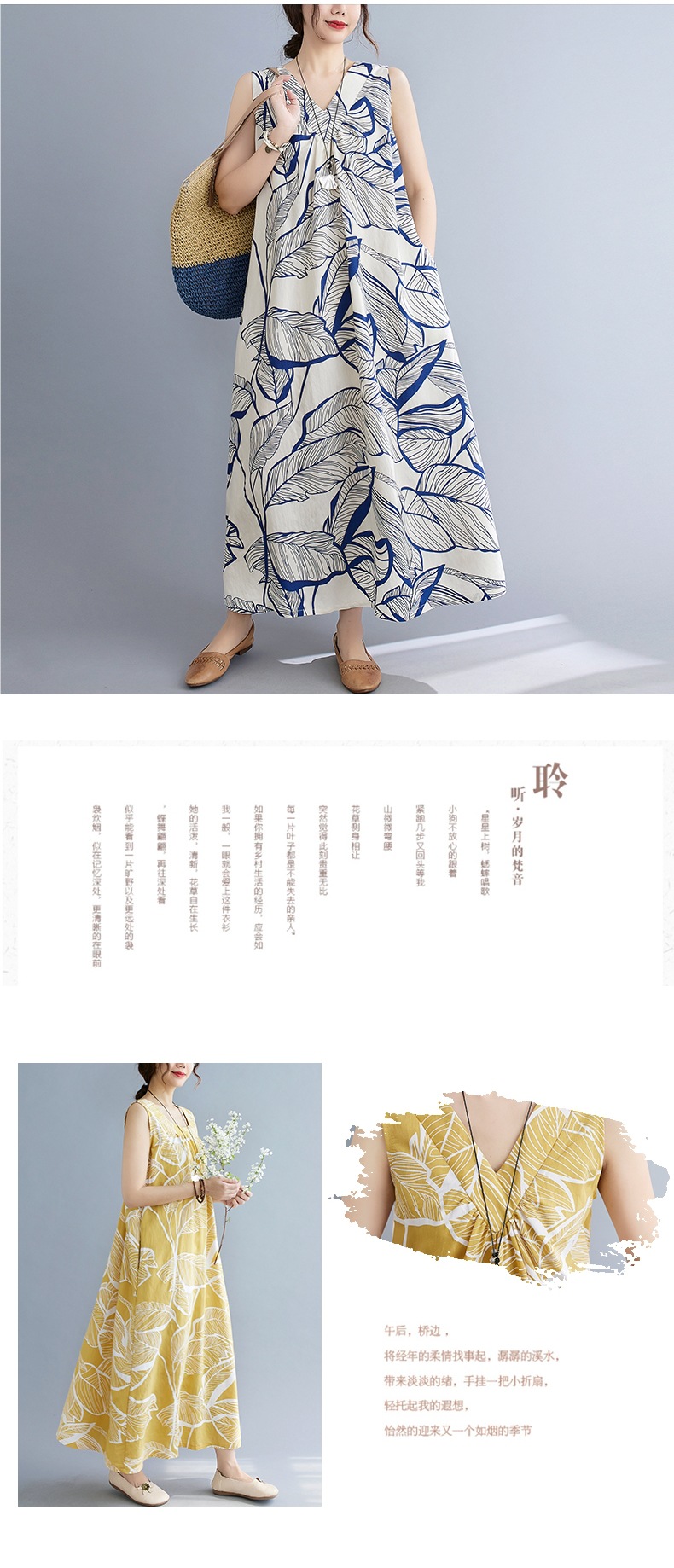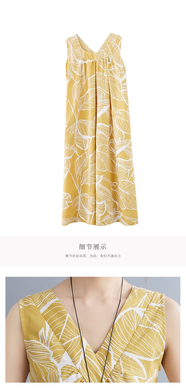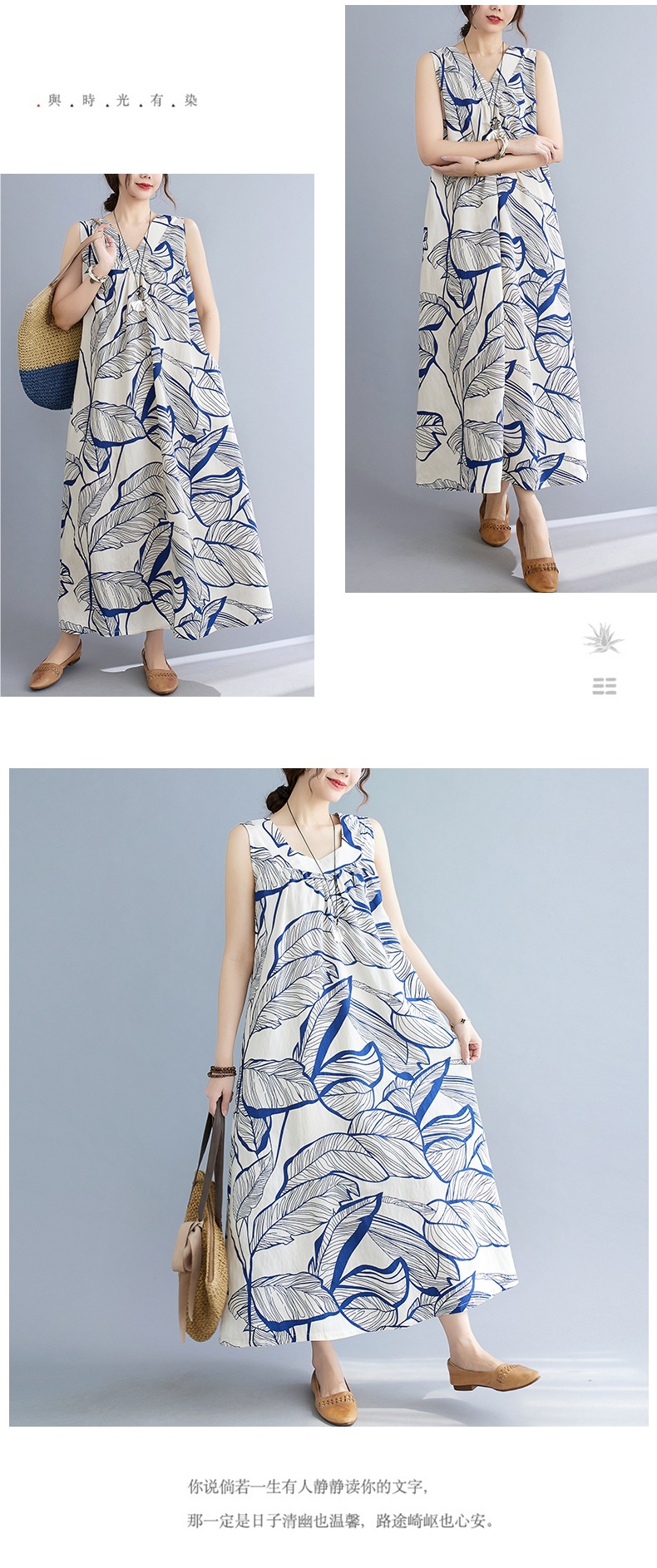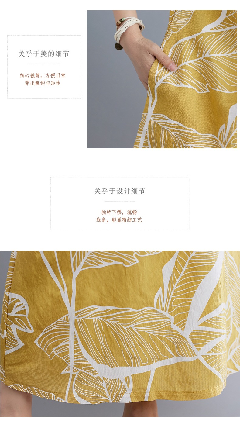 느슨한 플러스 사이즈 외국식 나이를 줄이는 잎 인쇄의 실제 샷 한국어 버전 긴 무릎 앞뒤 원피스스토어 가기