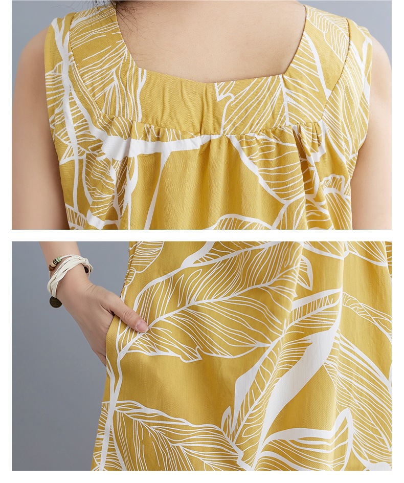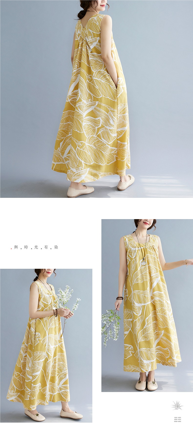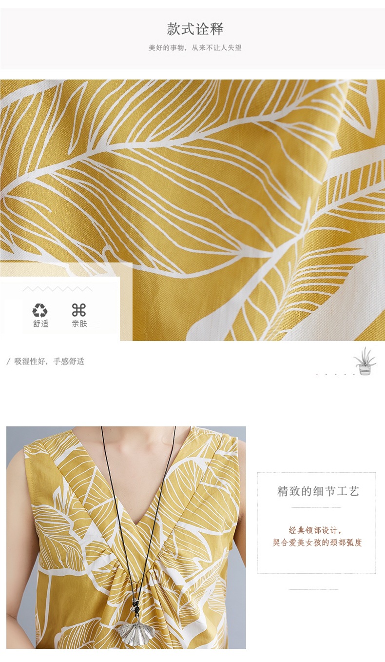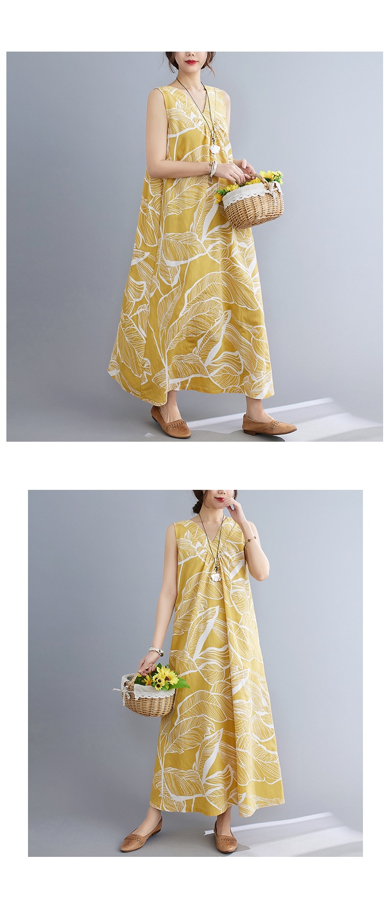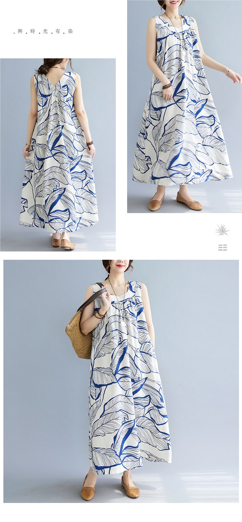 느슨한 플러스 사이즈 외국식 나이를 줄이는 잎 인쇄의 실제 샷 한국어 버전 긴 무릎 앞뒤 원피스스토어 가기