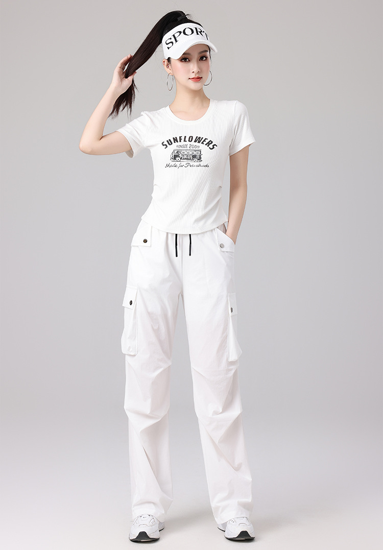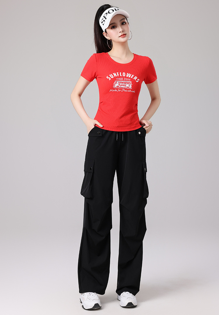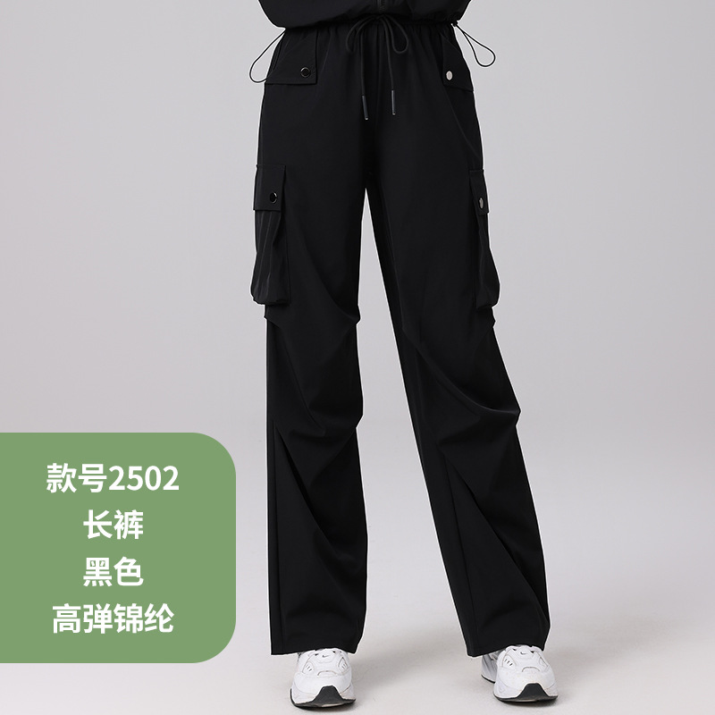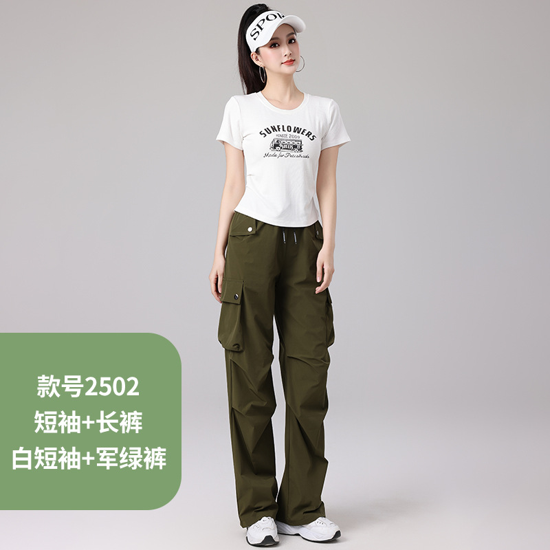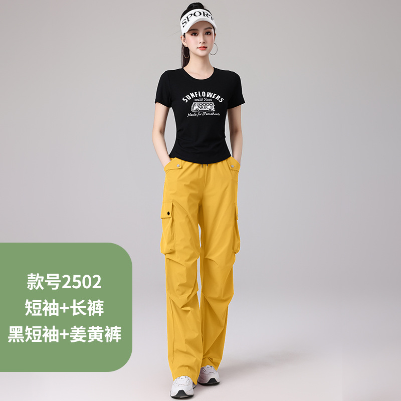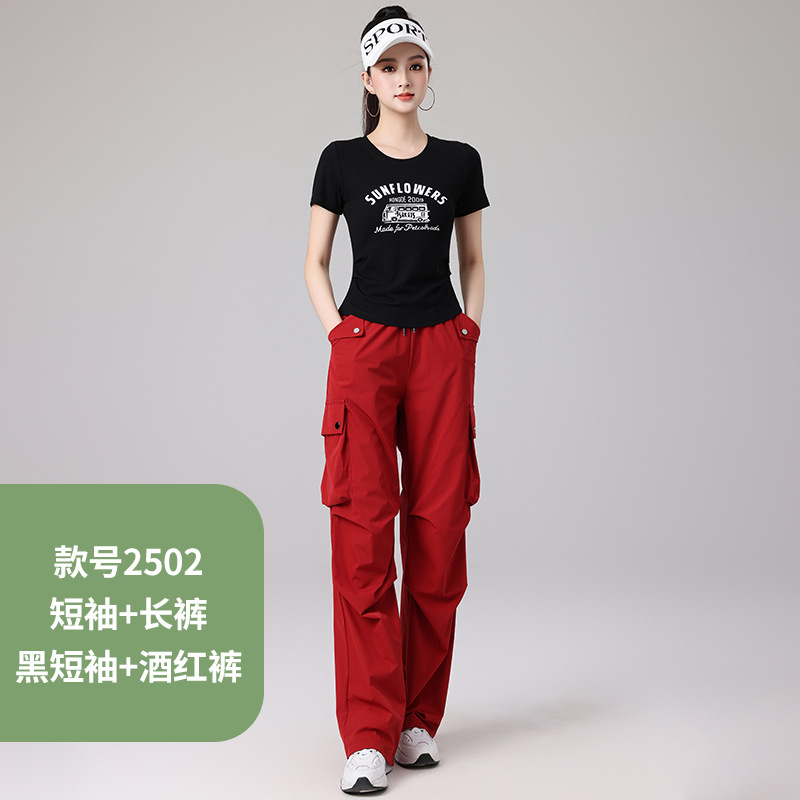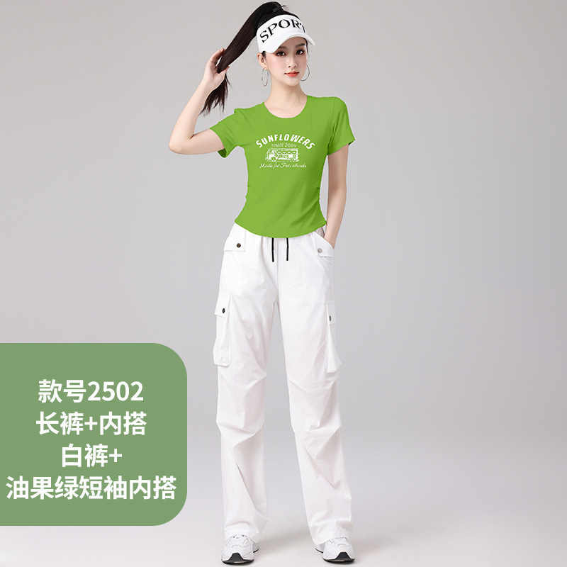2025 봄과 여름 광장 댄스 의류 스포츠 레저 피트니스 점프 러닝 의류 슬림 긴 소매 크레인 바지 세트