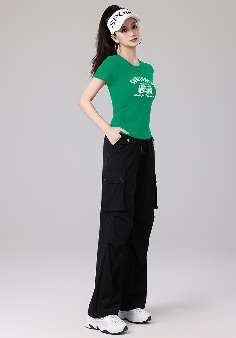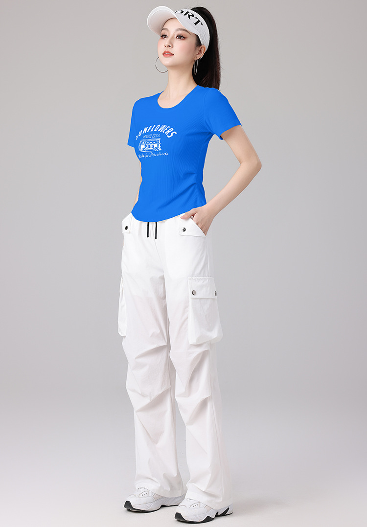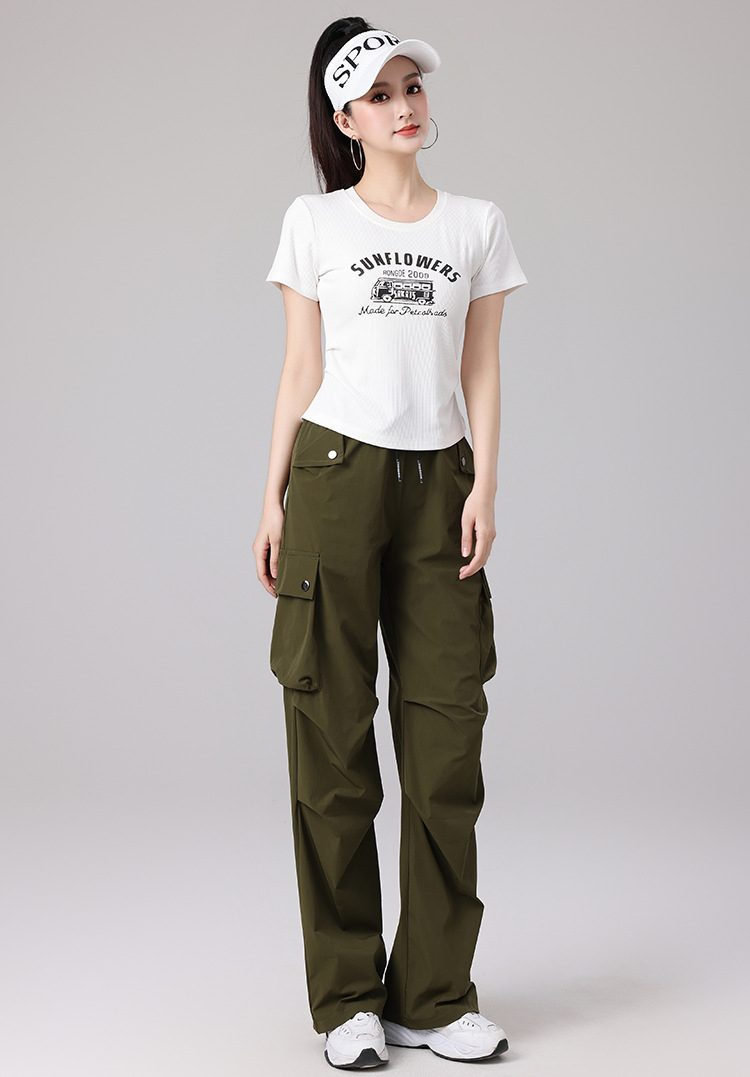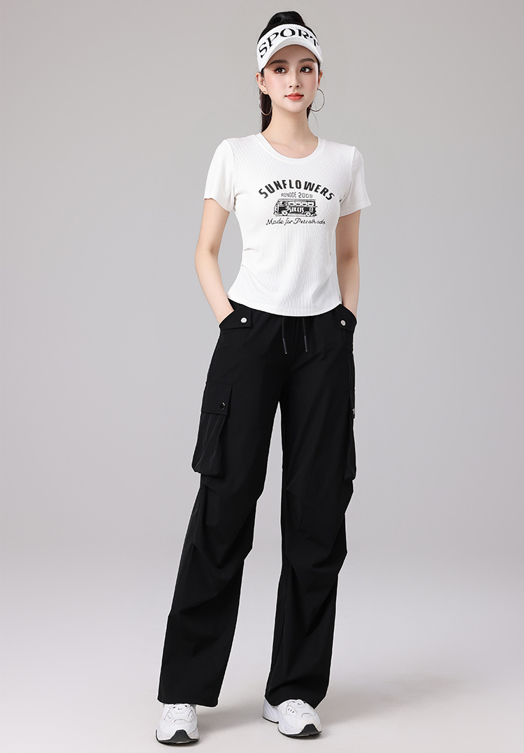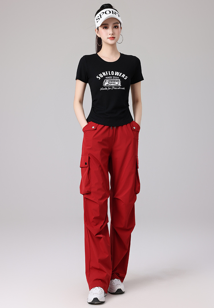 2025 봄과 여름 광장 댄스 의류 스포츠 레저 피트니스 점프 러닝 의류 슬림 긴 소매 크레인 바지 세트