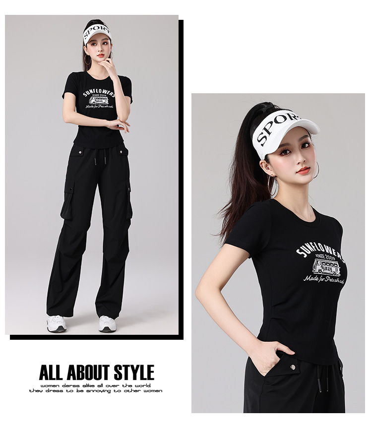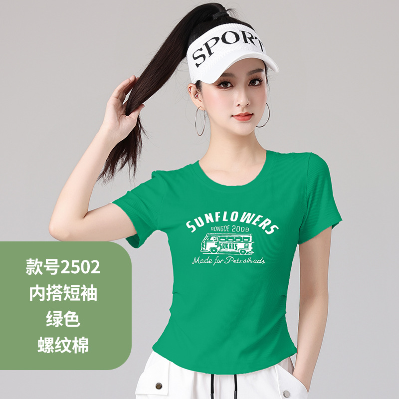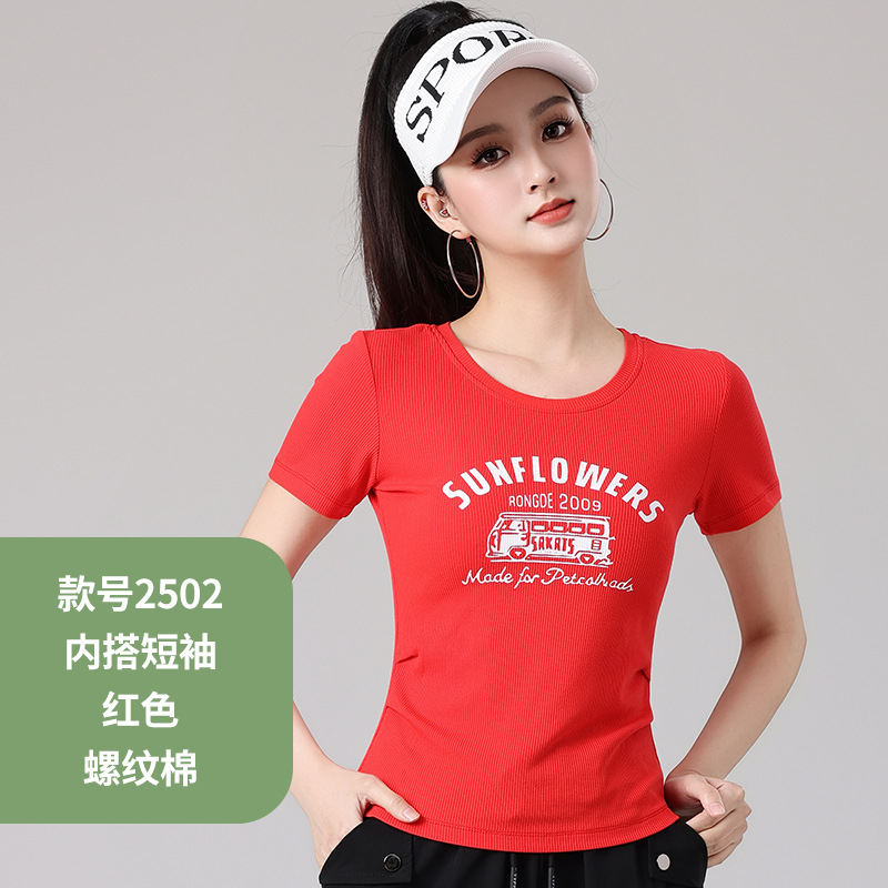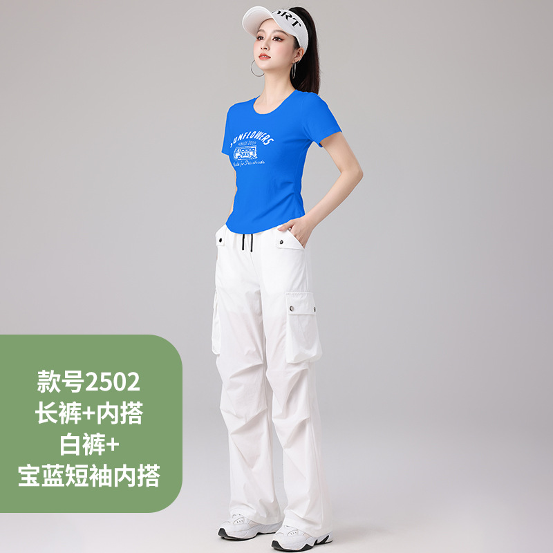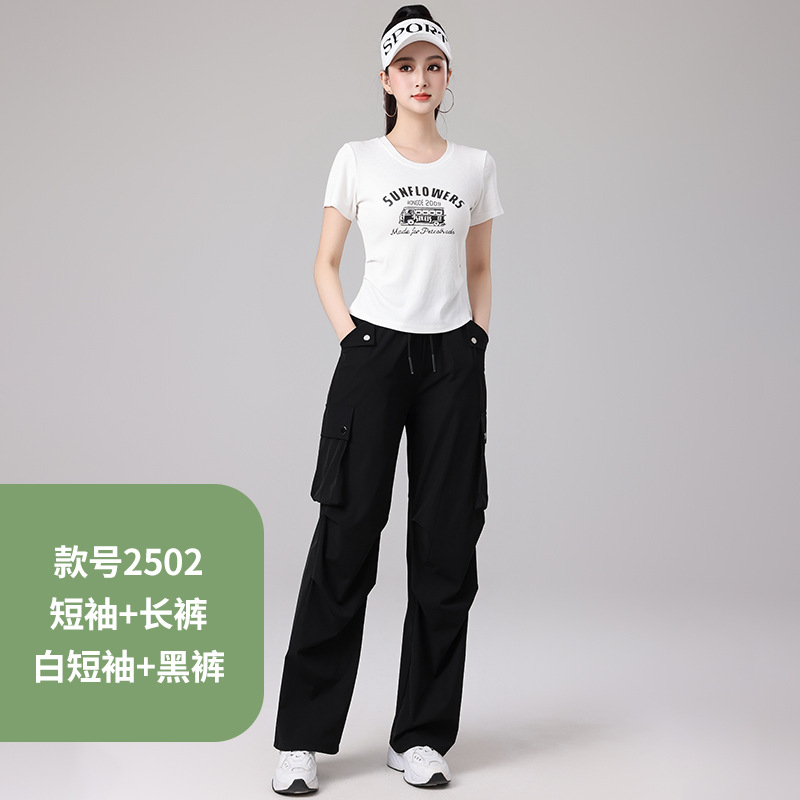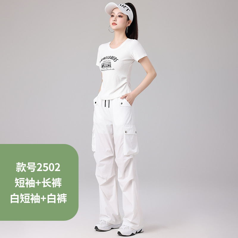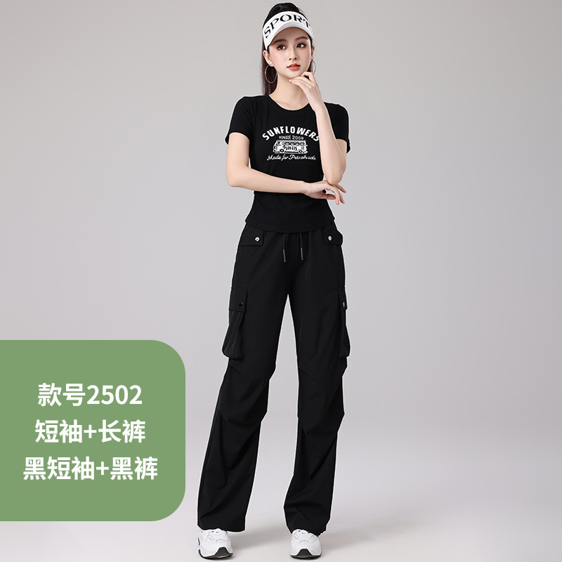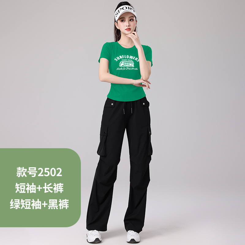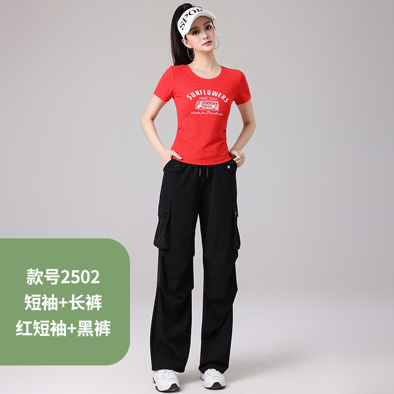 2025 봄과 여름 광장 댄스 의류 스포츠 레저 피트니스 점프 러닝 의류 슬림 긴 소매 크레인 바지 세트스토어 가기