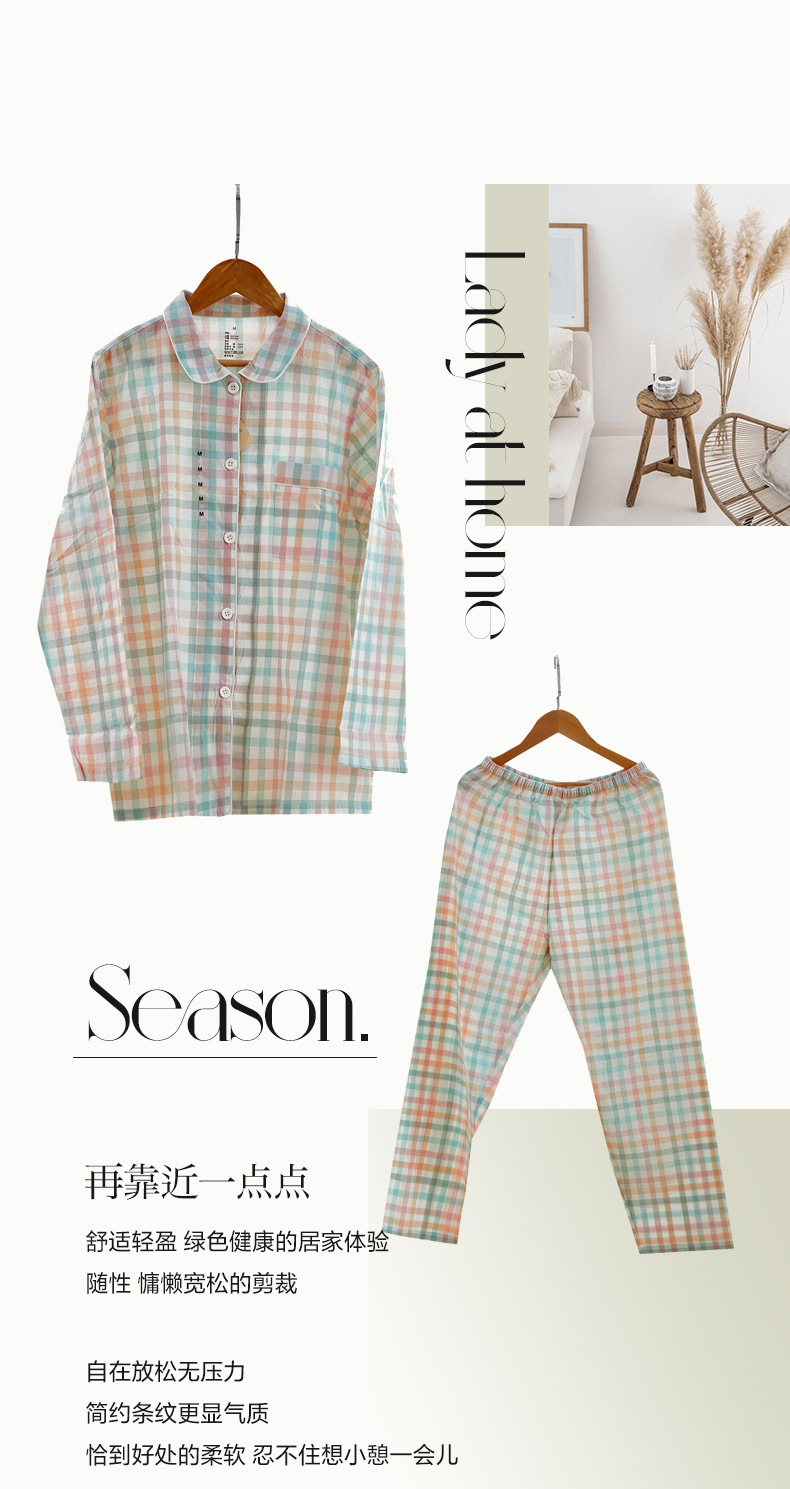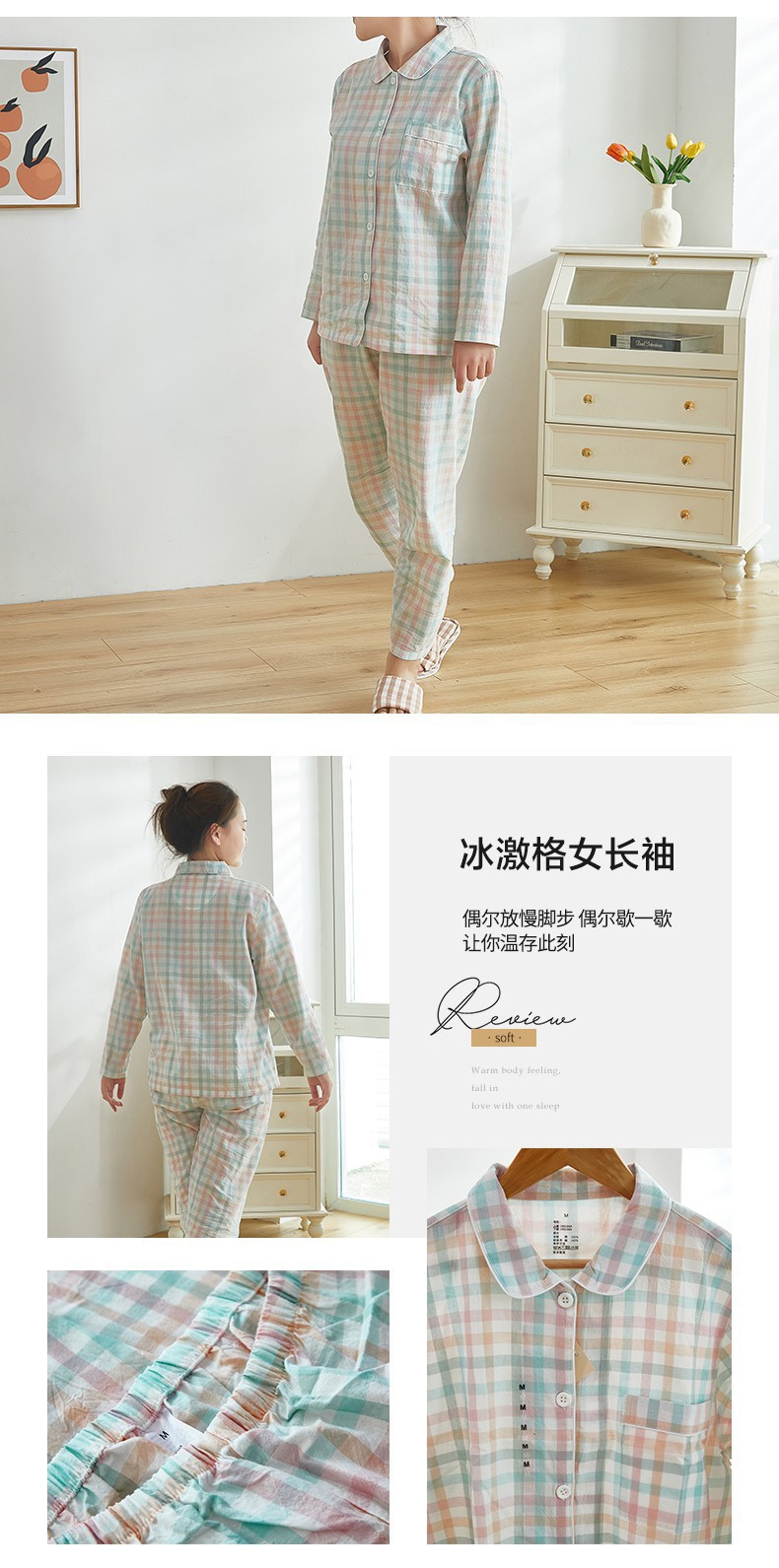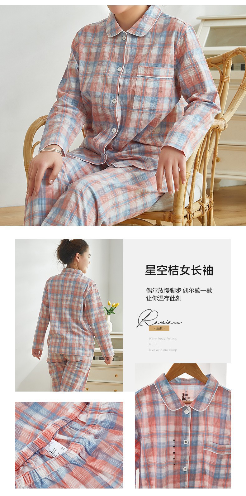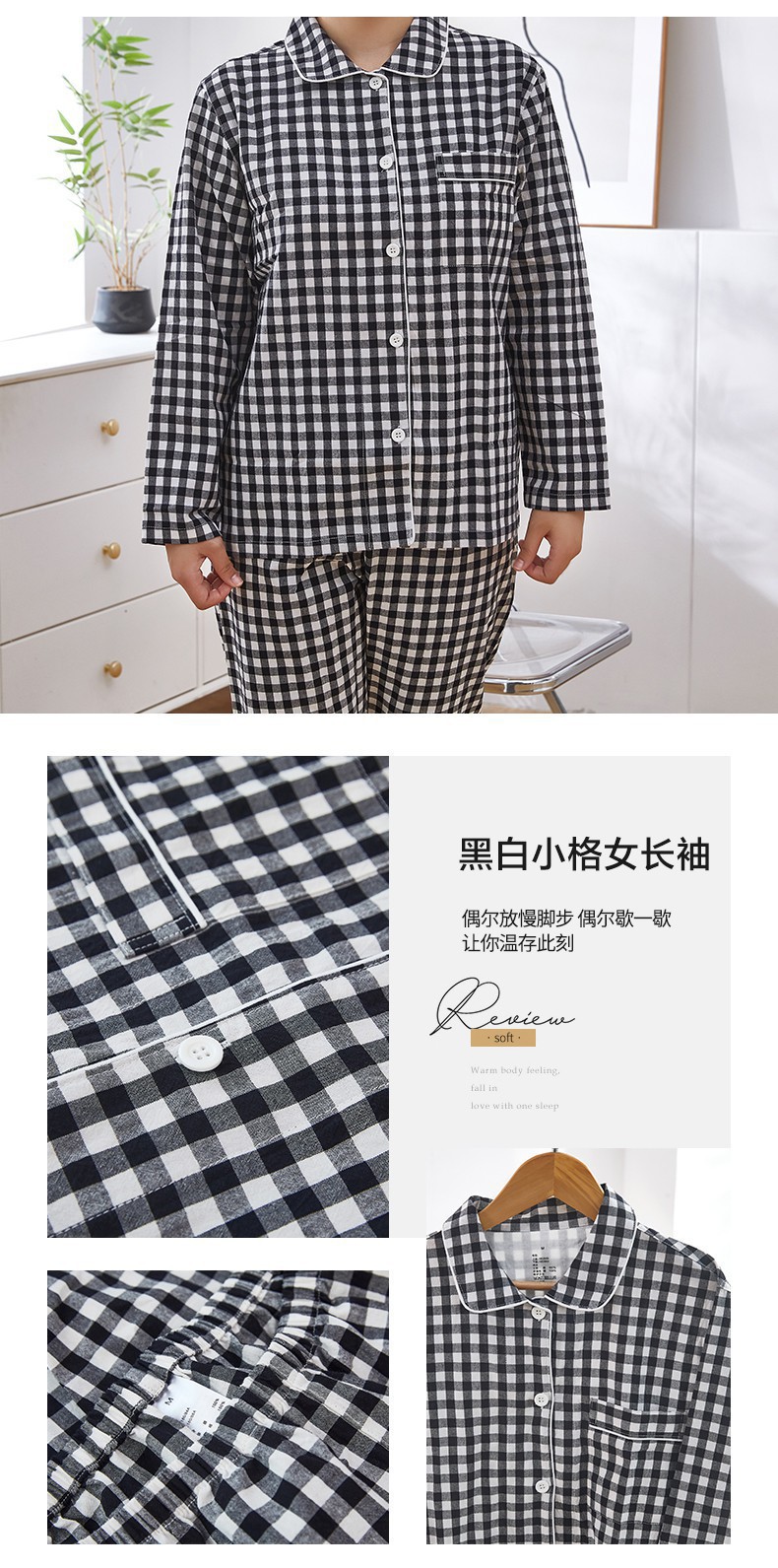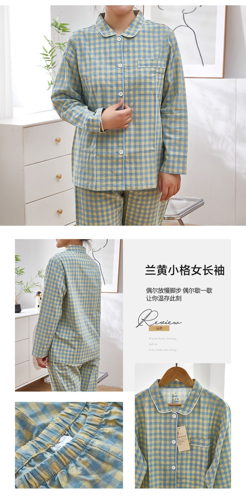 모든 면 잠옷 홈 옷 무지 긴 소매 여성 잠옷 일본 스타일 좋은 격자 무늬 커플 바지 홈 의류 세트스토어 가기