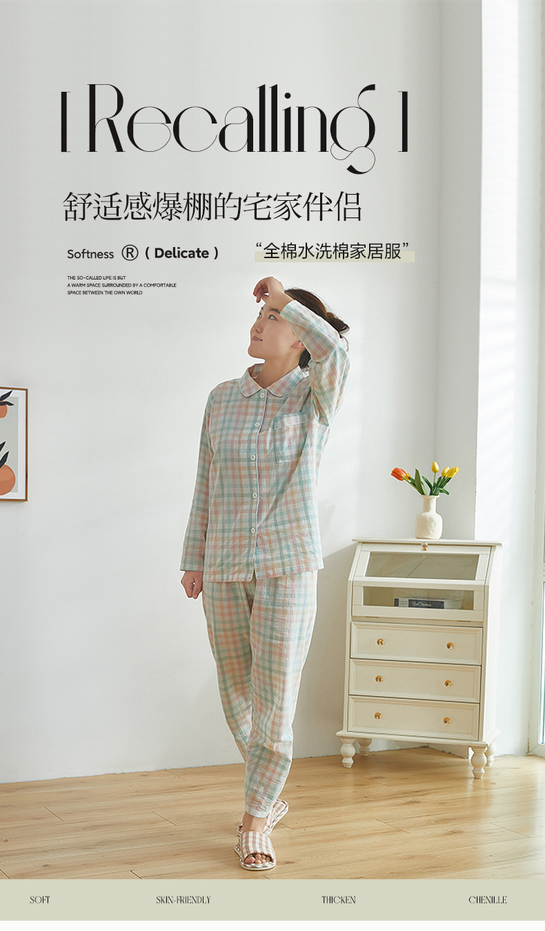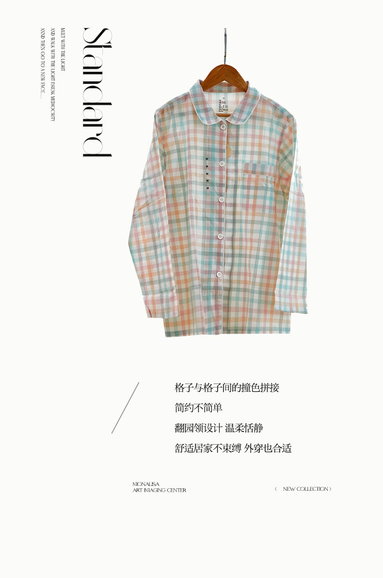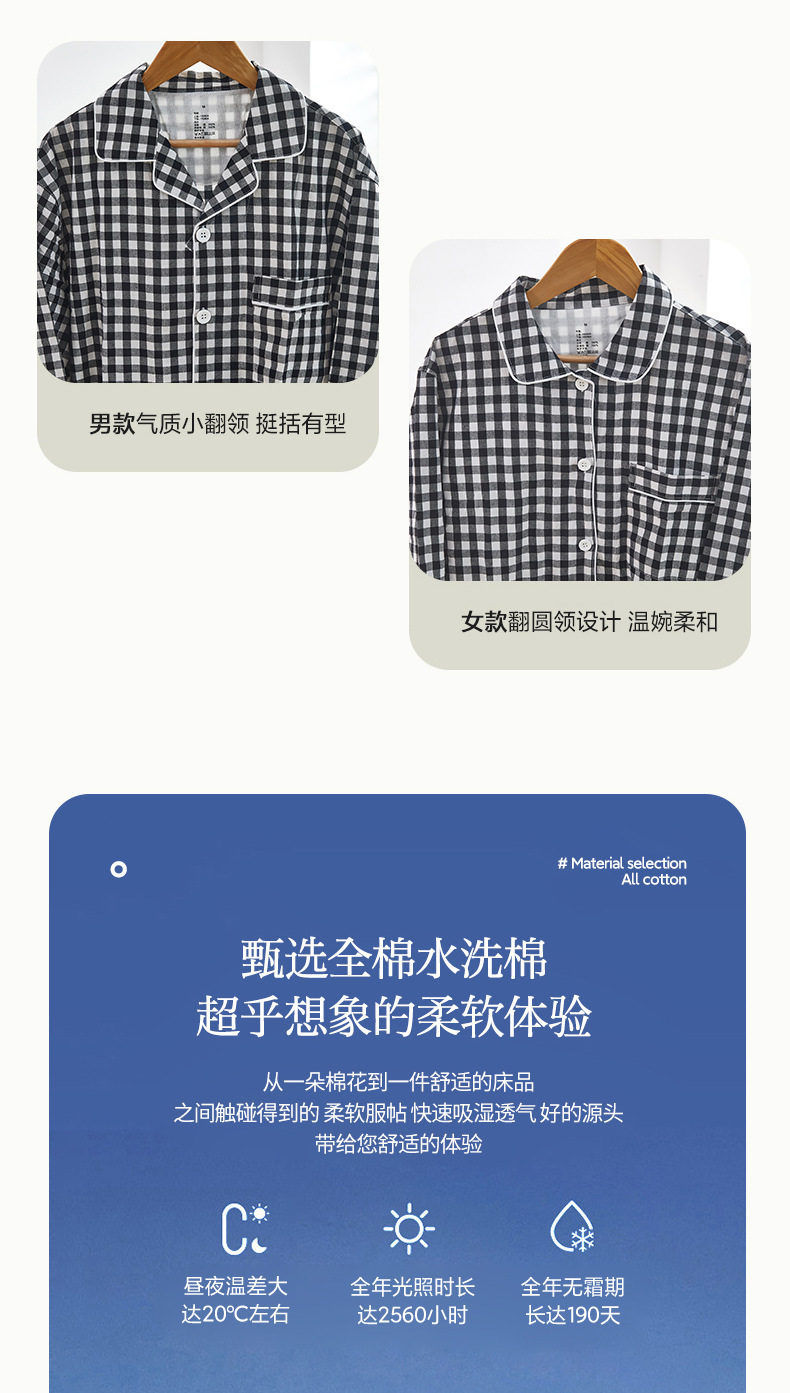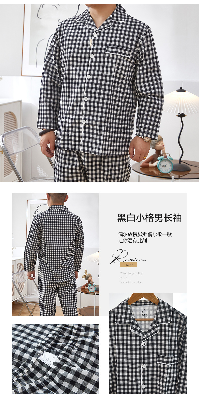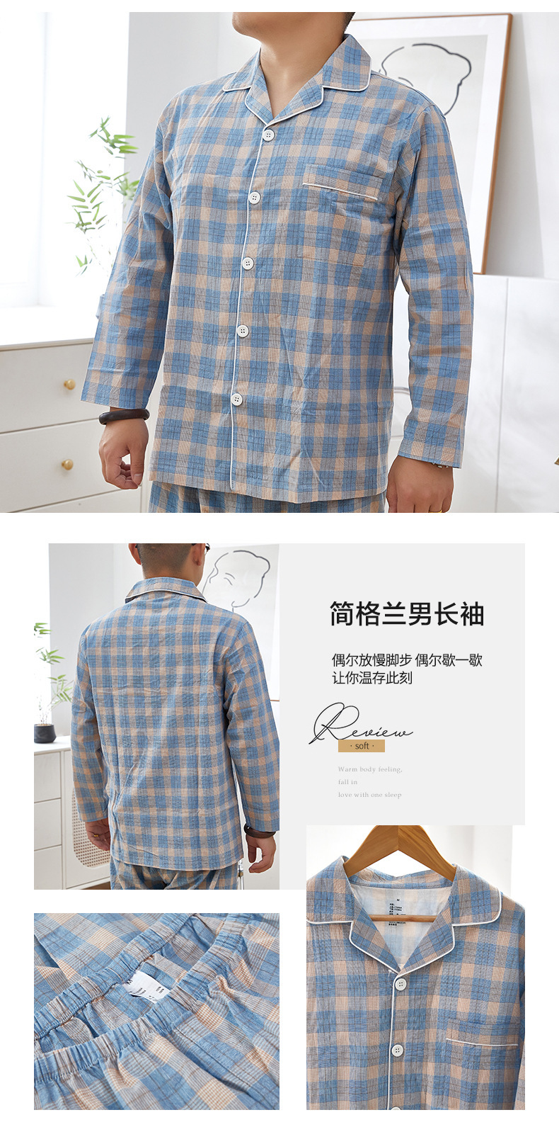 모든 면 잠옷 홈 옷 무지 긴 소매 여성 잠옷 일본 스타일 좋은 격자 무늬 커플 바지 홈 의류 세트스토어 가기