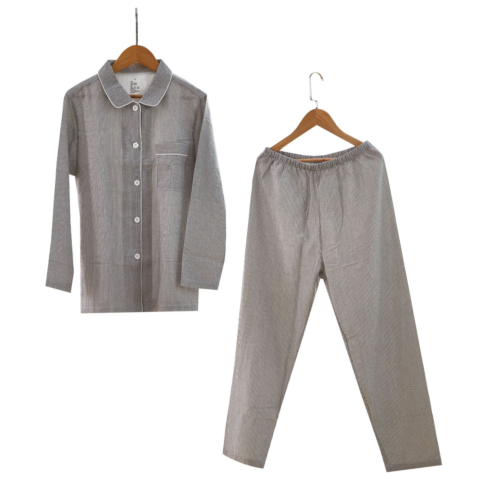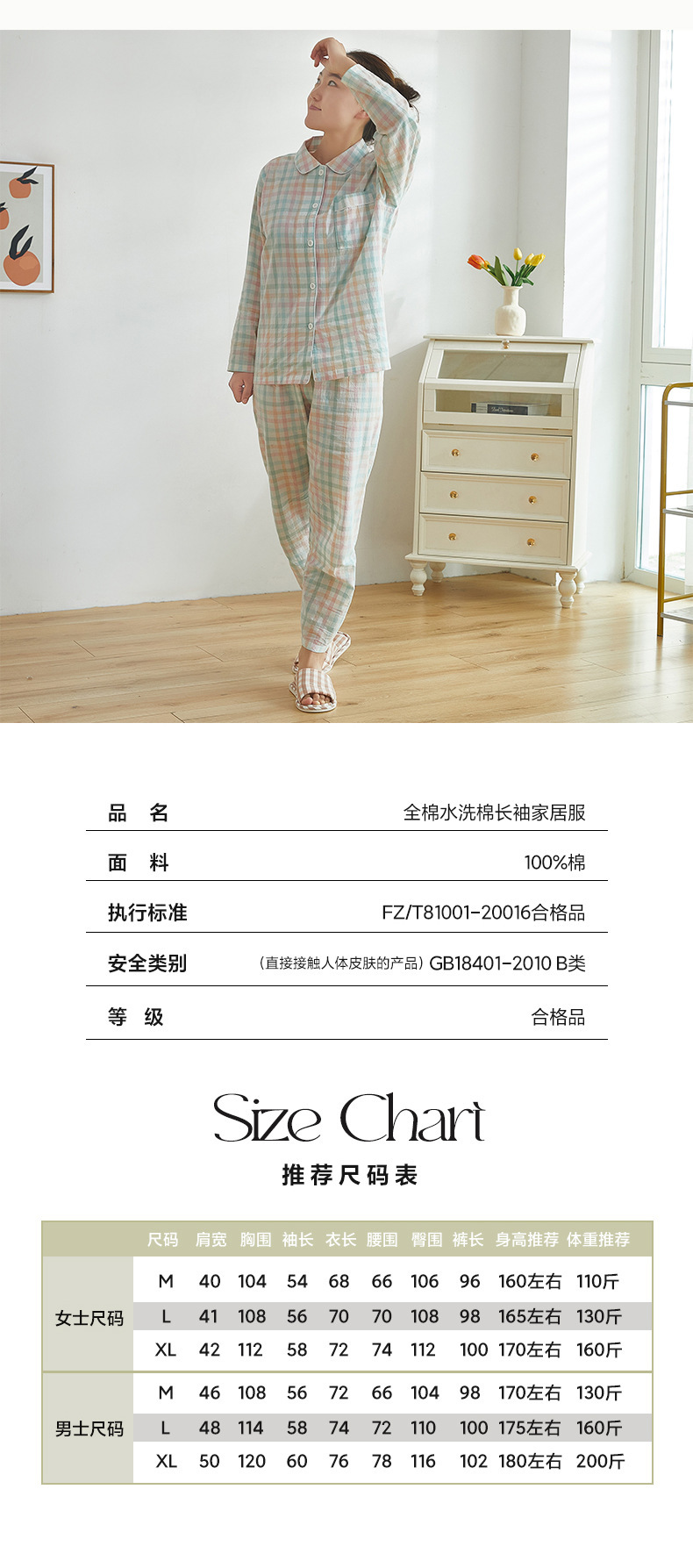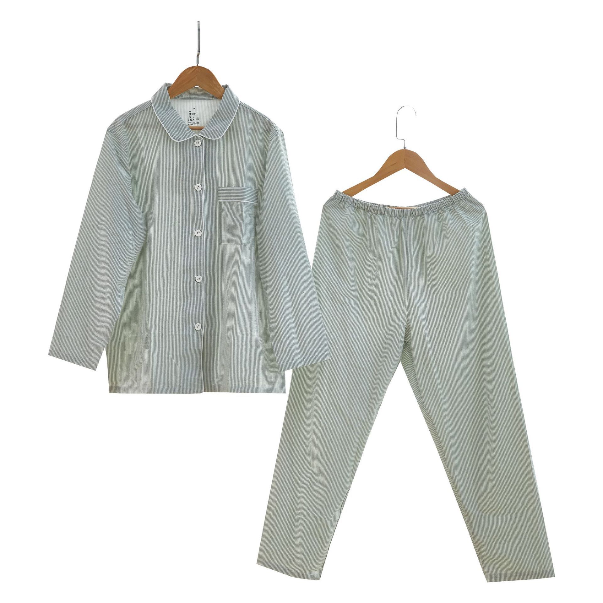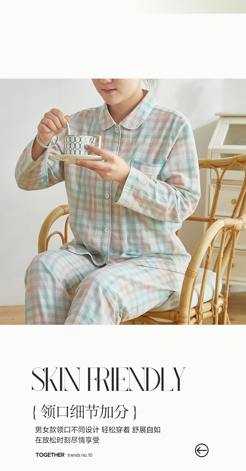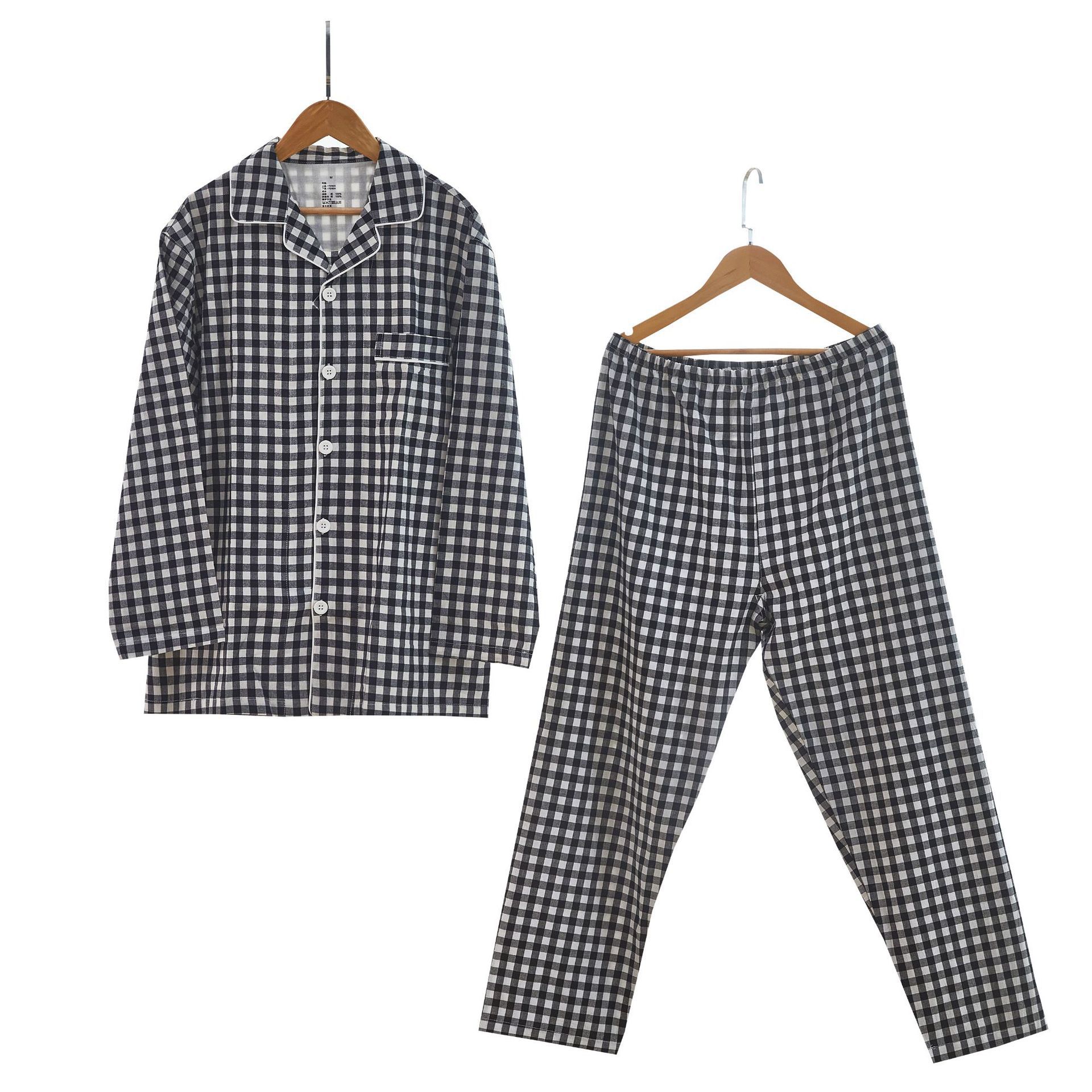 모든 면 잠옷 홈 옷 무지 긴 소매 여성 잠옷 일본 스타일 좋은 격자 무늬 커플 바지 홈 의류 세트